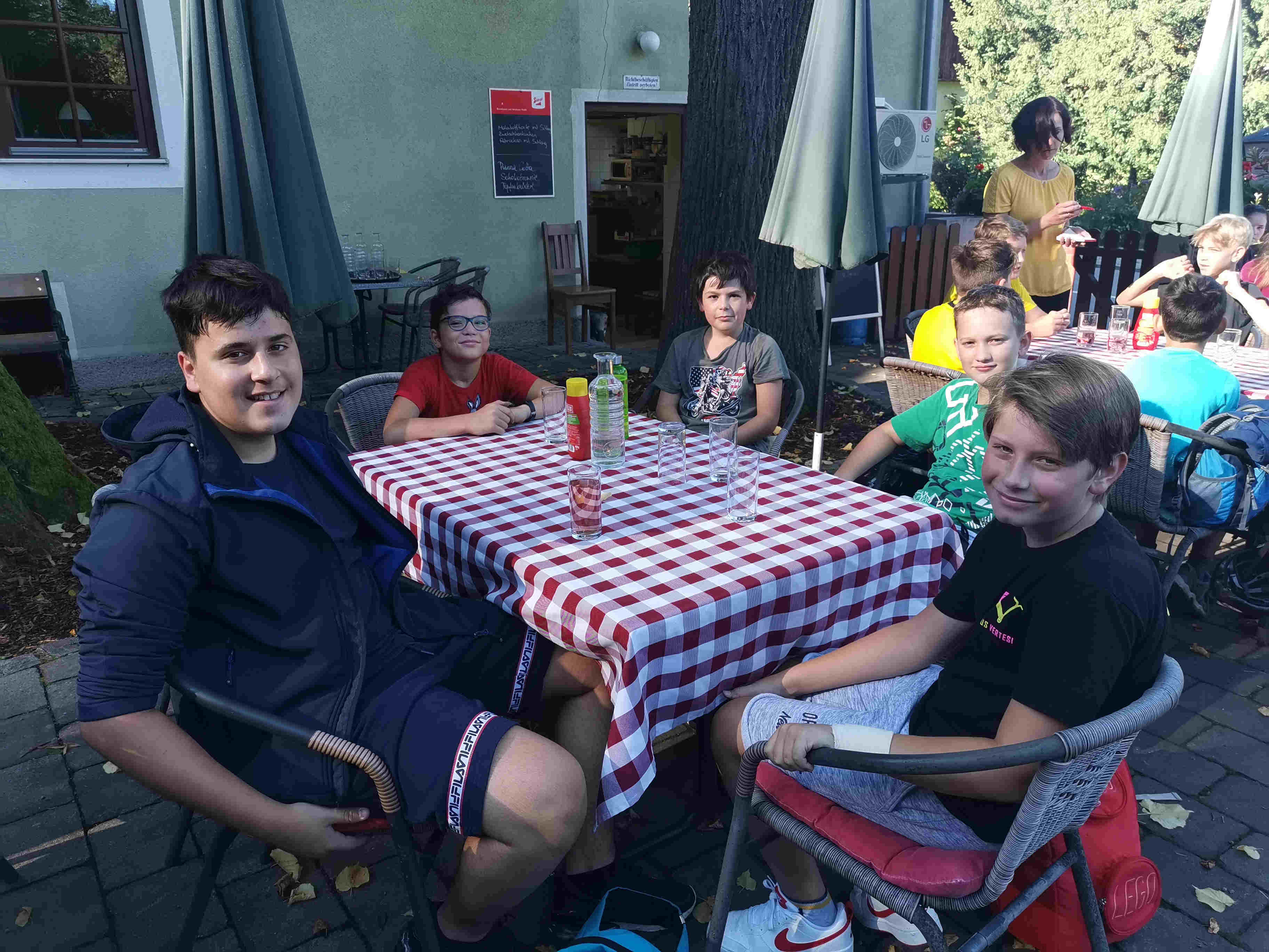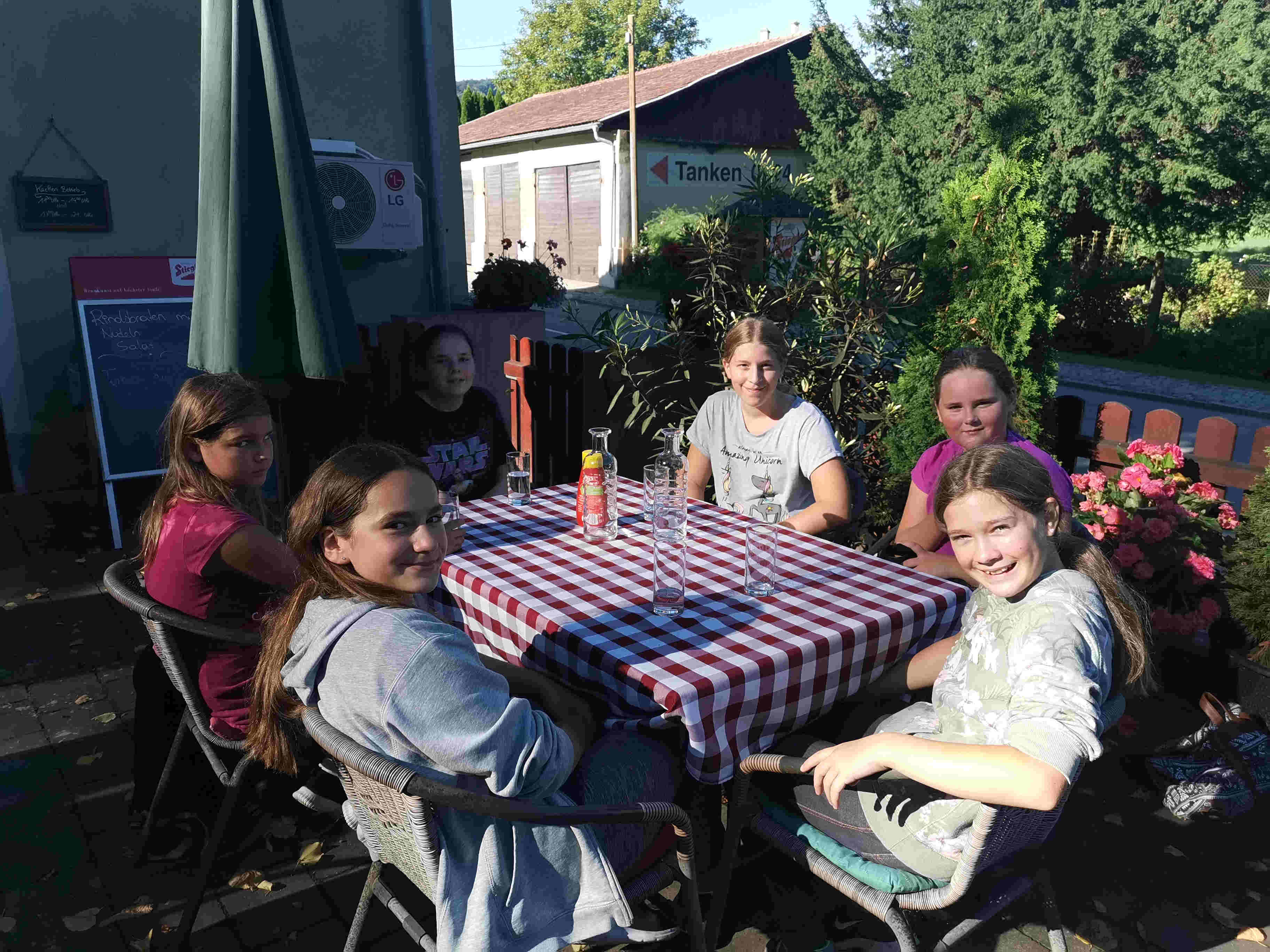 Von der Mittelschule ging es auf dem Radweg nach Laaben, dort stärkten sich die Kinder im Gasthaus Schilling mit einer Jause.