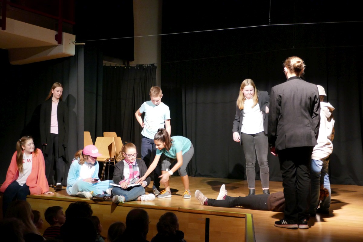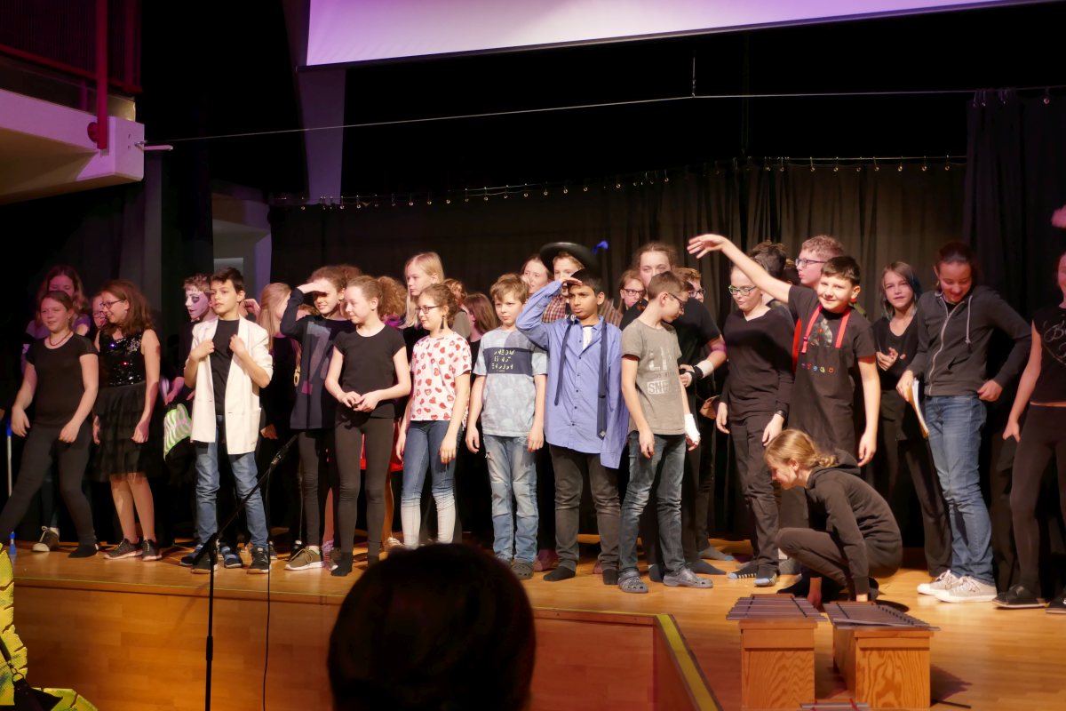 Das Darstellende Spiel der zweiten und dritten Klassen brachte den Krimi "Kommissarin X und der Rächer" zur Aufführung. Unterstützt wurden die Schauspieler dabei von unserer Schulband und unseren Ton- und Lichttechnikern und - natürlich - von Thomas Koller. Für das abschließende Buffet sorgten Eltern der 4b. Ein herzliches "Danke" an alle Mitwirkenden!