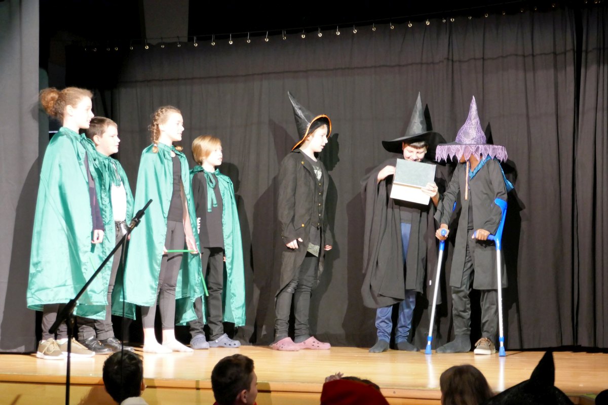 Fünf "magische" Theaterstücke in englischer Sprache brachten die 2. Klassen zur Aufführung: Harriet Potter, Robin Hood, Cinderella, The Witches of Dingerly Dell und The Monster of Altlengbach. Den Volksschülern aus Altlengbach und den zahlreichen Erwachsenen hat es sehr gefallen!