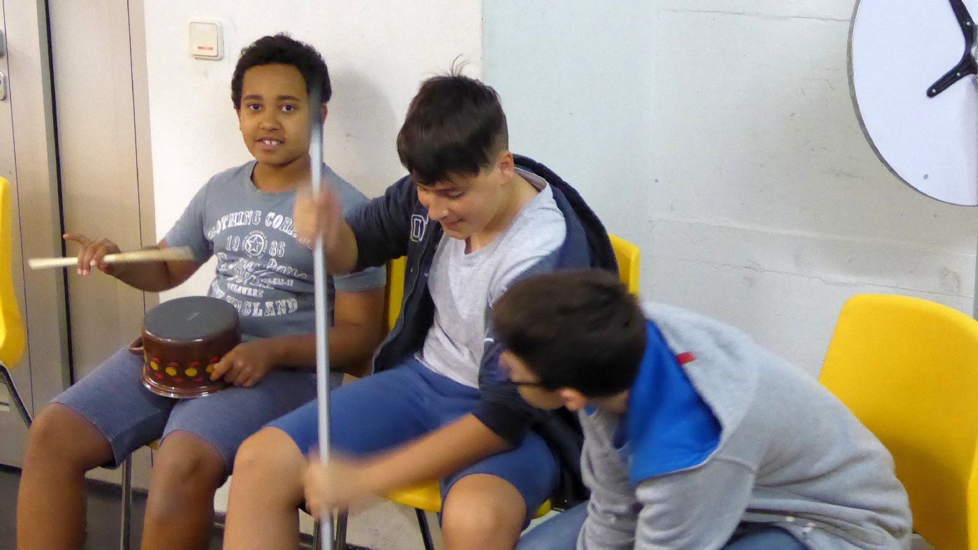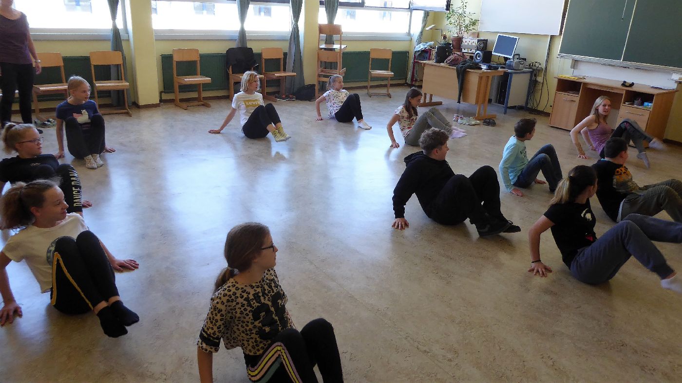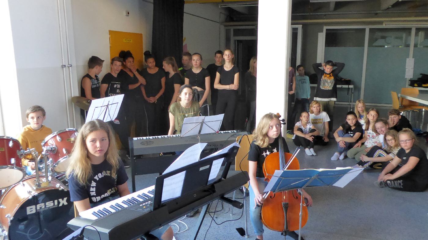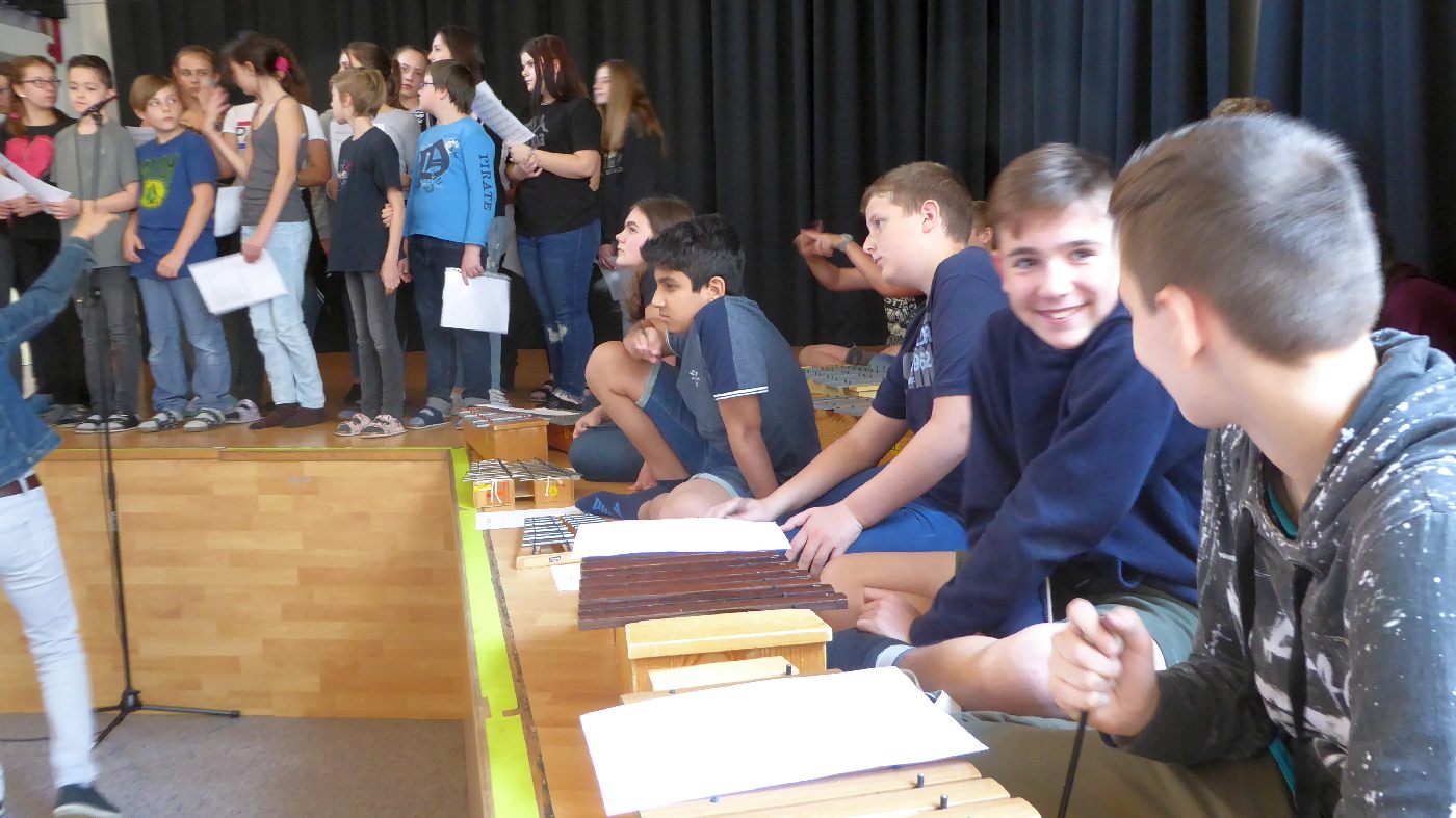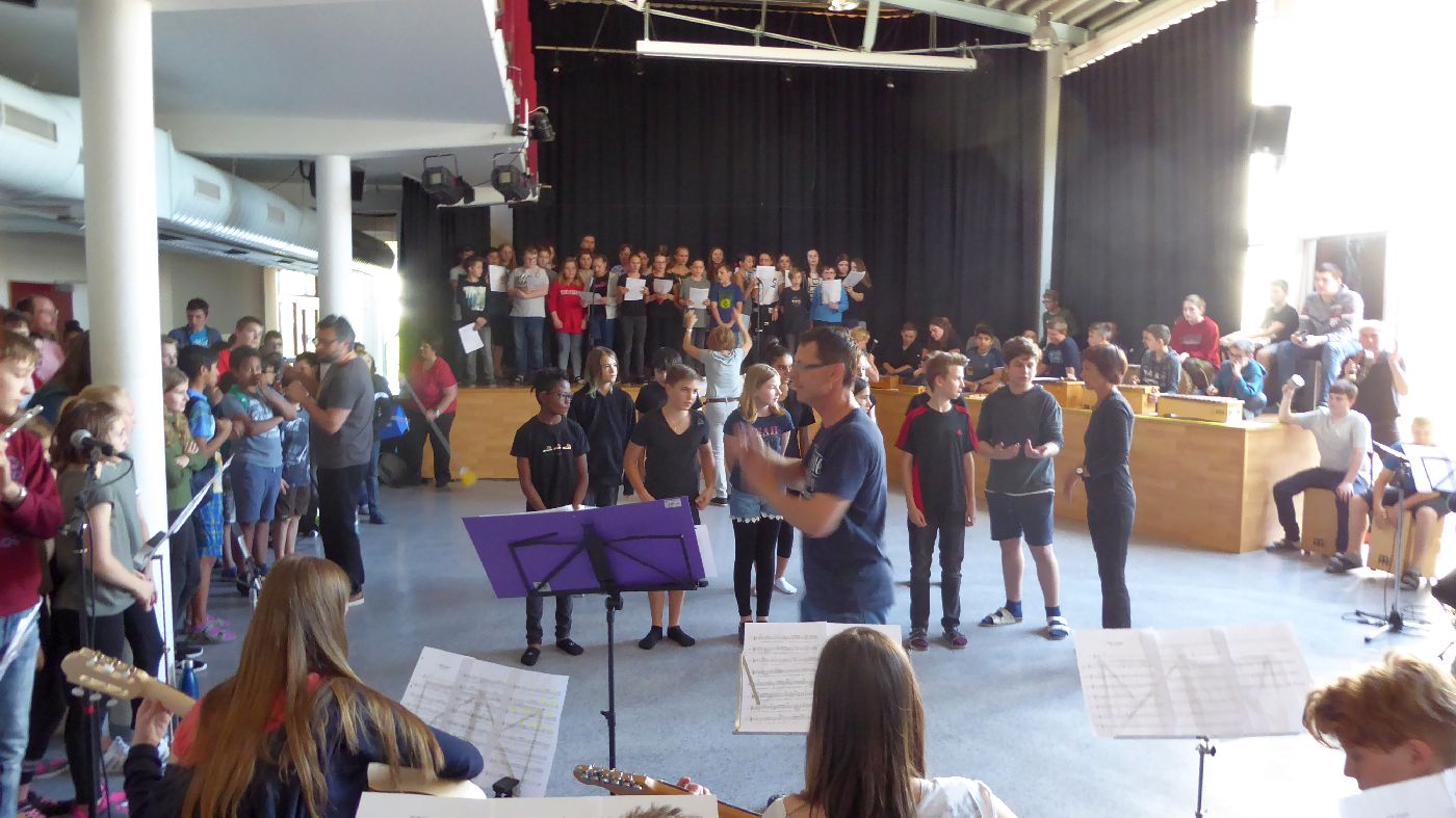 Ein ganz besonderer Tag: In vielen verschiedenen Gruppen (2mal Chor, 2mal Ensemble, Orff-Gruppe, Stomp, Beatboxing und 4mal Tanz) bereiteten sich alle Menschen im Haus (und ein paar Gäste) auf die gemeinsame Aufführung eines Musikstückes vor - und am Schluss gab es diese gelungene Aufführung.
