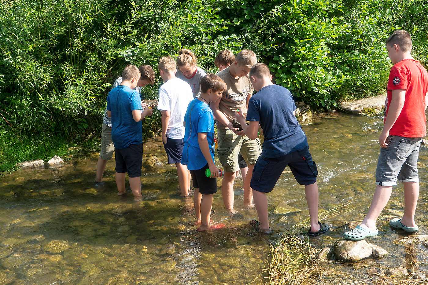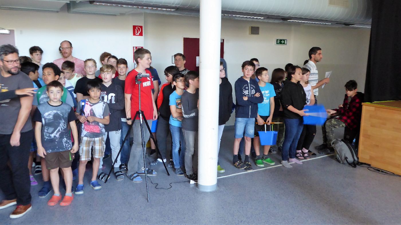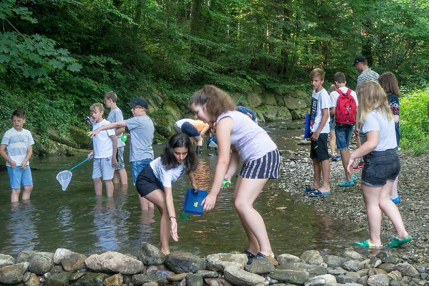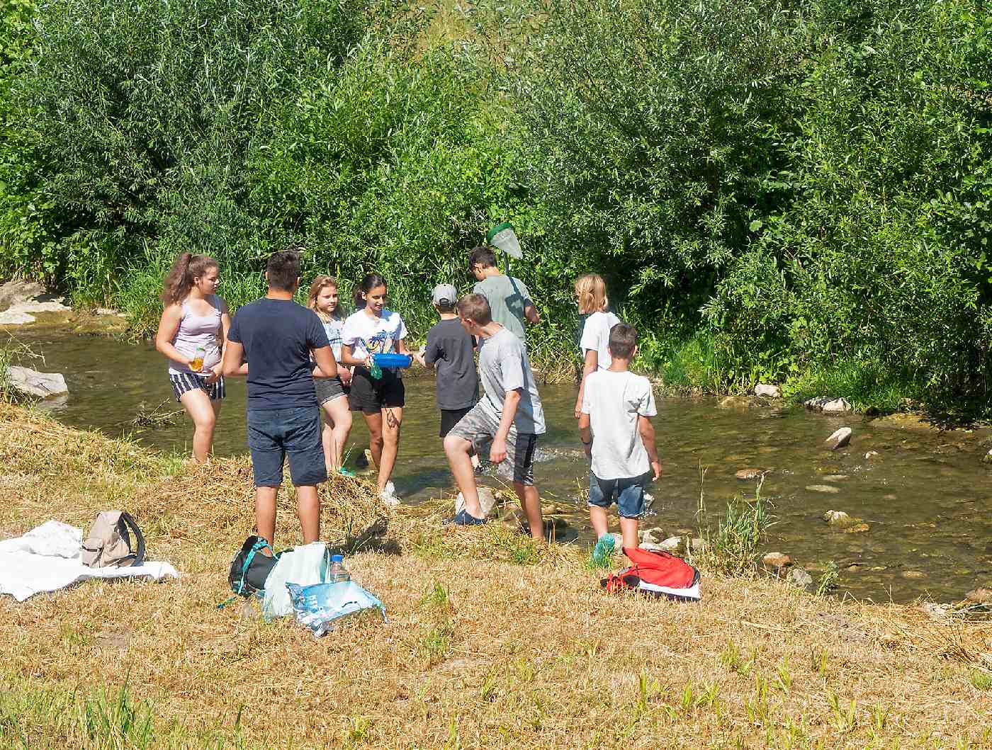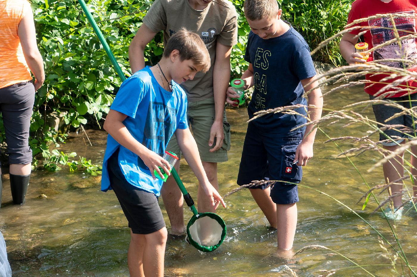 Die 3. Klassen beschäftigten sich bei ihrem Schlussprojekt mit der Photosynthese und mit einer Wasseruntersuchung. Als Nebeneffekt gab es eine Abkühlung von der Hitzewelle im nahen Laabenbach.