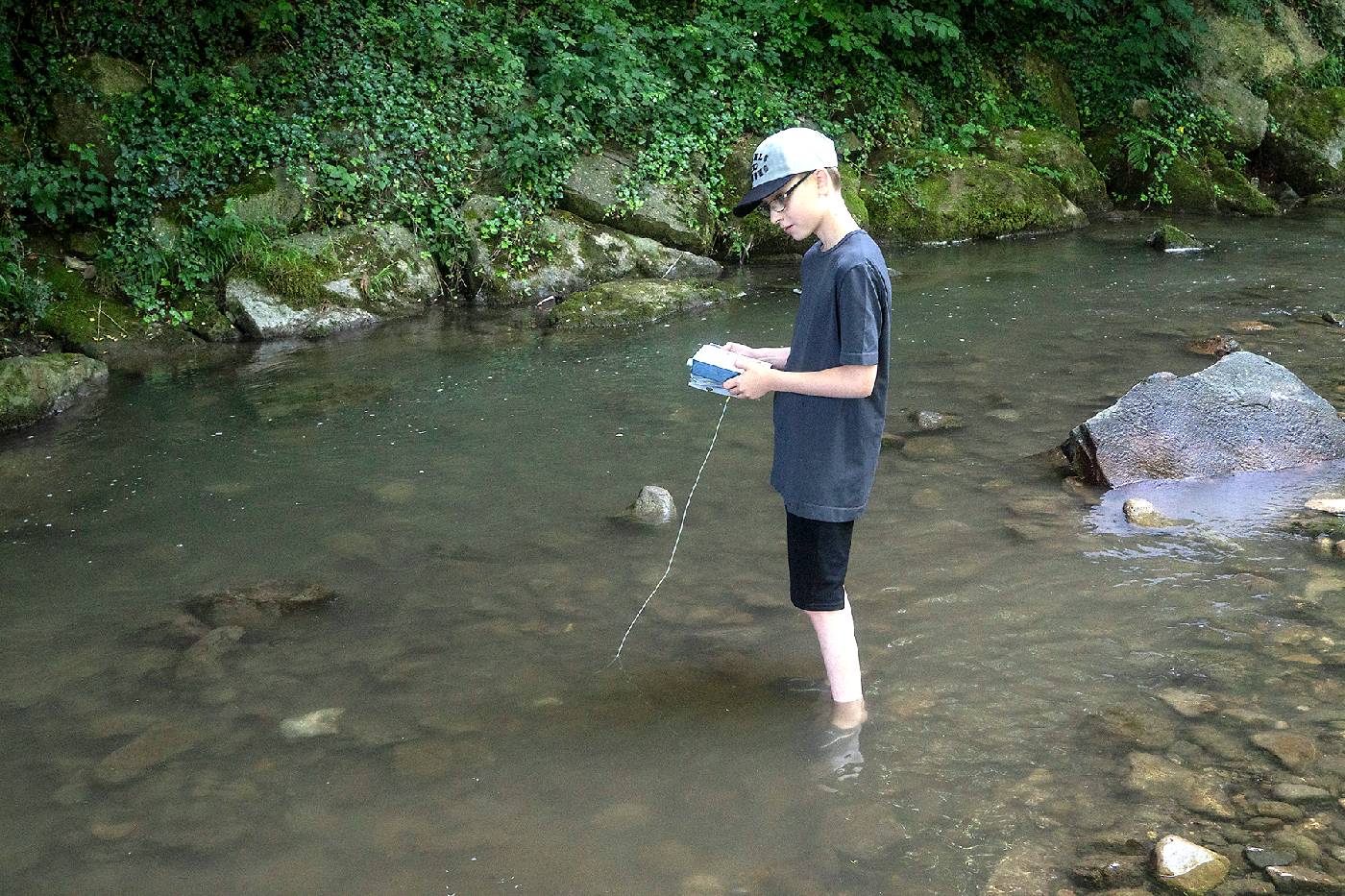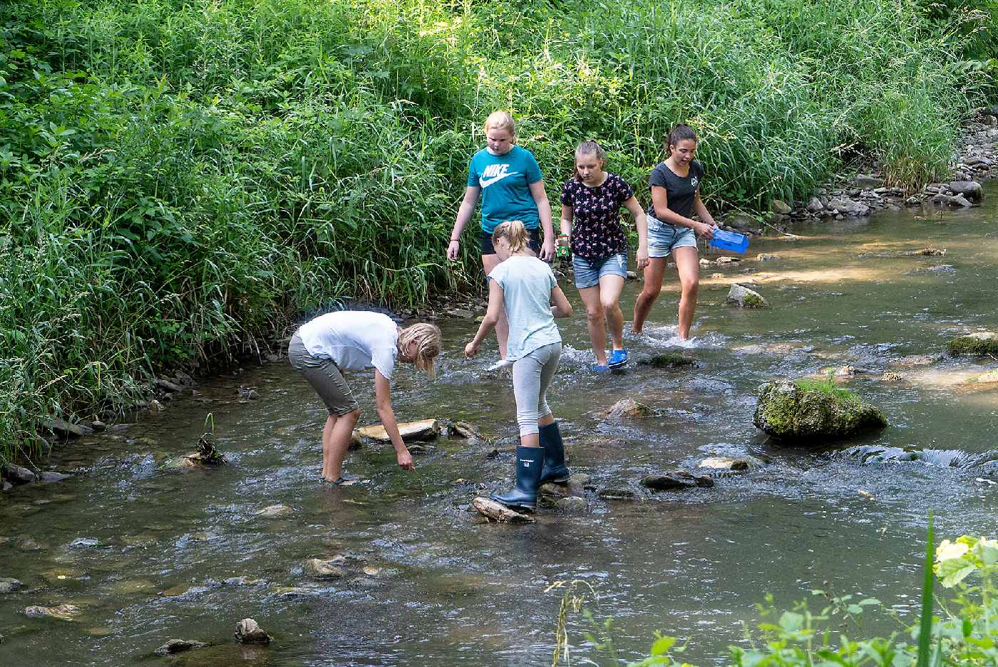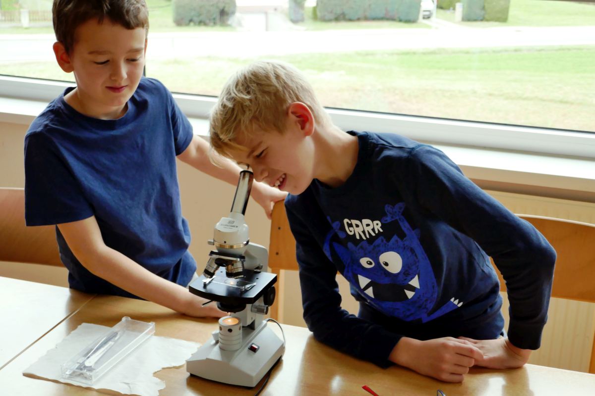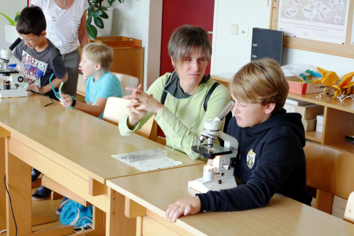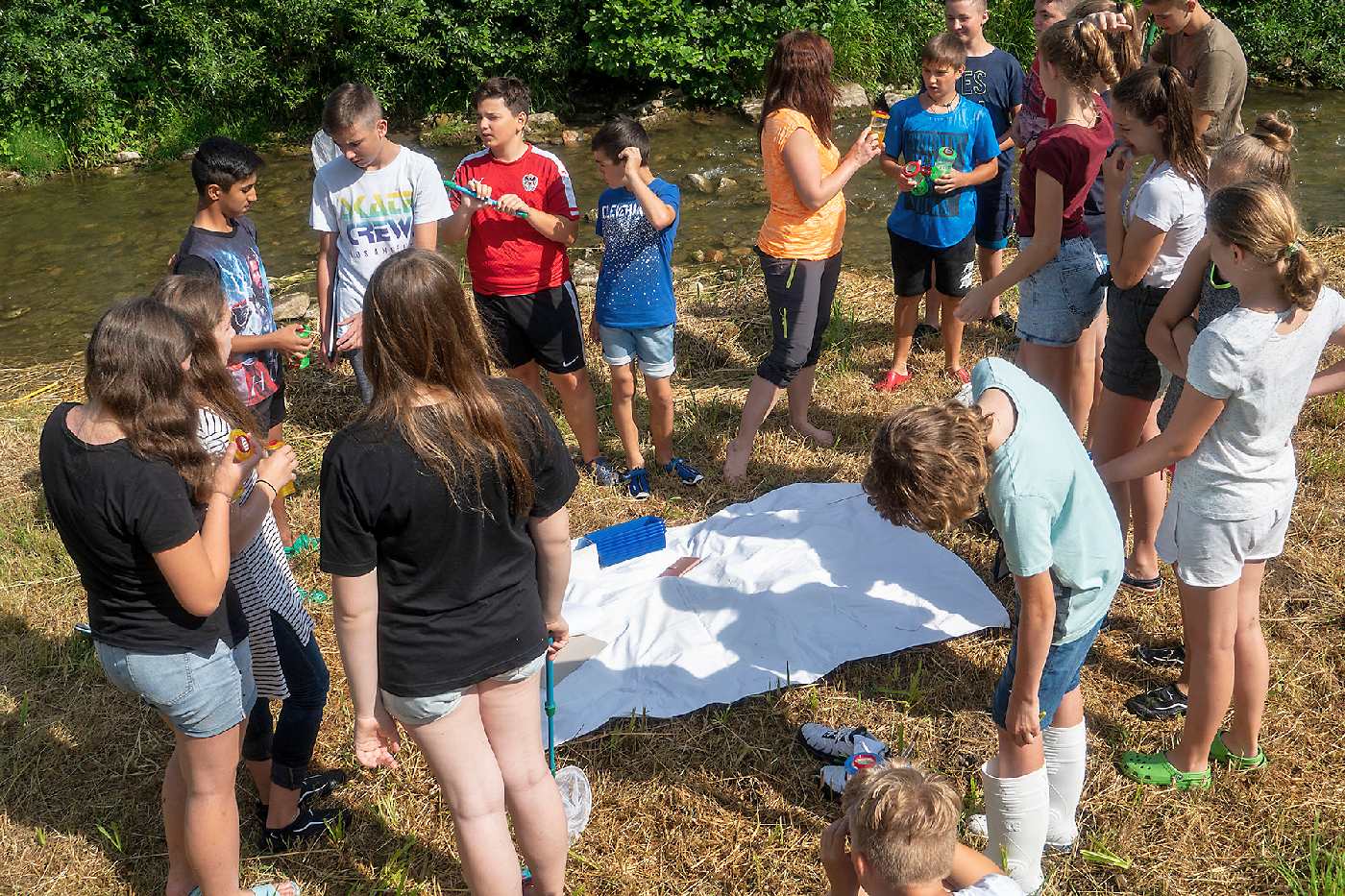 Die 3. Klassen beschäftigten sich bei ihrem Schlussprojekt mit der Photosynthese und mit einer Wasseruntersuchung. Als Nebeneffekt gab es eine Abkühlung von der Hitzewelle im nahen Laabenbach.