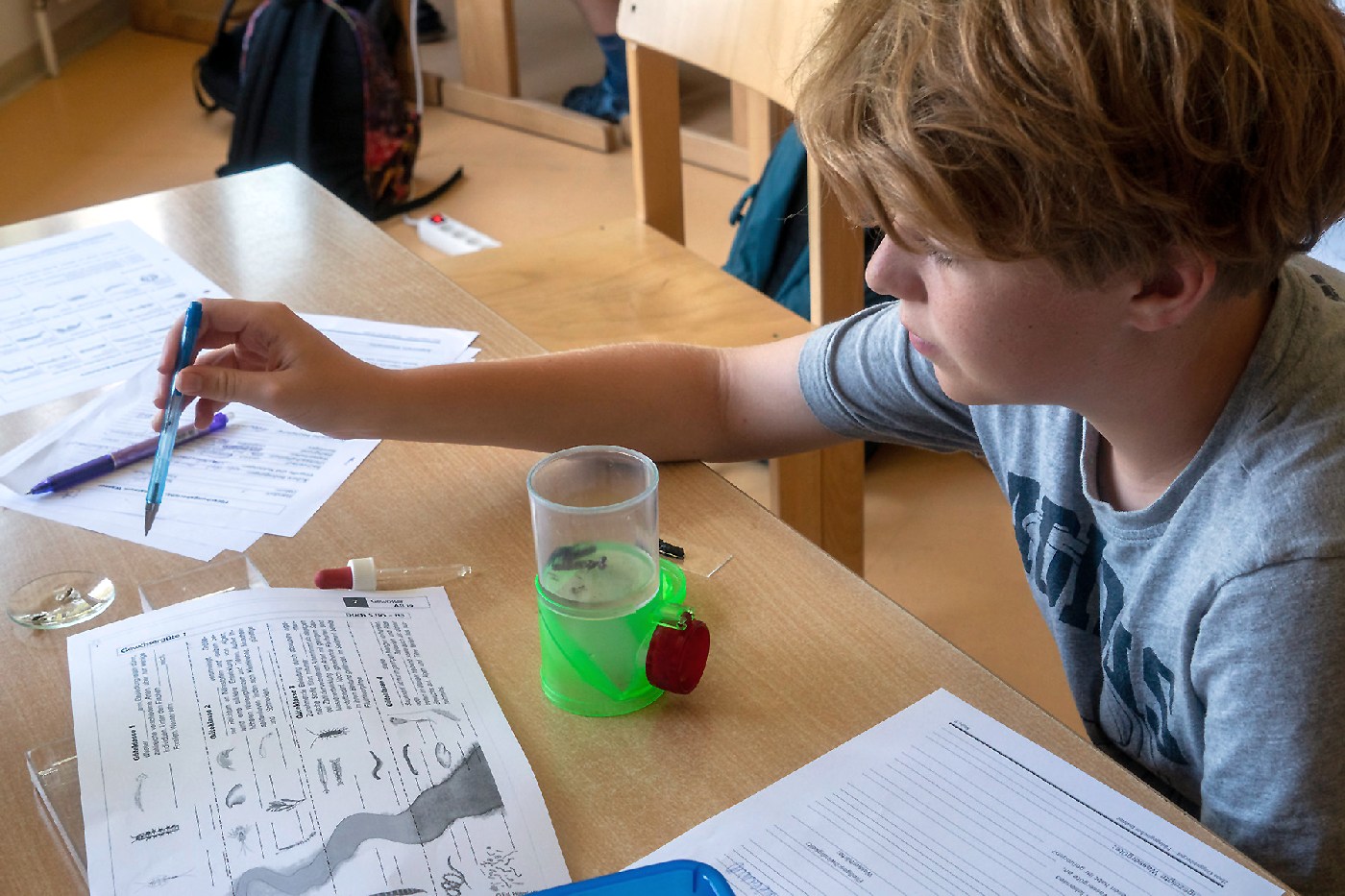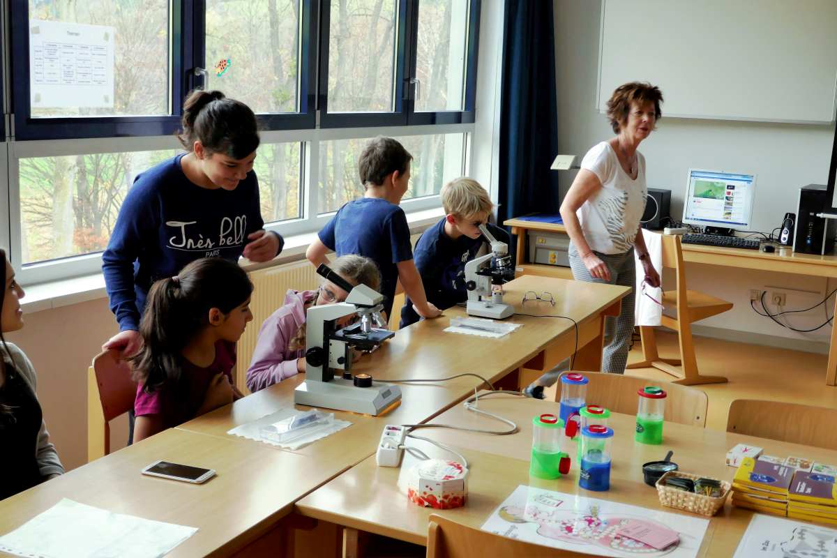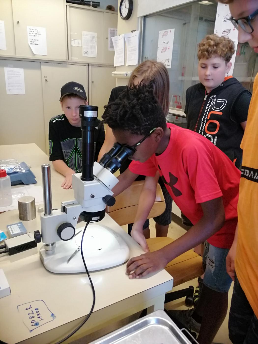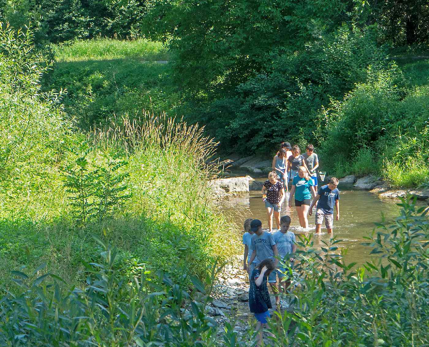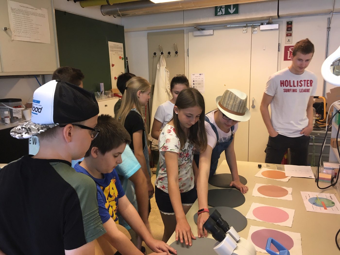 Die 3. Klassen beschäftigten sich bei ihrem Schlussprojekt mit der Photosynthese und mit einer Wasseruntersuchung. Als Nebeneffekt gab es eine Abkühlung von der Hitzewelle im nahen Laabenbach.