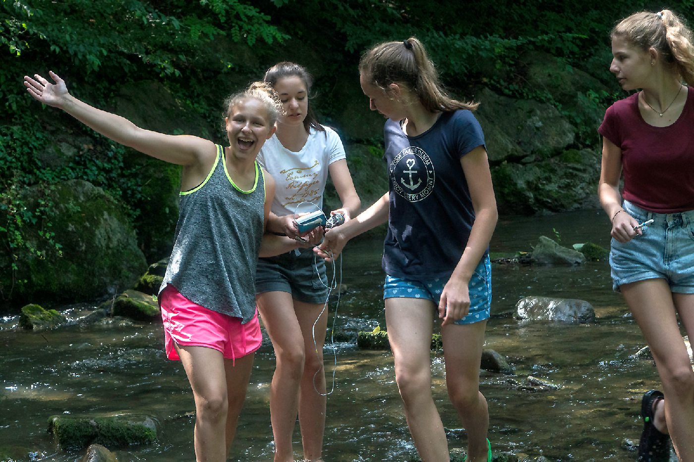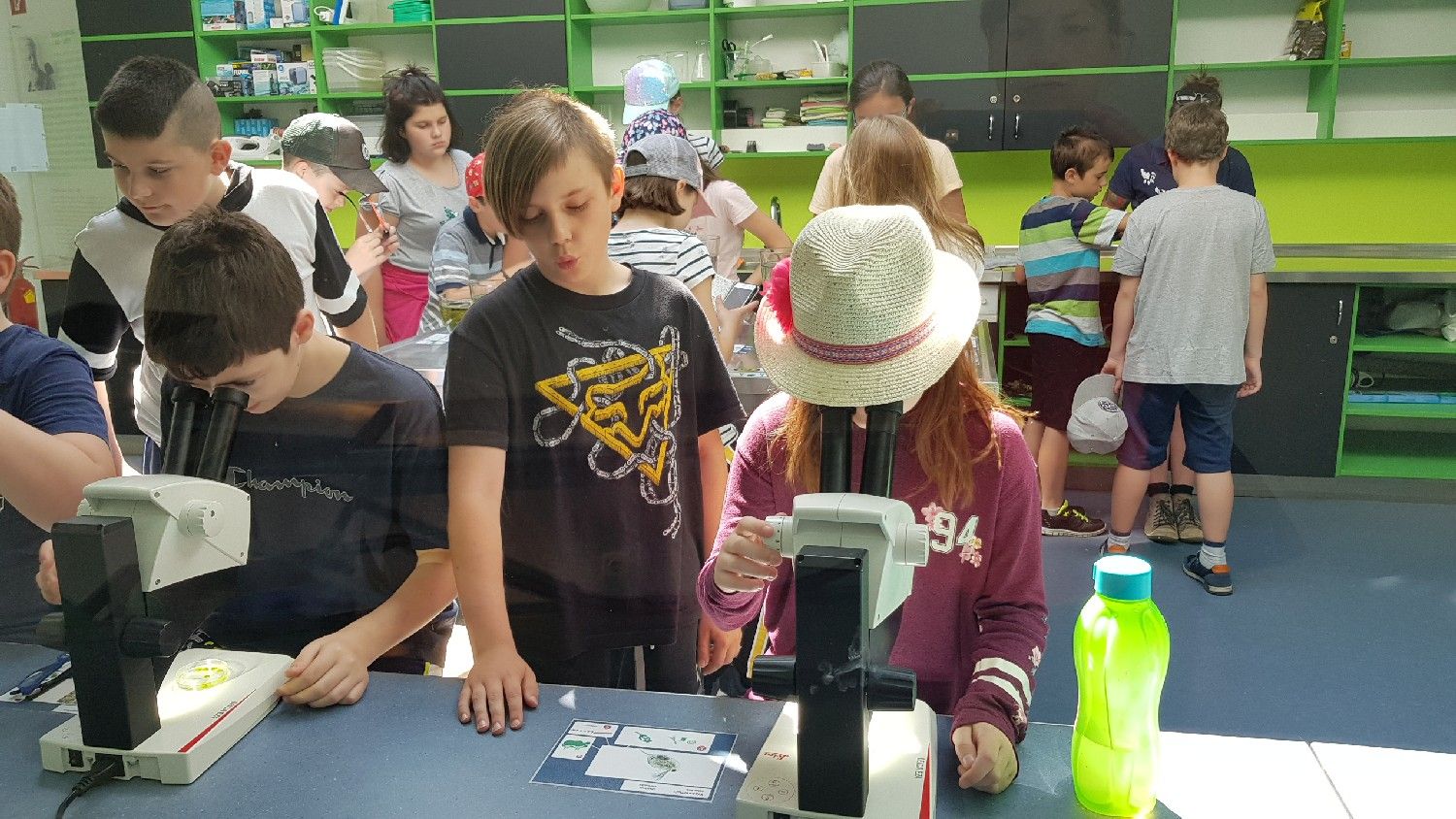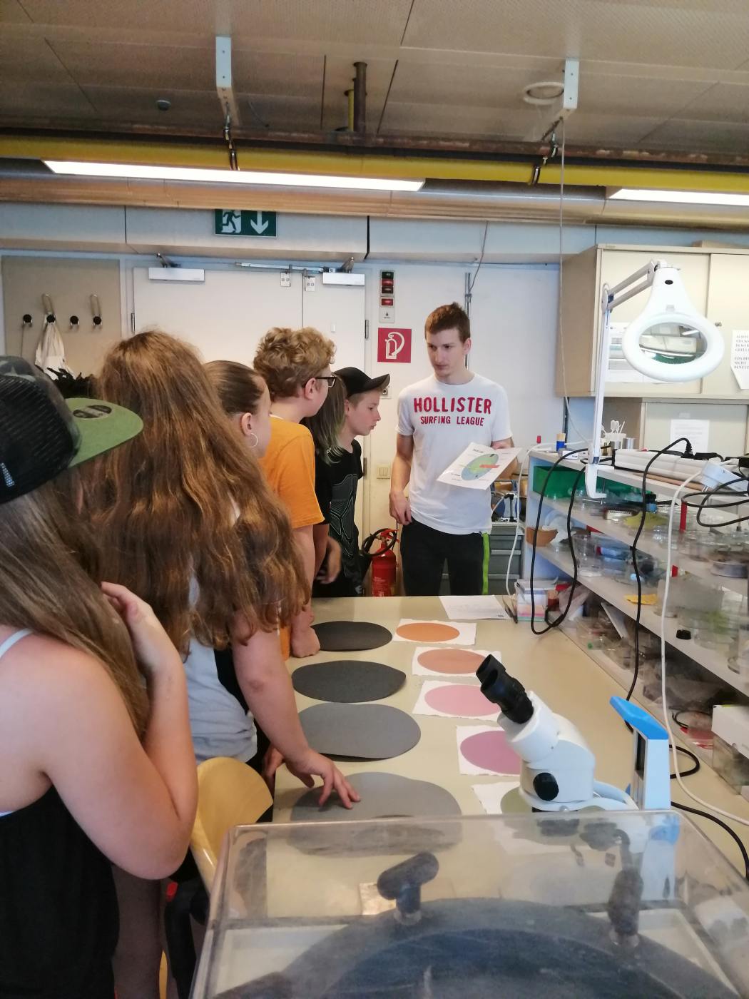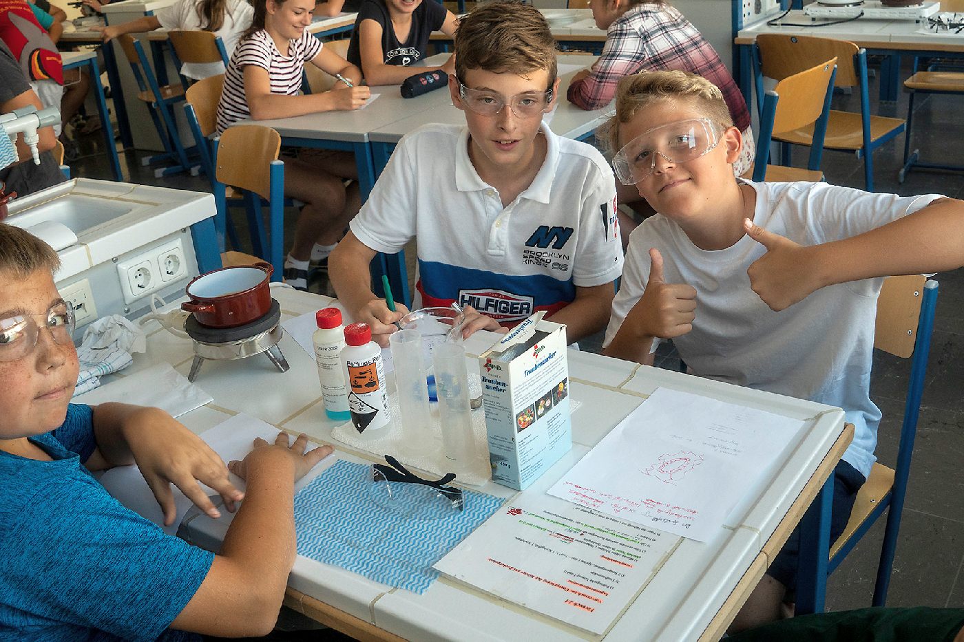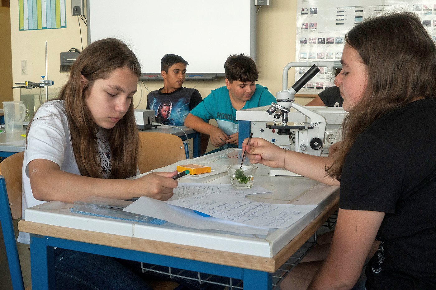 Die 3. Klassen beschäftigten sich bei ihrem Schlussprojekt mit der Photosynthese und mit einer Wasseruntersuchung. Als Nebeneffekt gab es eine Abkühlung von der Hitzewelle im nahen Laabenbach.