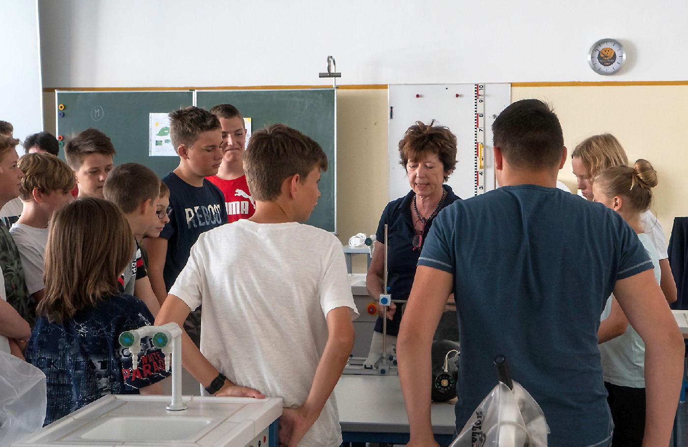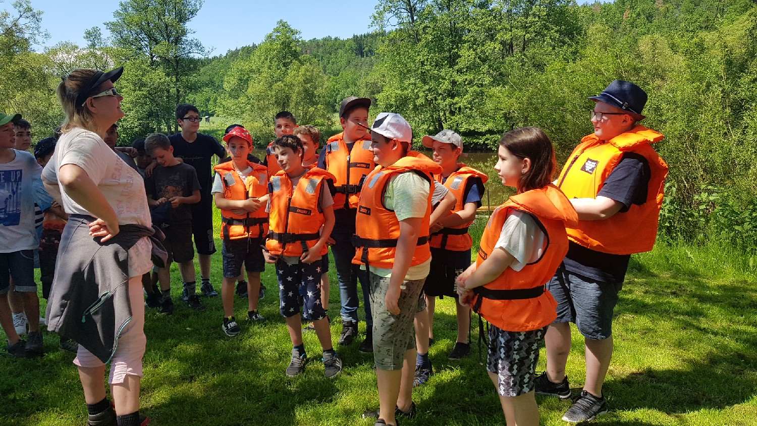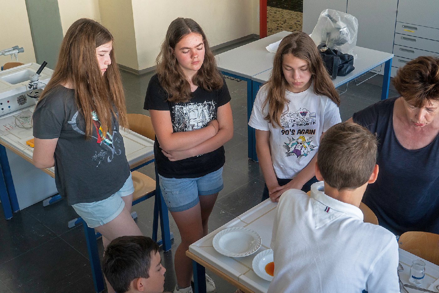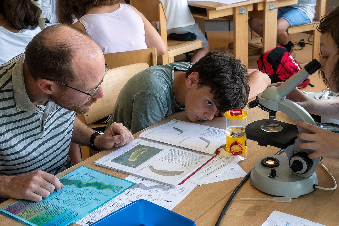 Die 3. Klassen beschäftigten sich bei ihrem Schlussprojekt mit der Photosynthese und mit einer Wasseruntersuchung. Als Nebeneffekt gab es eine Abkühlung von der Hitzewelle im nahen Laabenbach.