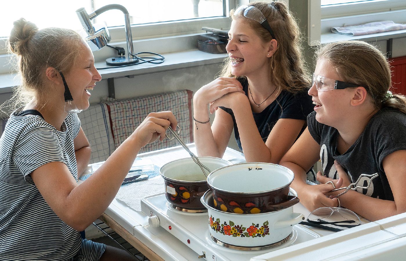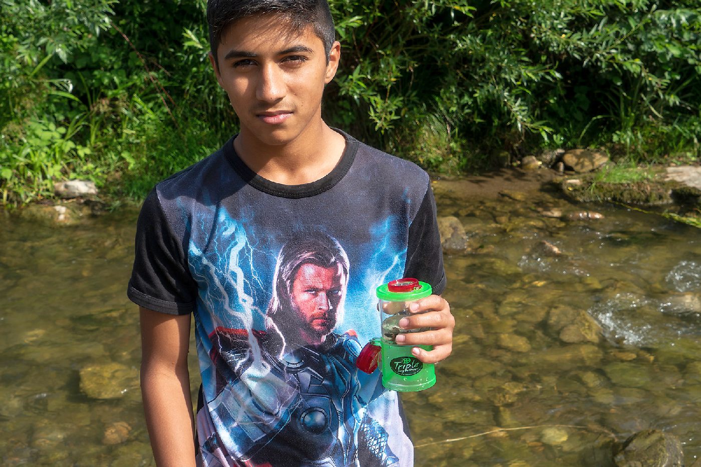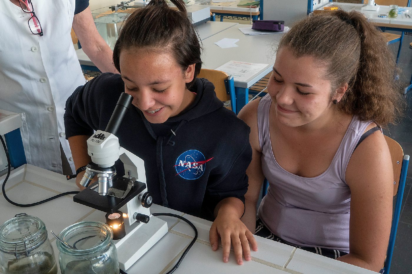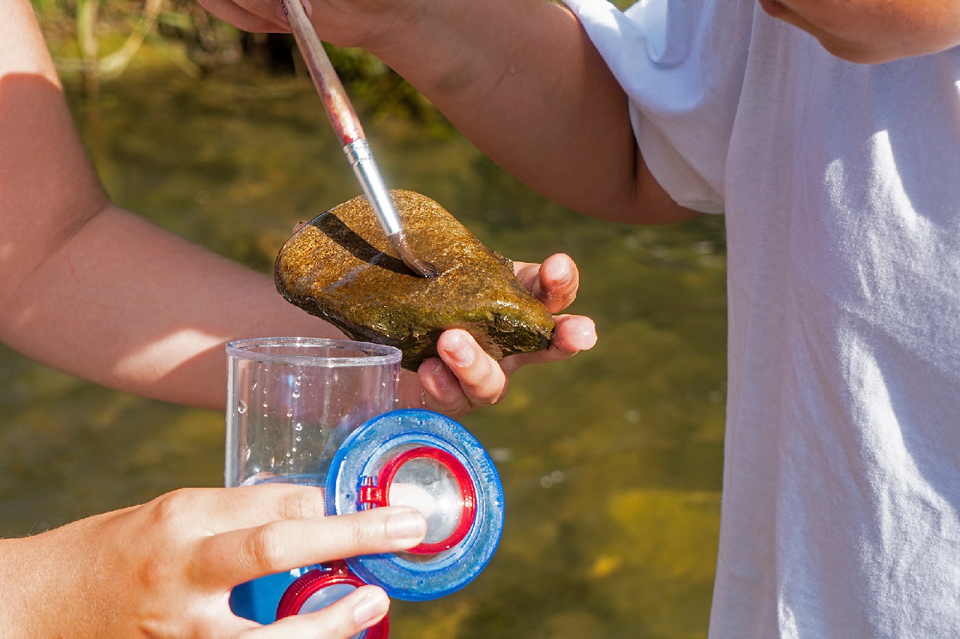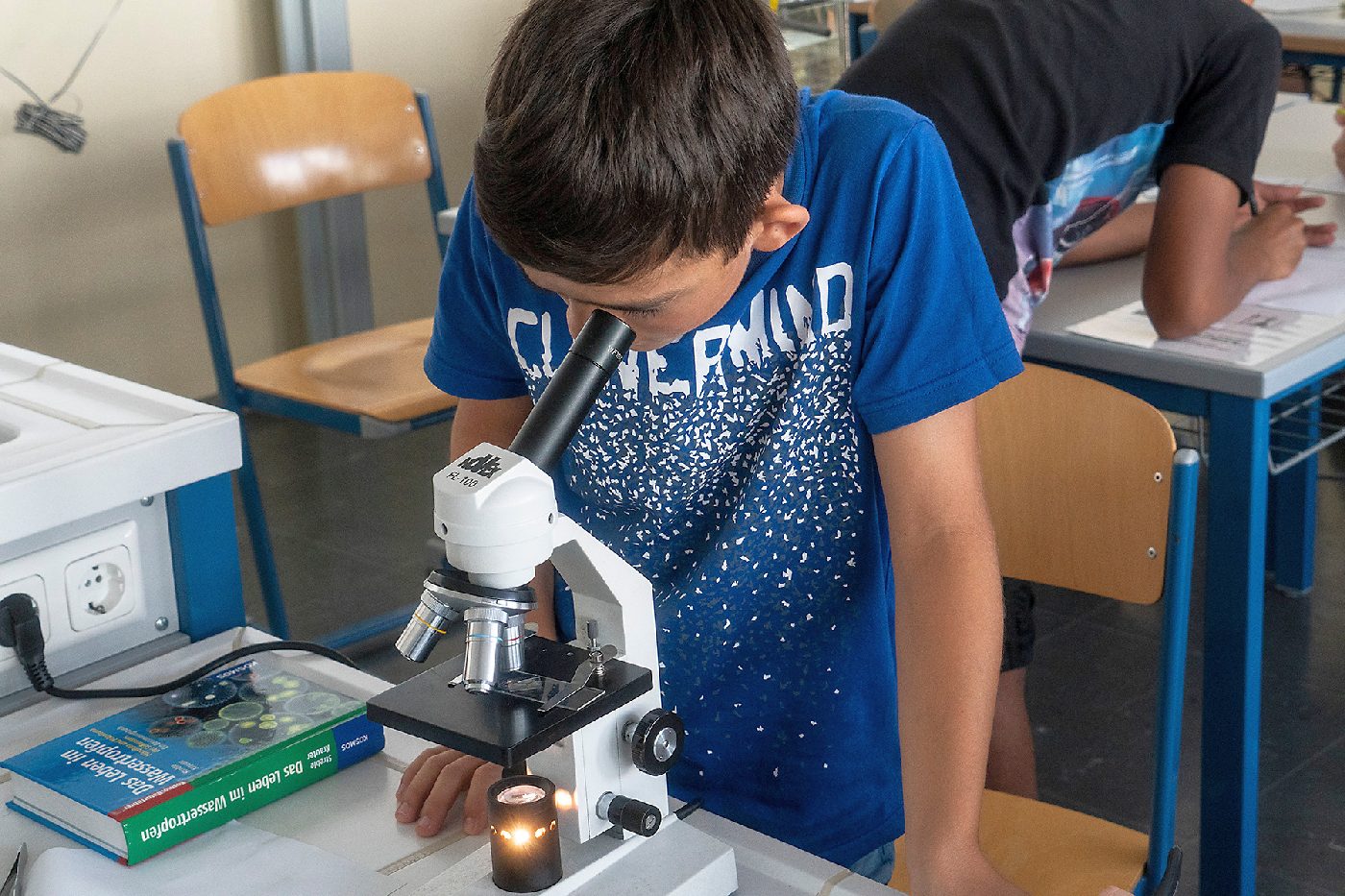Die 3. Klassen beschäftigten sich bei ihrem Schlussprojekt mit der Photosynthese und mit einer Wasseruntersuchung. Als Nebeneffekt gab es eine Abkühlung von der Hitzewelle im nahen Laabenbach.