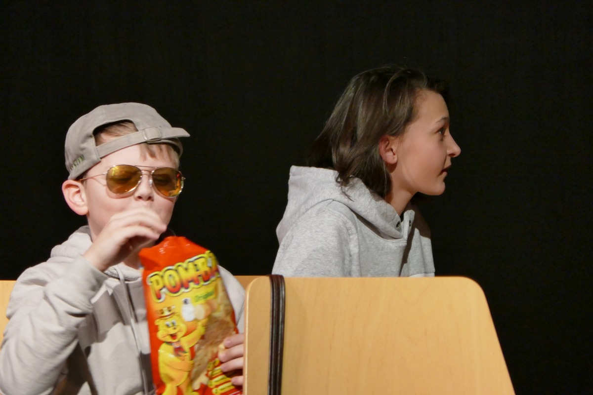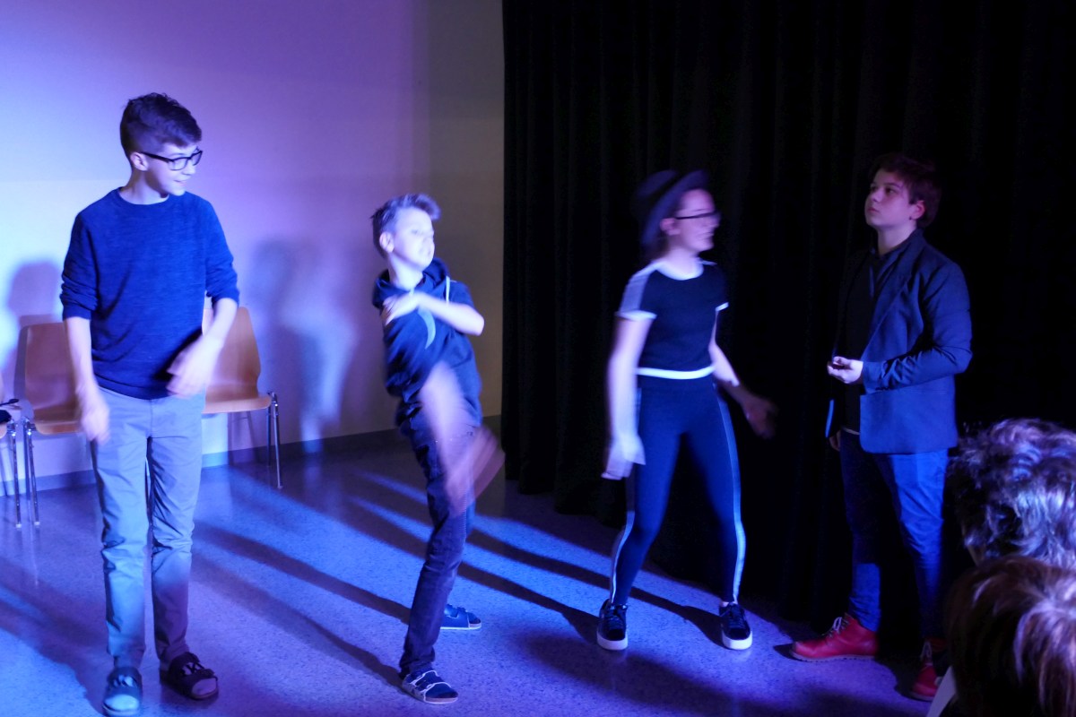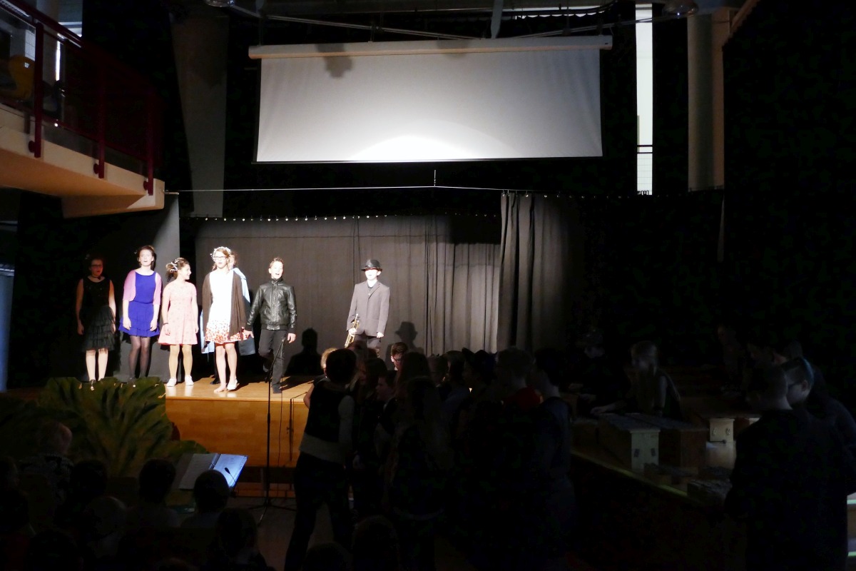 Die DSP-Gruppe der 4. Klassen hatte ihren letzten großen Auftritt: Aus der Entwicklung von (schrägen) Typen entstanden Szenen, die Thomas Koller zu einem märchenhaften Kriminalstück umformte. Das Ergebnis konnten zahlreiche Besucher an 2 Abenden sehen. Wer's verpasst hat: Hier die Gesamtaufnahme des Premierenabends: