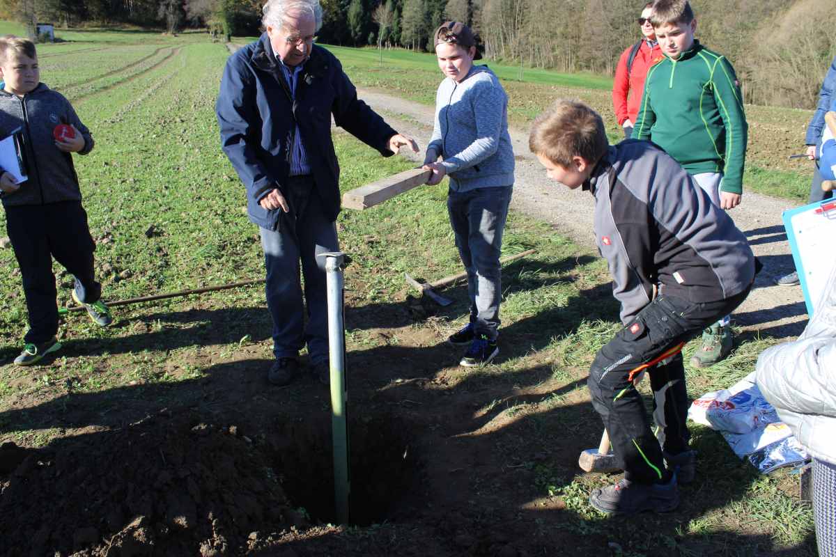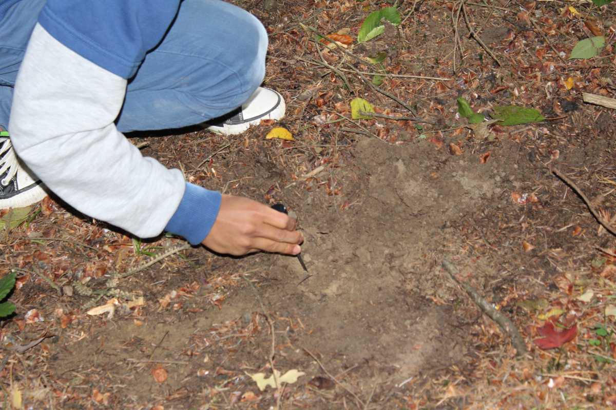 Ein Tag des Projekts "Land und Leute" der 3. Klassen stand - bei strahlendem, aber kühlen Wetter - unter dem Titel "Bodenuntersuchung". Dabei wurden an verschiedenen Stellen im Umfeld der Schule Bodenproben entnommen und auf Lebewesen und chemische Anteile untersucht. (Fotos: Benjamin A. - 3a)