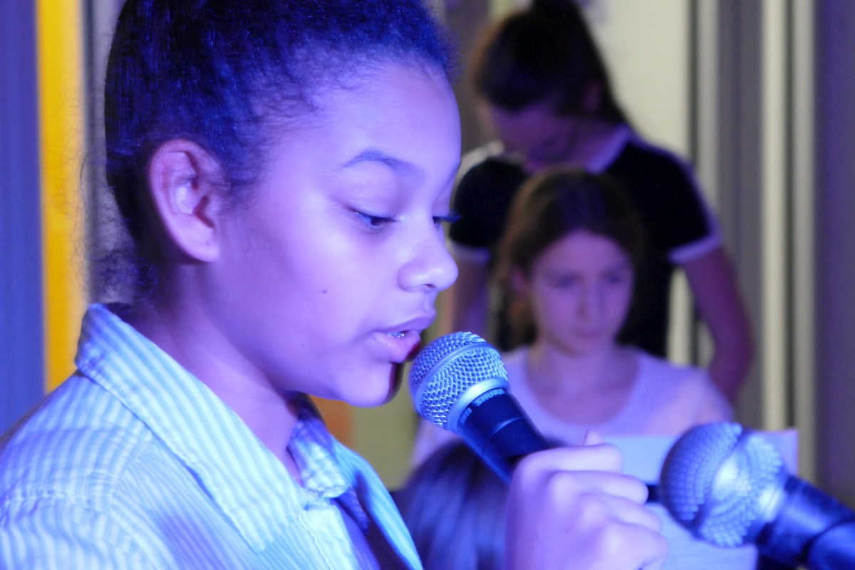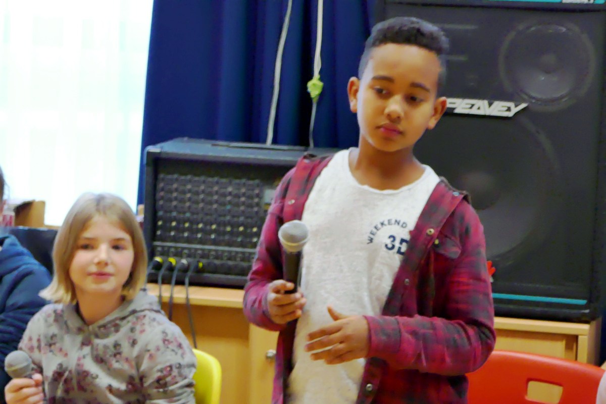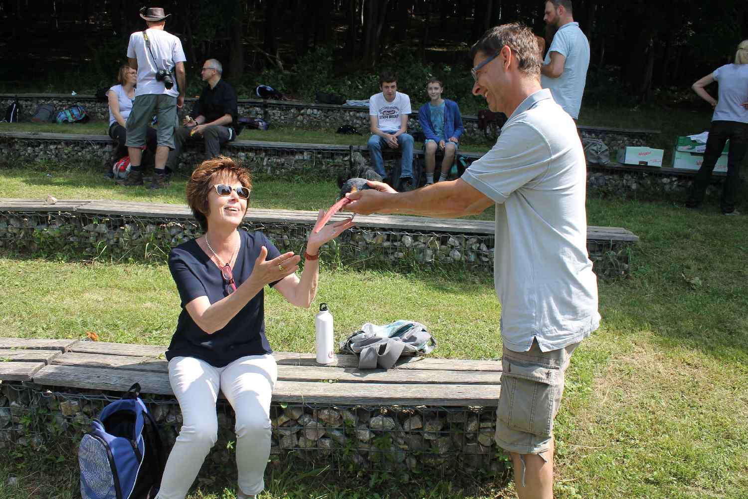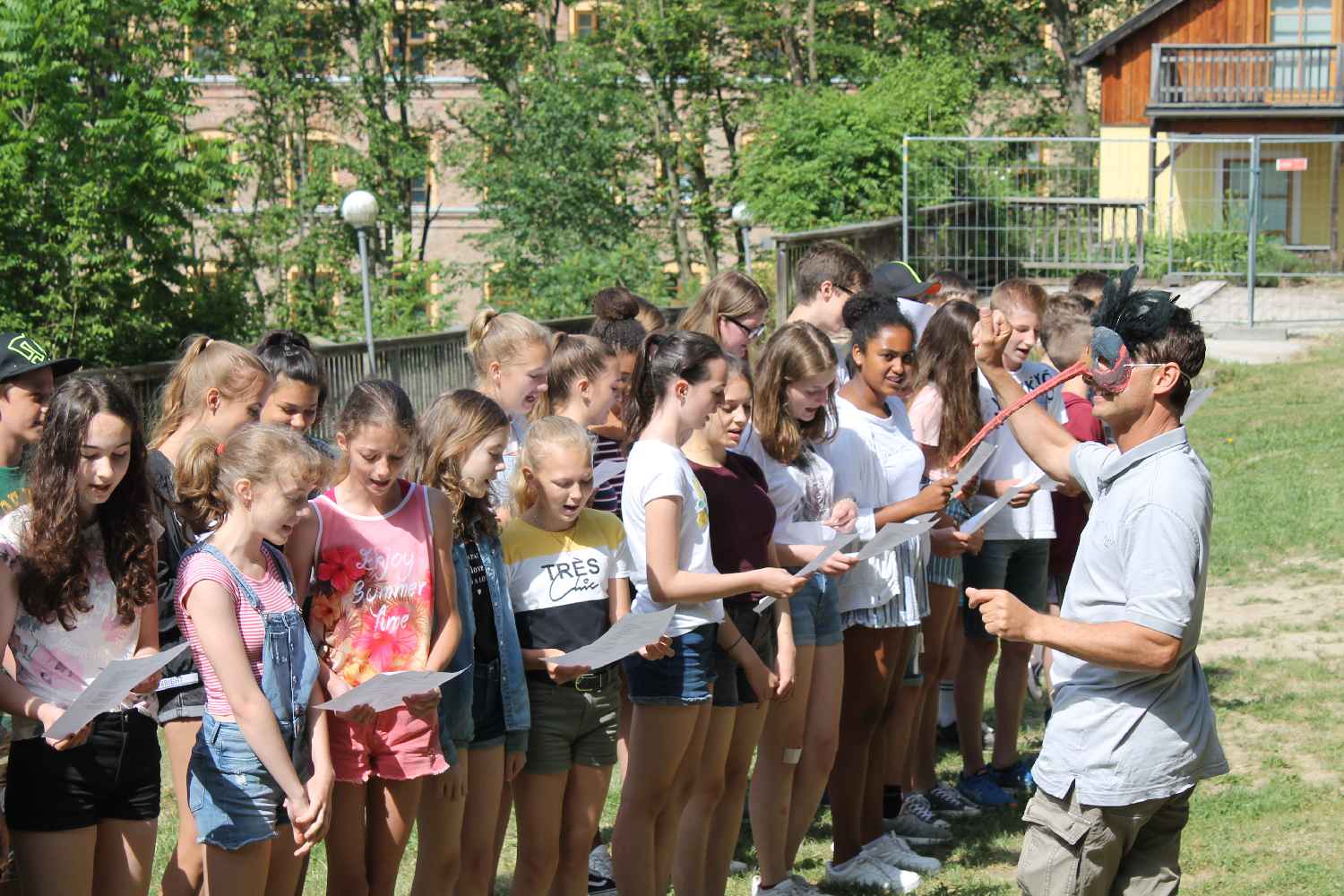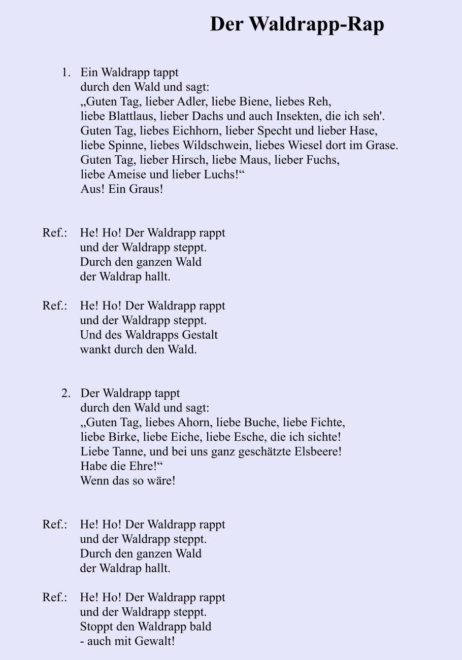 Das Projekt wurde mit einer gemeinsamen Abschlussfeier aller Beteiligten beendet. Unser Beitrag war der Waldrapp-Rap - mit einem (beinahe echten) Waldrapp......
