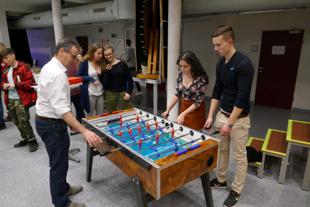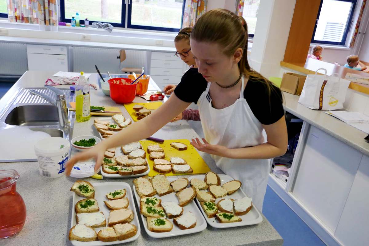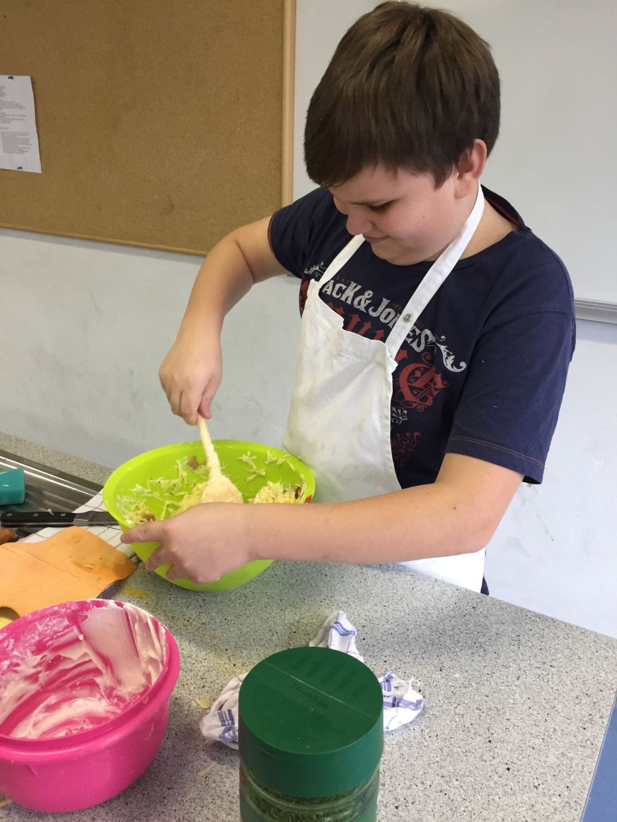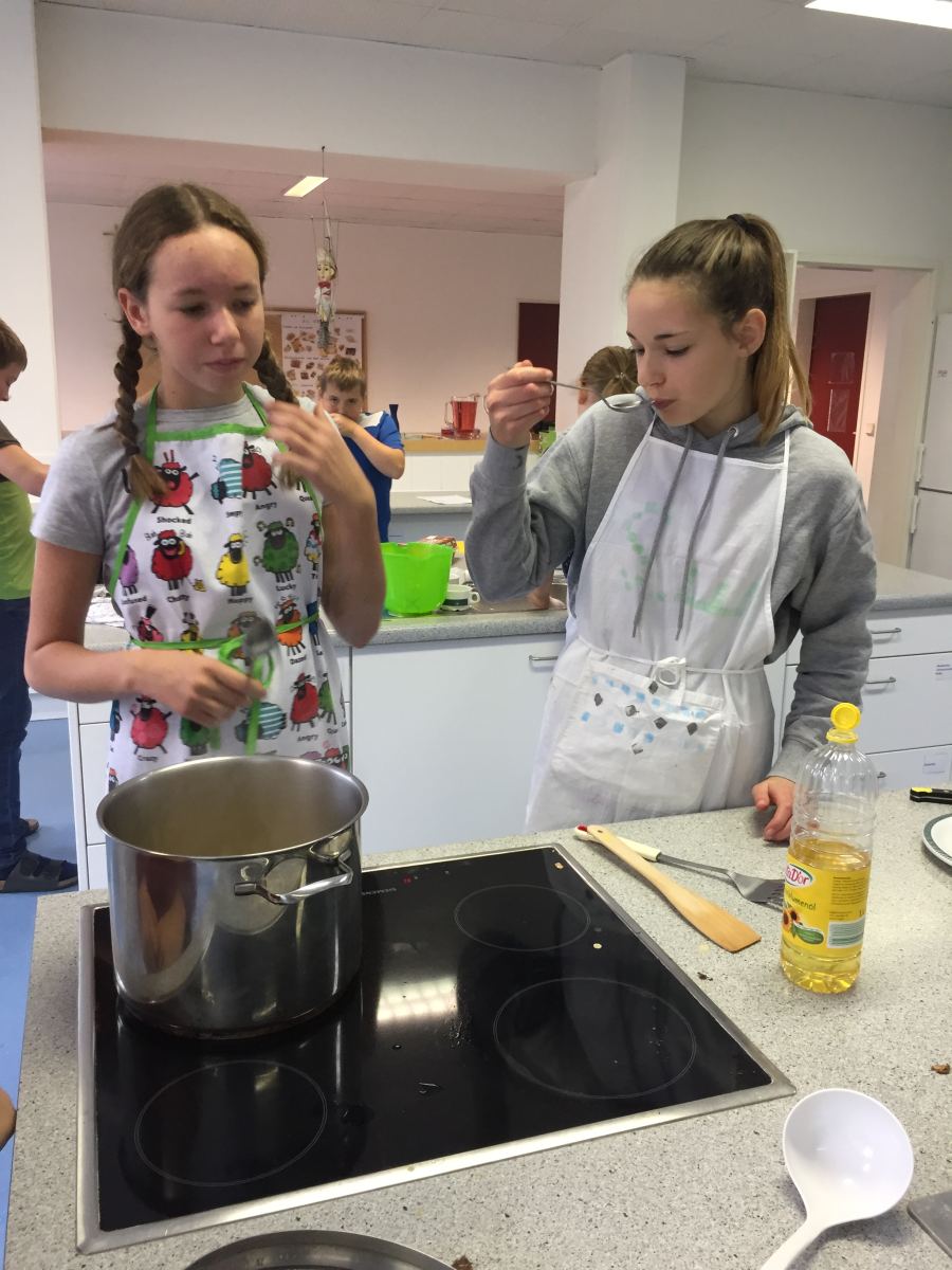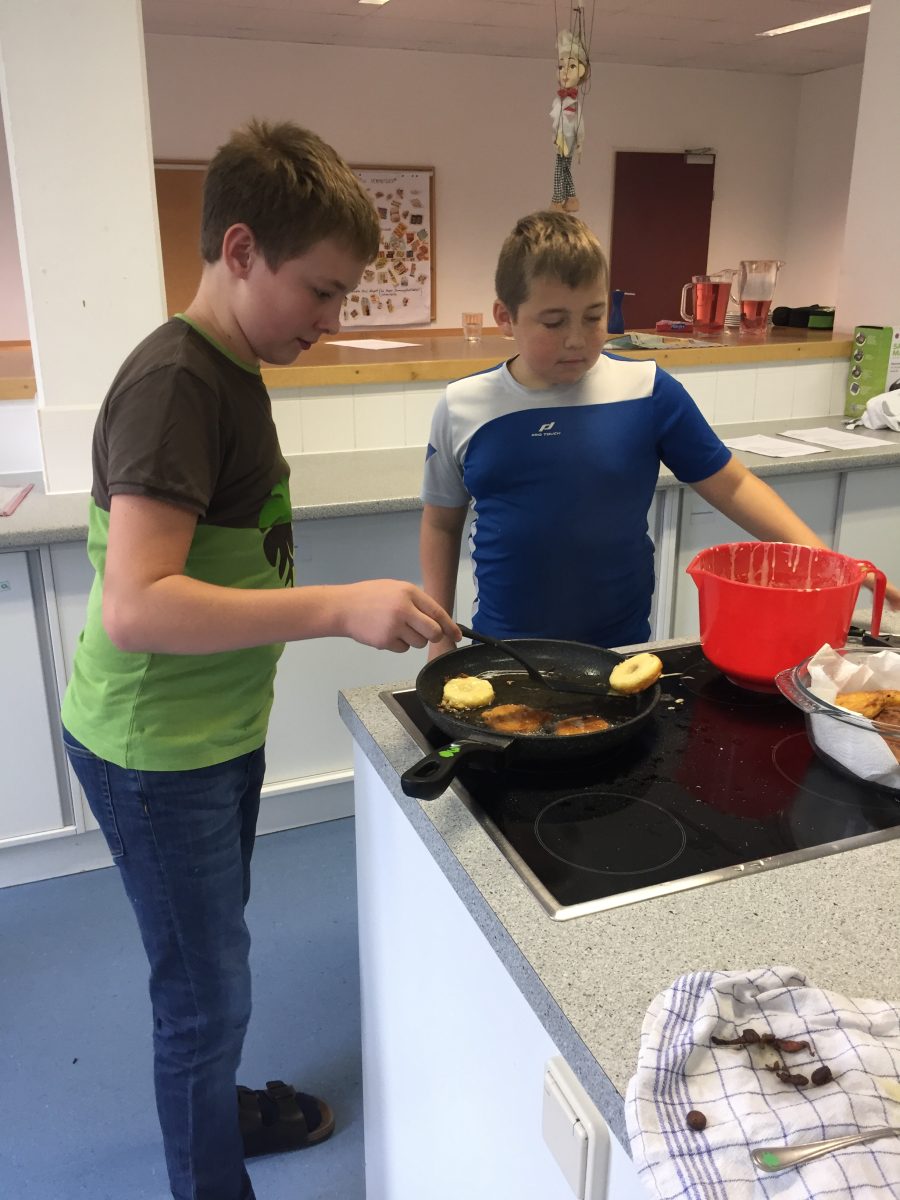... ist bei uns das Backen (und genussvolle Verzehren) von Faschingskrapfen am Faschingdienstag. Chef de Cuisine ist immer Thomas Friedl - diesmal mit sehr engagierten Bäckerinnen und Bäckern der 2b, die innerhalb von eineinhalb Stunden 220 Krapfen fertigstellten.