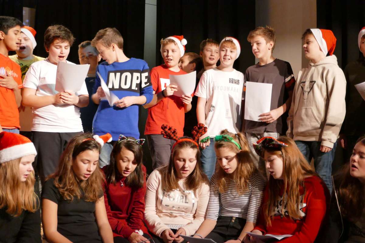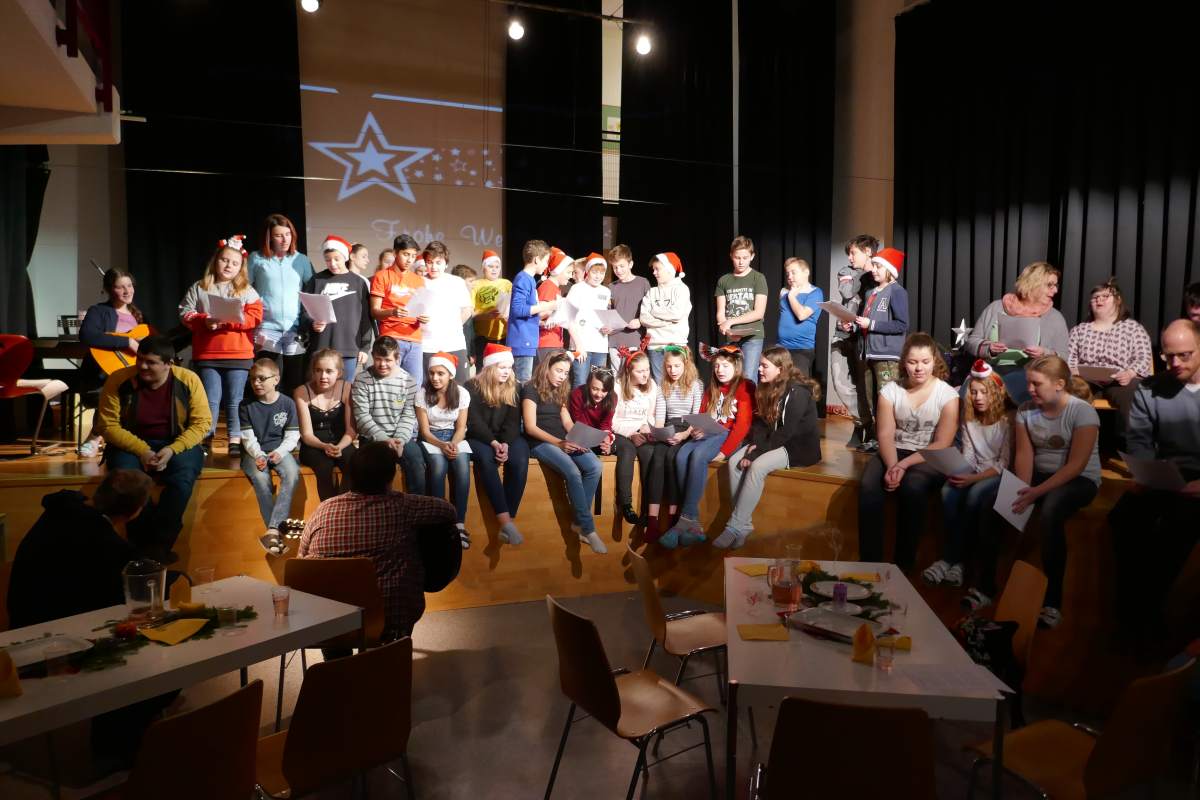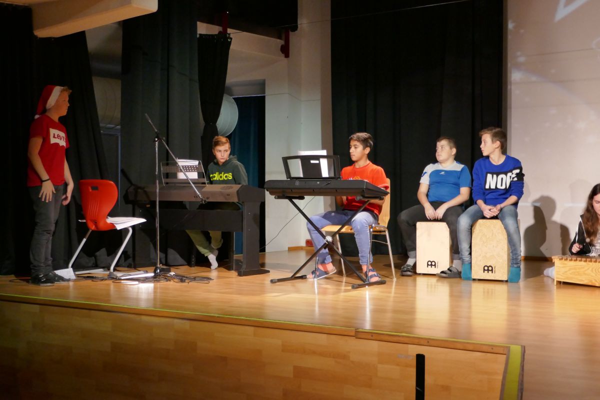 Die 3. Klassen luden im Rahmen ihres zweiten Projekts Gäste von "Jugend am Werk" zu einer gemeinsamen vorweihnachtlichen Feier. Das gemeinsame Singen, Musizieren und Essen bereitete unseren Gästen sichtbar Freude - und unsere Schülerinnen und Schüler waren mit großem Engagement mit dabei.