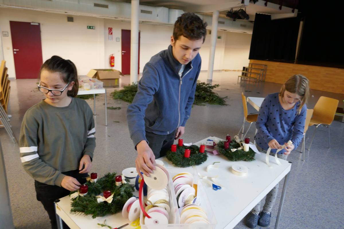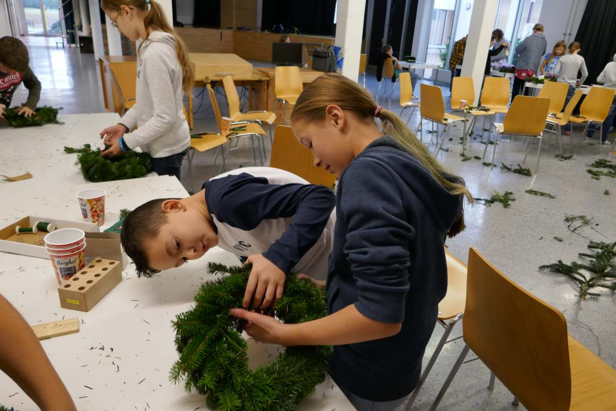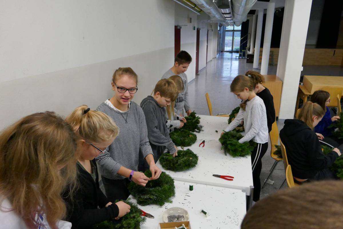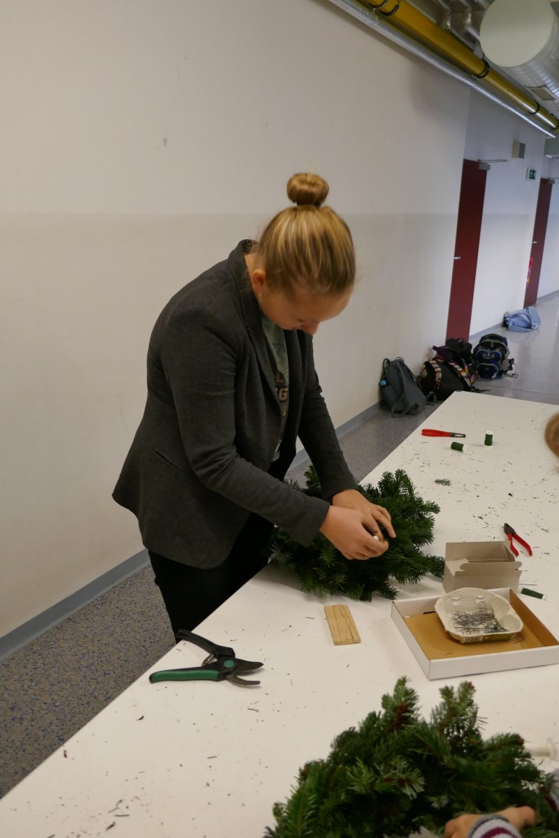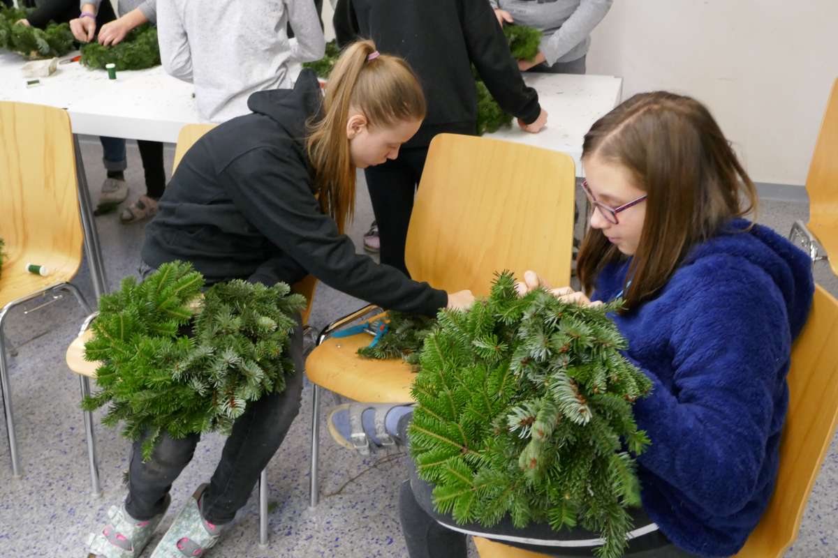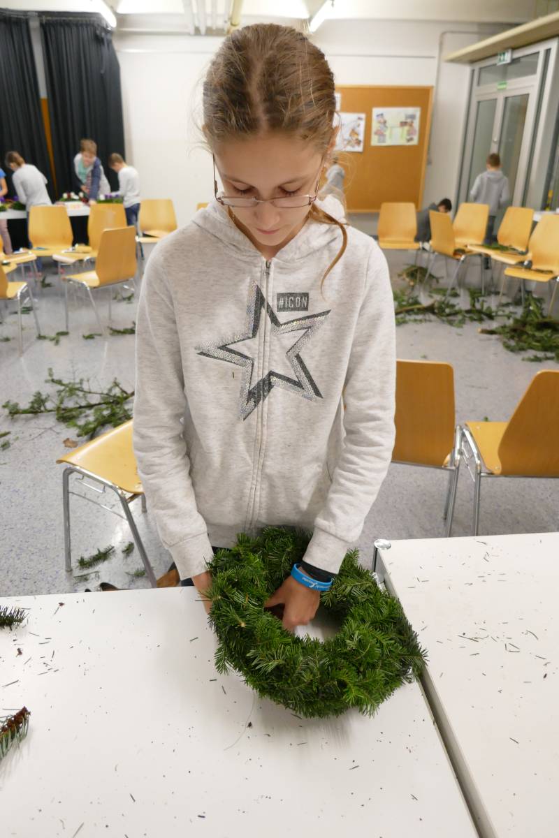 Auch heuer wieder: Thomas Friedl organisierte und leitete das Adventkranzbinden für alle Klassen. Wir bedanken uns sehr bei der Familie Kiebl für die Bereitstellung und Lieferung des dafür notwendigen Reisigs!