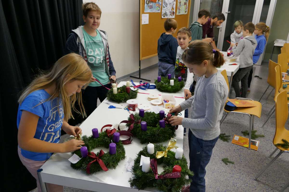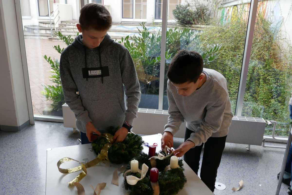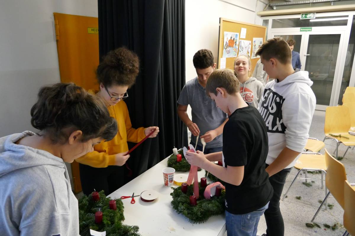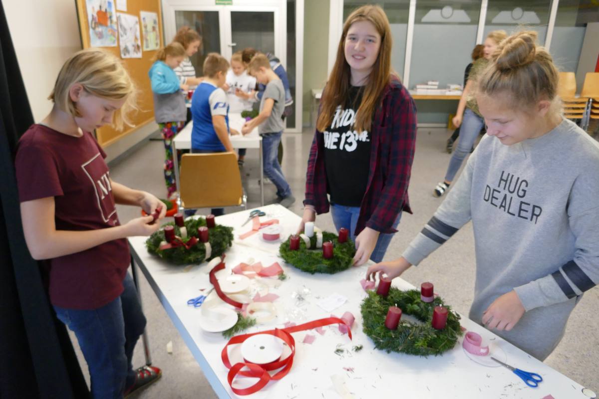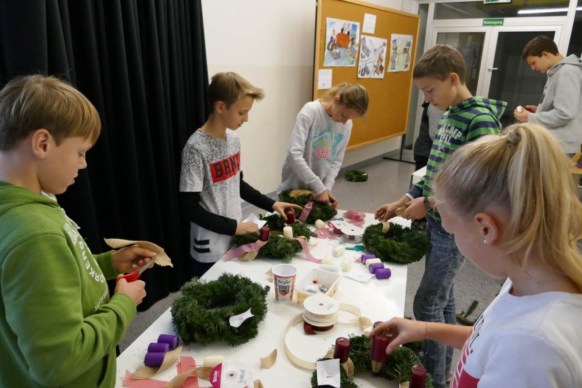 Auch heuer wieder: Thomas Friedl organisierte und leitete das Adventkranzbinden für alle Klassen. Wir bedanken uns sehr bei der Familie Kiebl für die Bereitstellung und Lieferung des dafür notwendigen Reisigs!