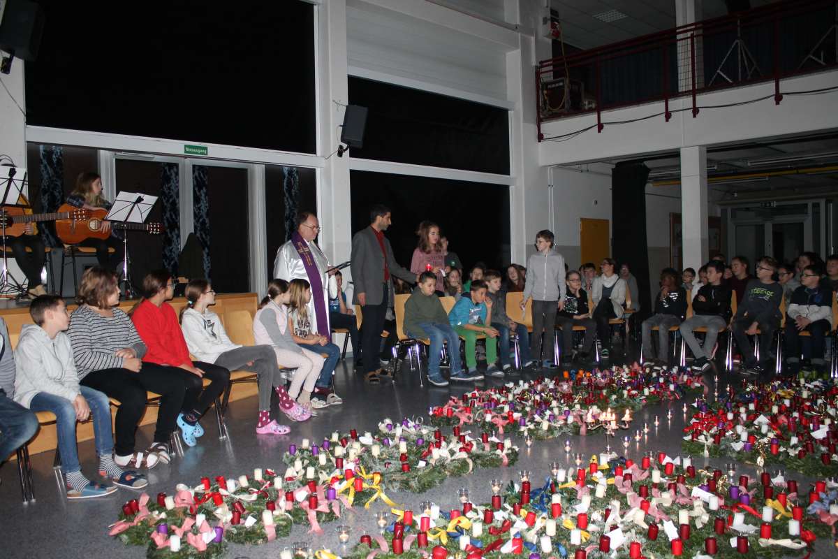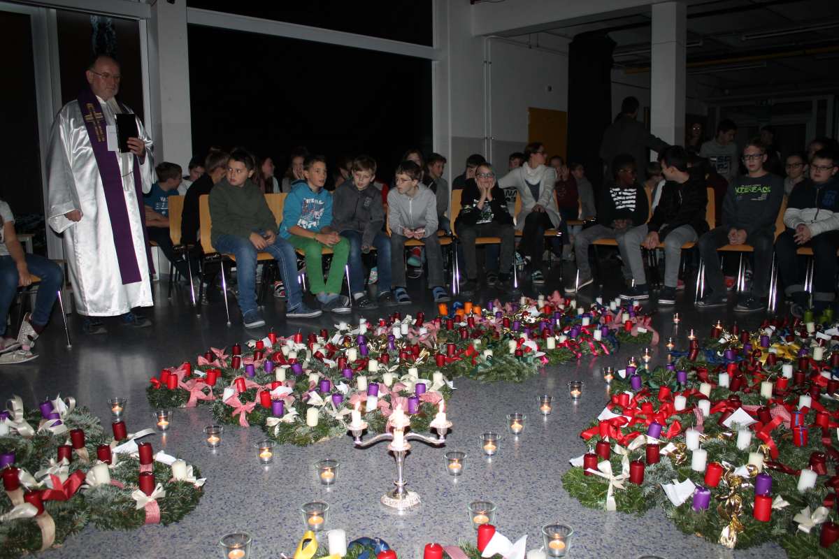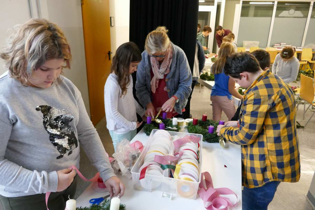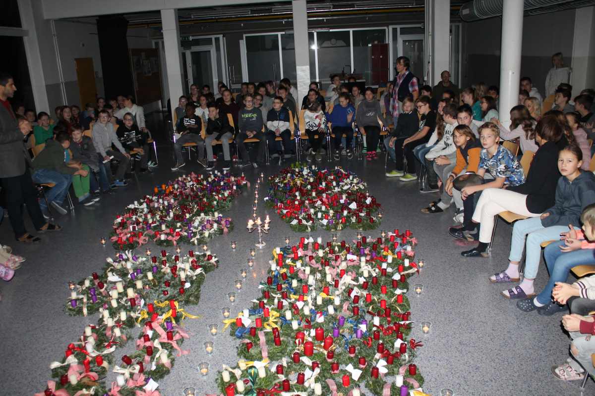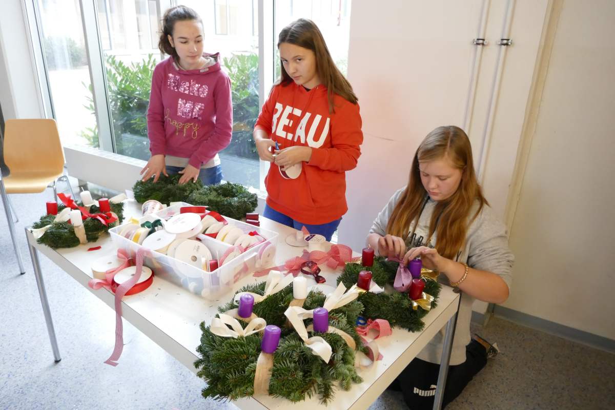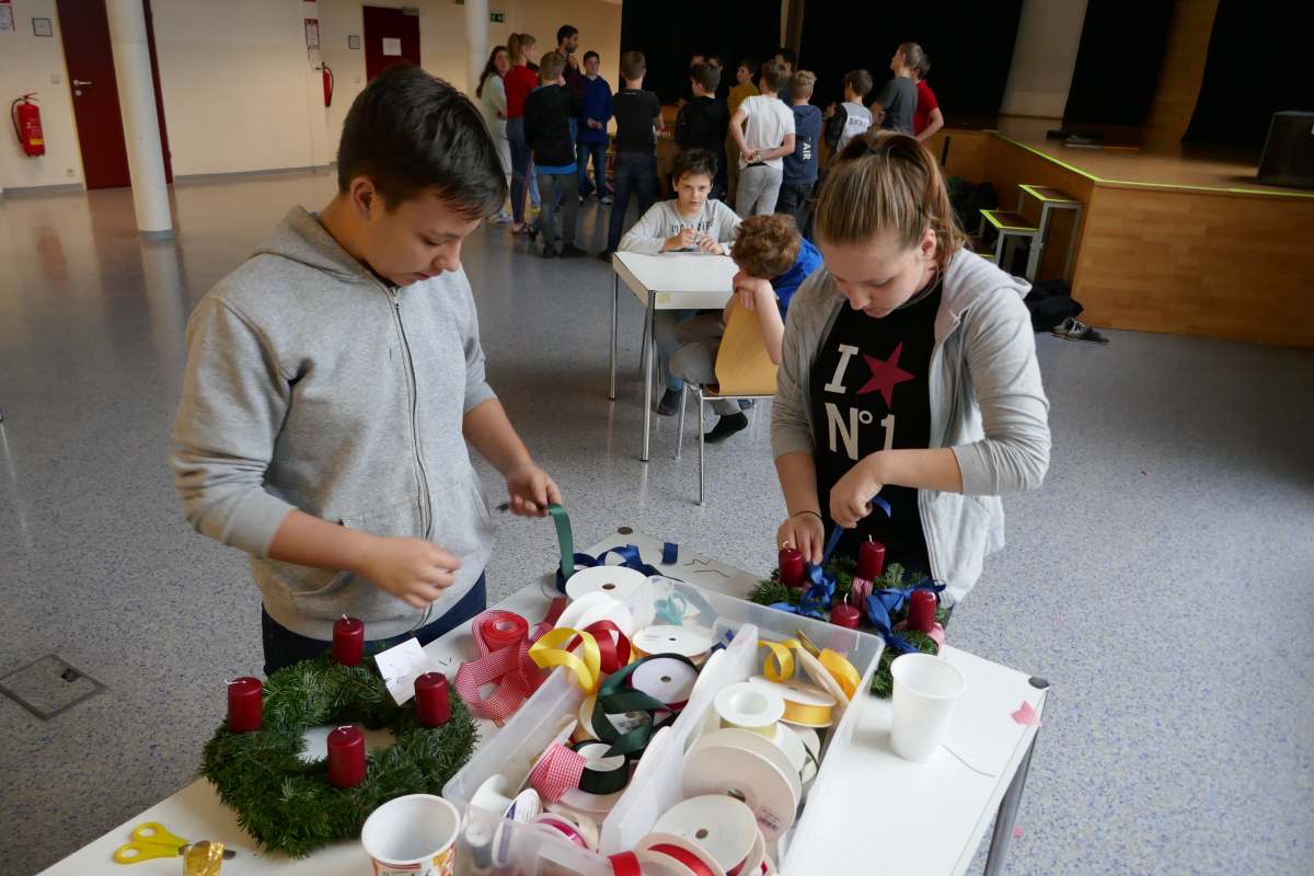 Auch heuer wieder: Thomas Friedl organisierte und leitete das Adventkranzbinden für alle Klassen. Wir bedanken uns sehr bei der Familie Kiebl für die Bereitstellung und Lieferung des dafür notwendigen Reisigs!