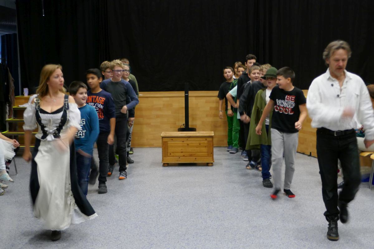 Das Musiktheater Animato lud die zweiten Klassen zu einer besonderen Aufführung ein: "Der Freischütz" - live gesungen und (mit-)gespielt. Höhepunkte dabei: Die Wolfsschluchtszene und der Tanz der Brautjungfern.