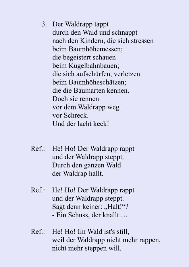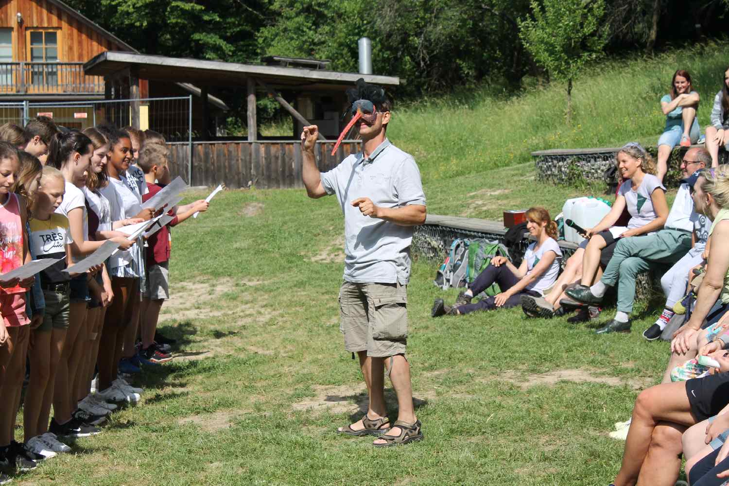 Das Projekt wurde mit einer gemeinsamen Abschlussfeier aller Beteiligten beendet. Unser Beitrag war der Waldrapp-Rap - mit einem (beinahe echten) Waldrapp......