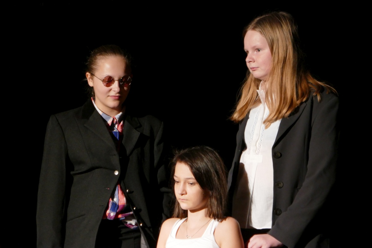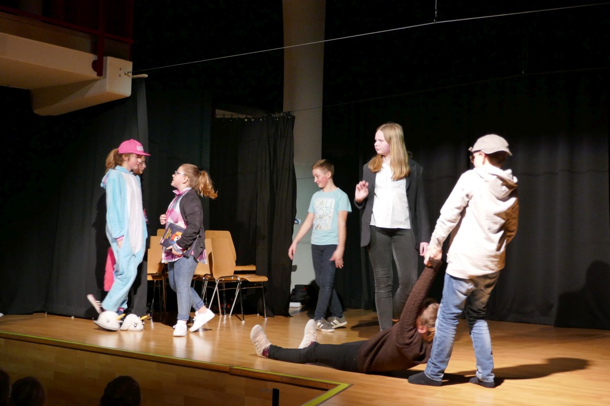 Das Darstellende Spiel der zweiten und dritten Klassen brachte den Krimi "Kommissarin X und der Rächer" zur Aufführung. Unterstützt wurden die Schauspieler dabei von unserer Schulband und unseren Ton- und Lichttechnikern und - natürlich - von Thomas Koller. Für das abschließende Buffet sorgten Eltern der 4b. Ein herzliches "Danke" an alle Mitwirkenden!