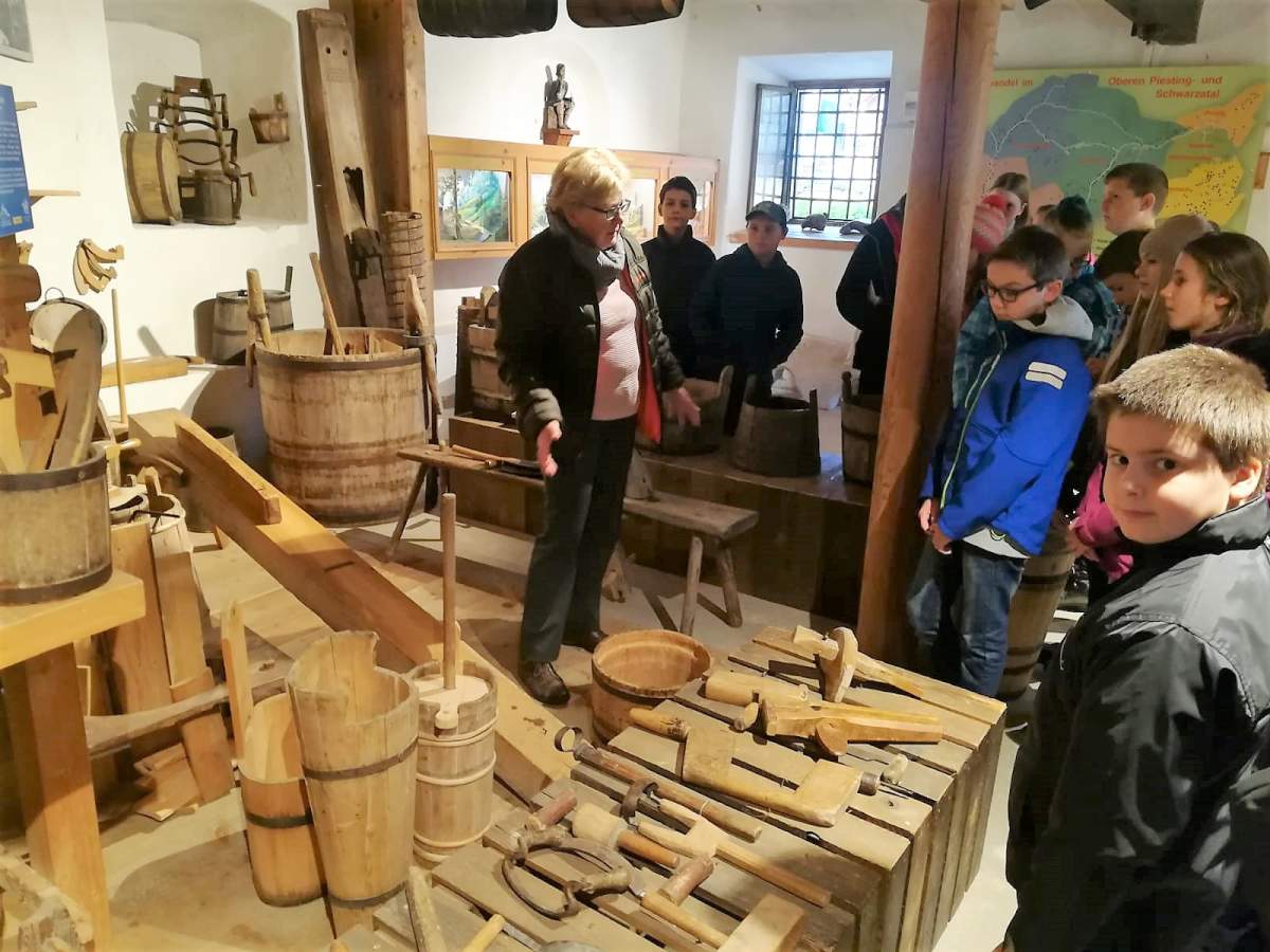 Unsere zweiten Klassen besuchten im Rahmen ihres Projekts "Wald" das Holzfällermuseum in Gutenstein und unternahmen dort auch eine kleine Wanderung auf den Mariahilferberg mit seiner Wallfahrtskirche.