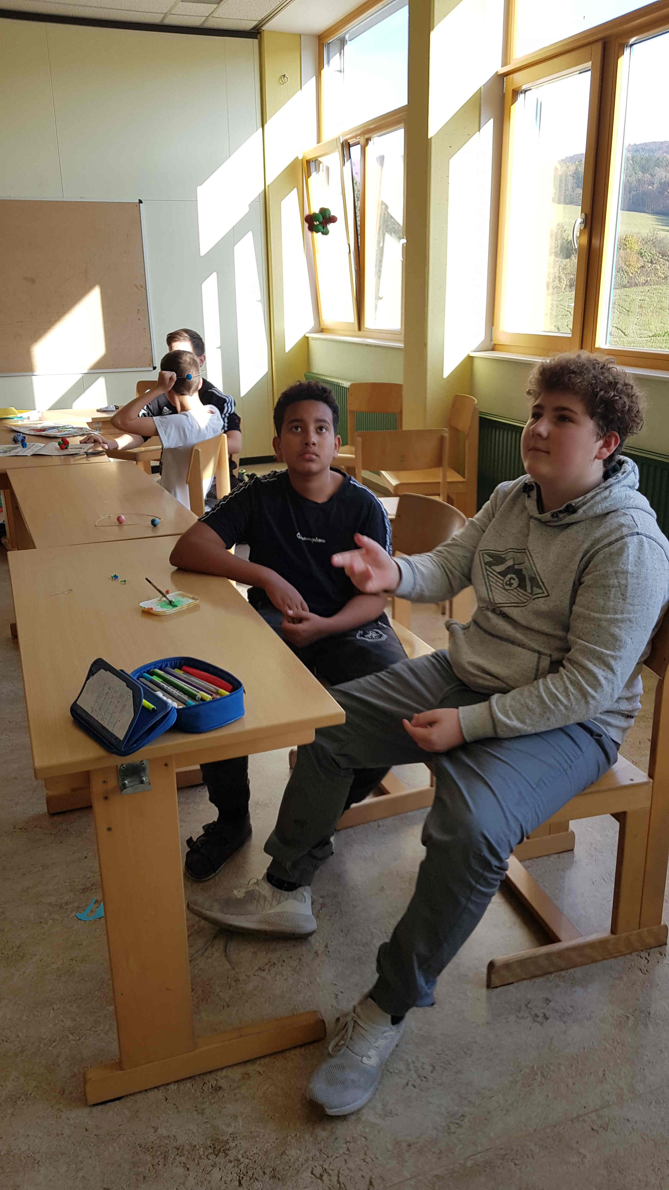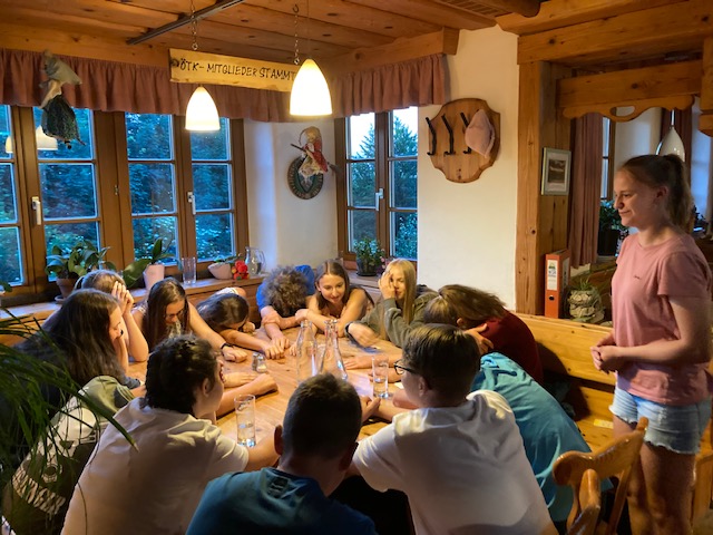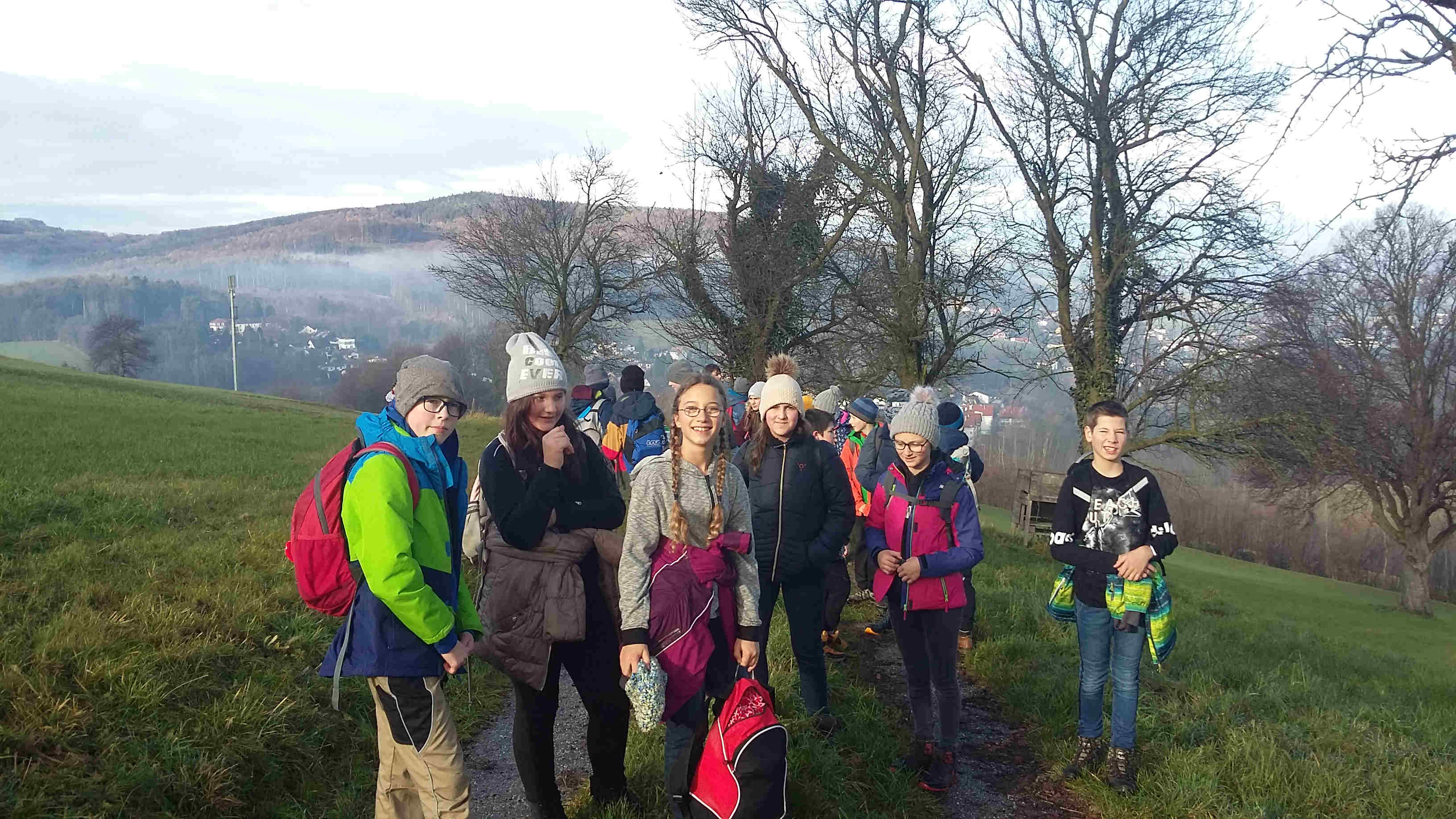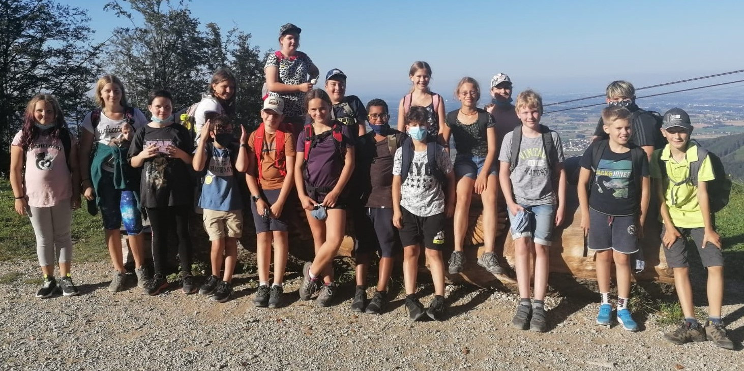 Dabei wurden von den Kids selbsterstellte Dialoge kreativ im Schattenspiel in Szene gesetzt, aus gesammelten Naturmaterialien schöne Türkränze gebunden und in einem WORD-Dokument ihr Wissen über die „Stockwerke des Waldes“ zusammengefasst. Am Freitag wurde bei schönstem Herbstwetter eine Wanderung zum Trainster Hochkreuz gemacht.