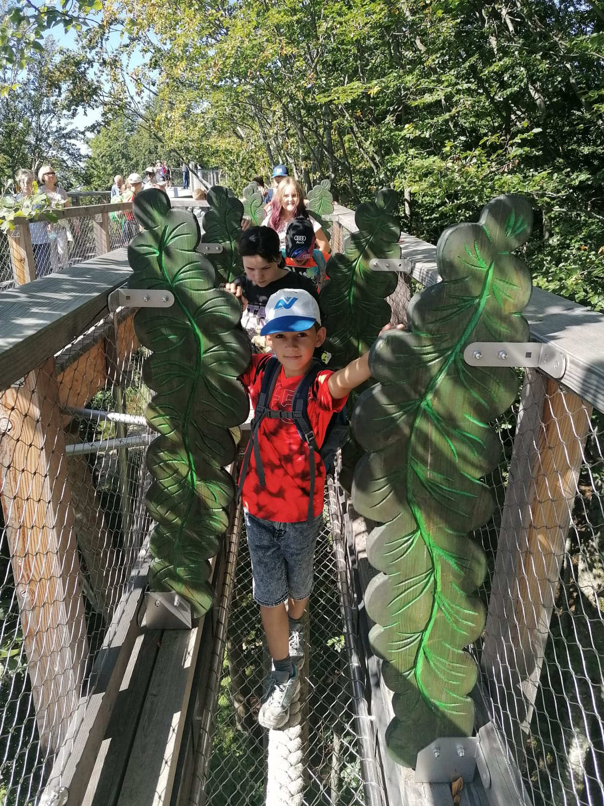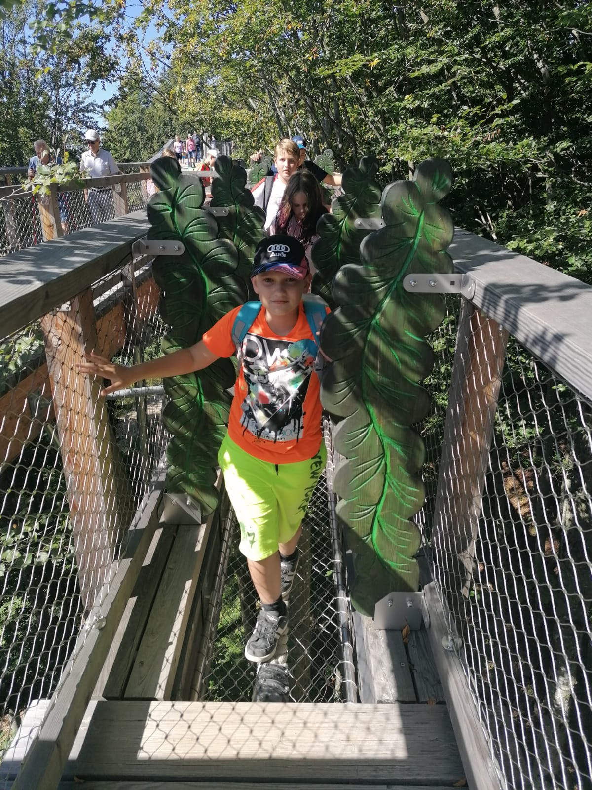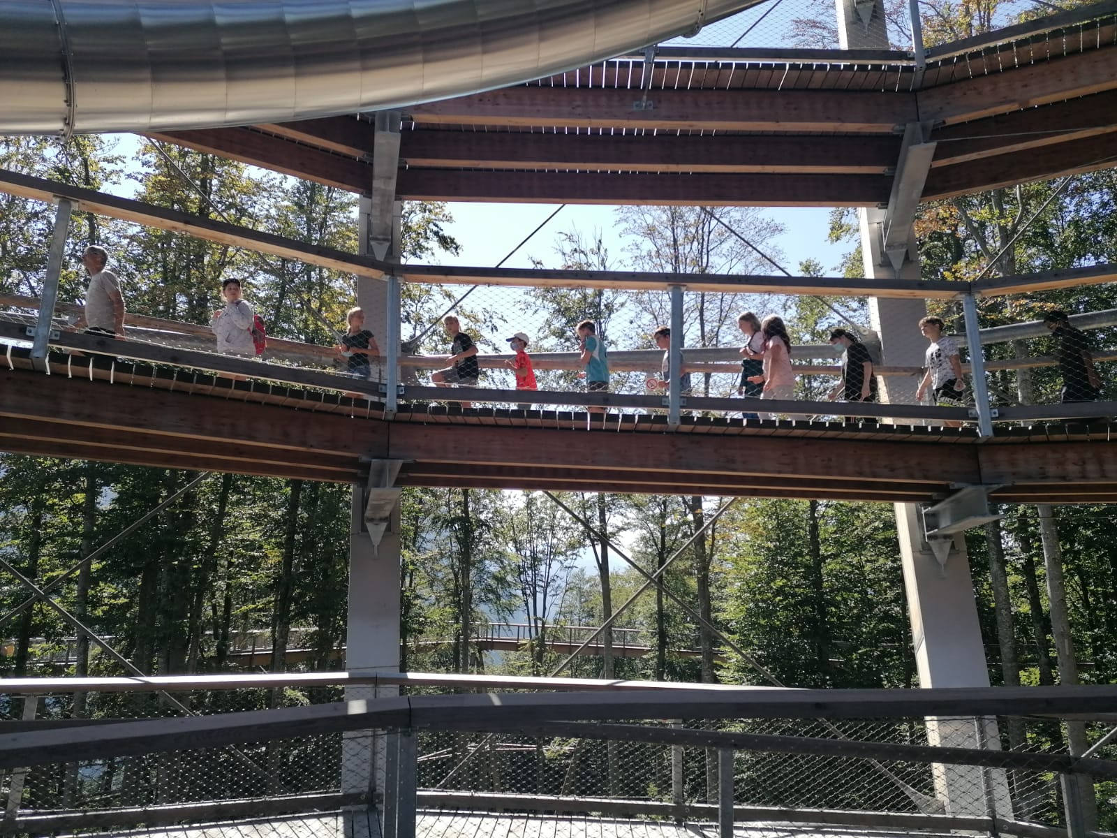Dabei wurden von den Kids selbsterstellte Dialoge kreativ im Schattenspiel in Szene gesetzt, aus gesammelten Naturmaterialien schöne Türkränze gebunden und in einem WORD-Dokument ihr Wissen über die „Stockwerke des Waldes“ zusammengefasst. Am Freitag wurde bei schönstem Herbstwetter eine Wanderung zum Trainster Hochkreuz gemacht.