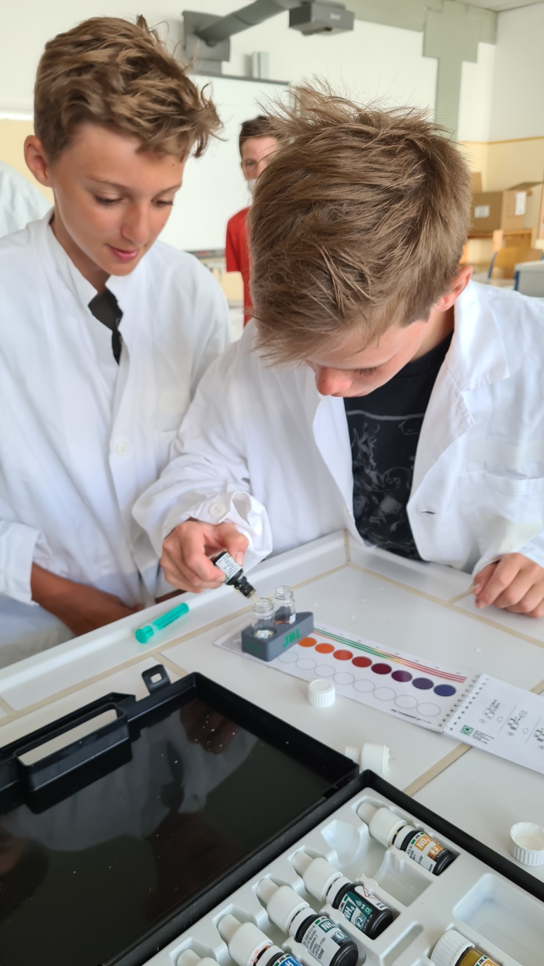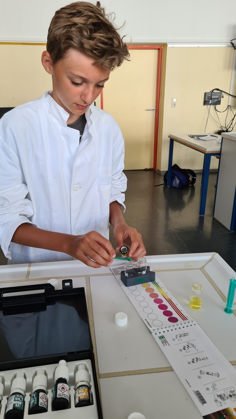Aufgabe war, den Bach, der direkt bei unserer Schule fließt, und andere Gewässer in der Nähe zu untersuchen und herauszufinden, wie sauber diese Gewässer sind. Dafür nutzten die Schülerinnen und Schüler diverse naturwissenschaftliche Techniken, wie zum Beispiel Untersuchung der Zeigerorganismen und chemische Analysen mittels Indikatoren.