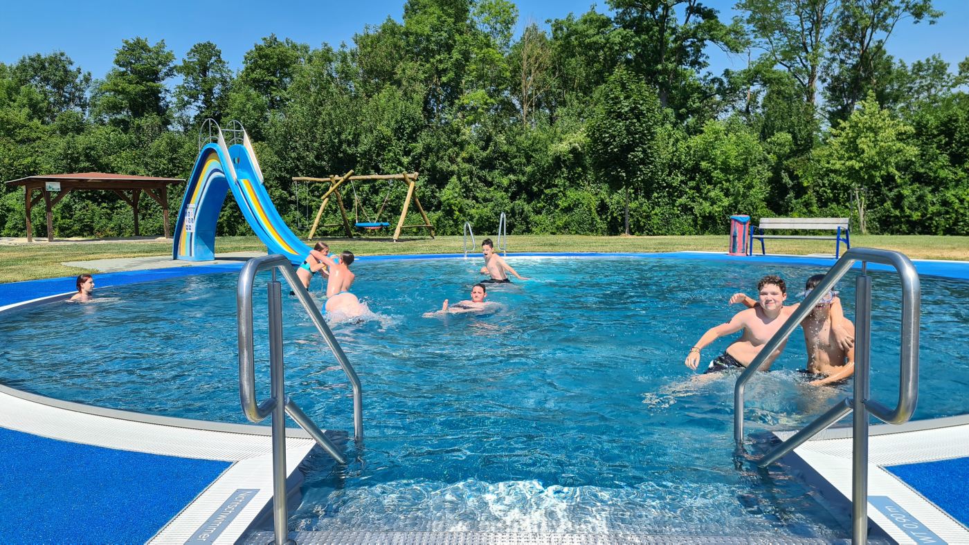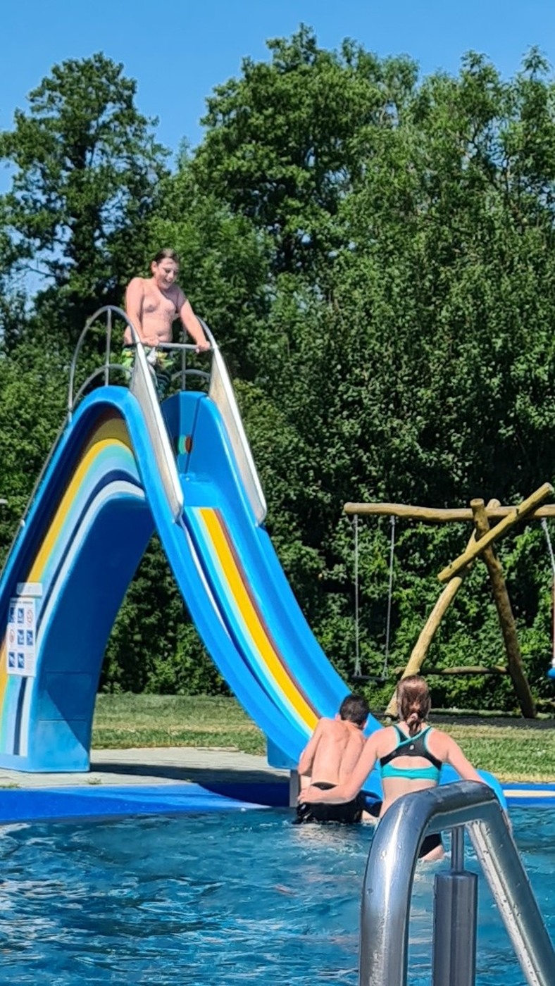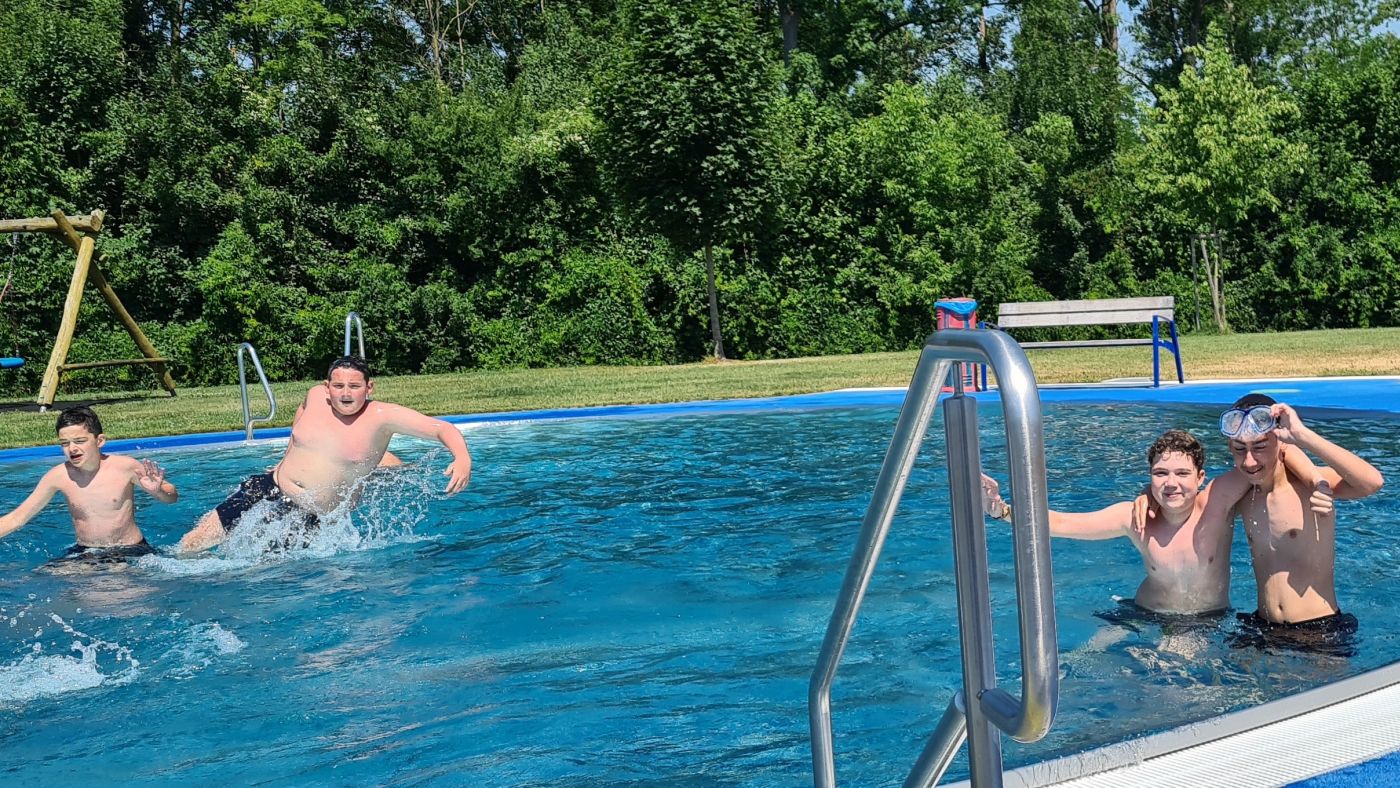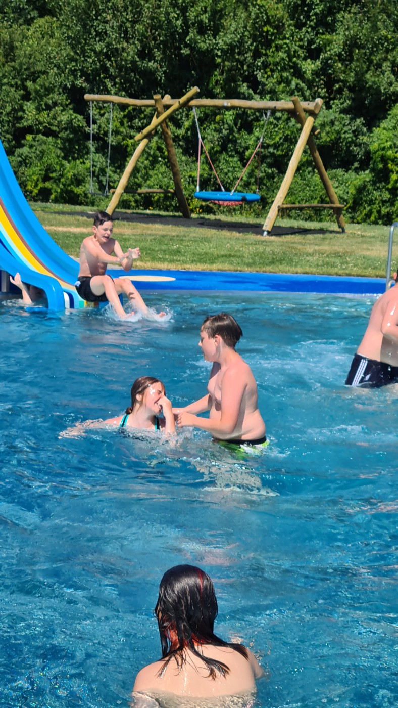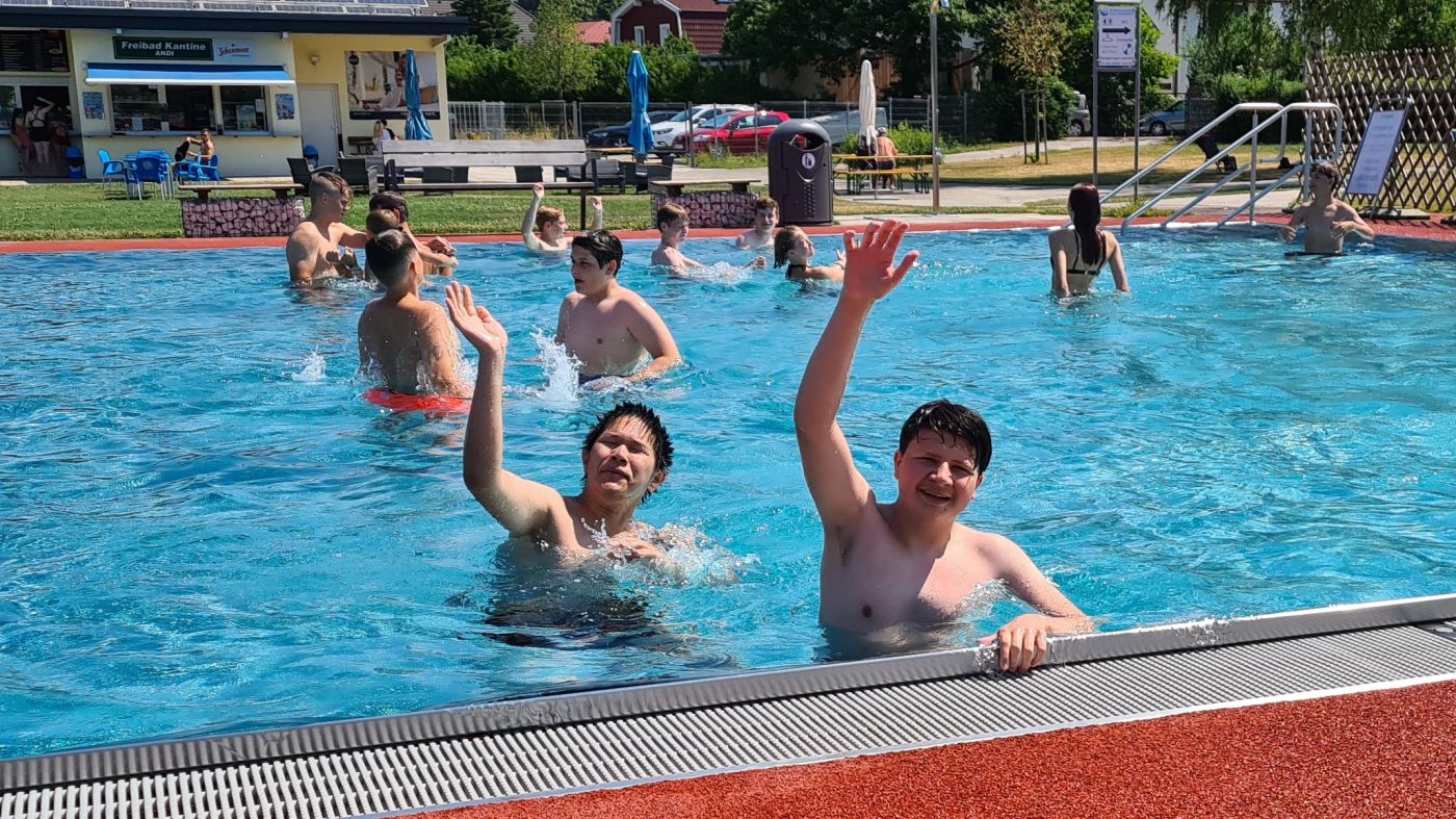 Zuerst galt es fleißig Rad zu fahren, um anschließend im Schwimmbad sich abkühlen zu können.