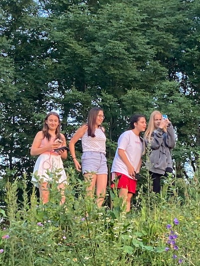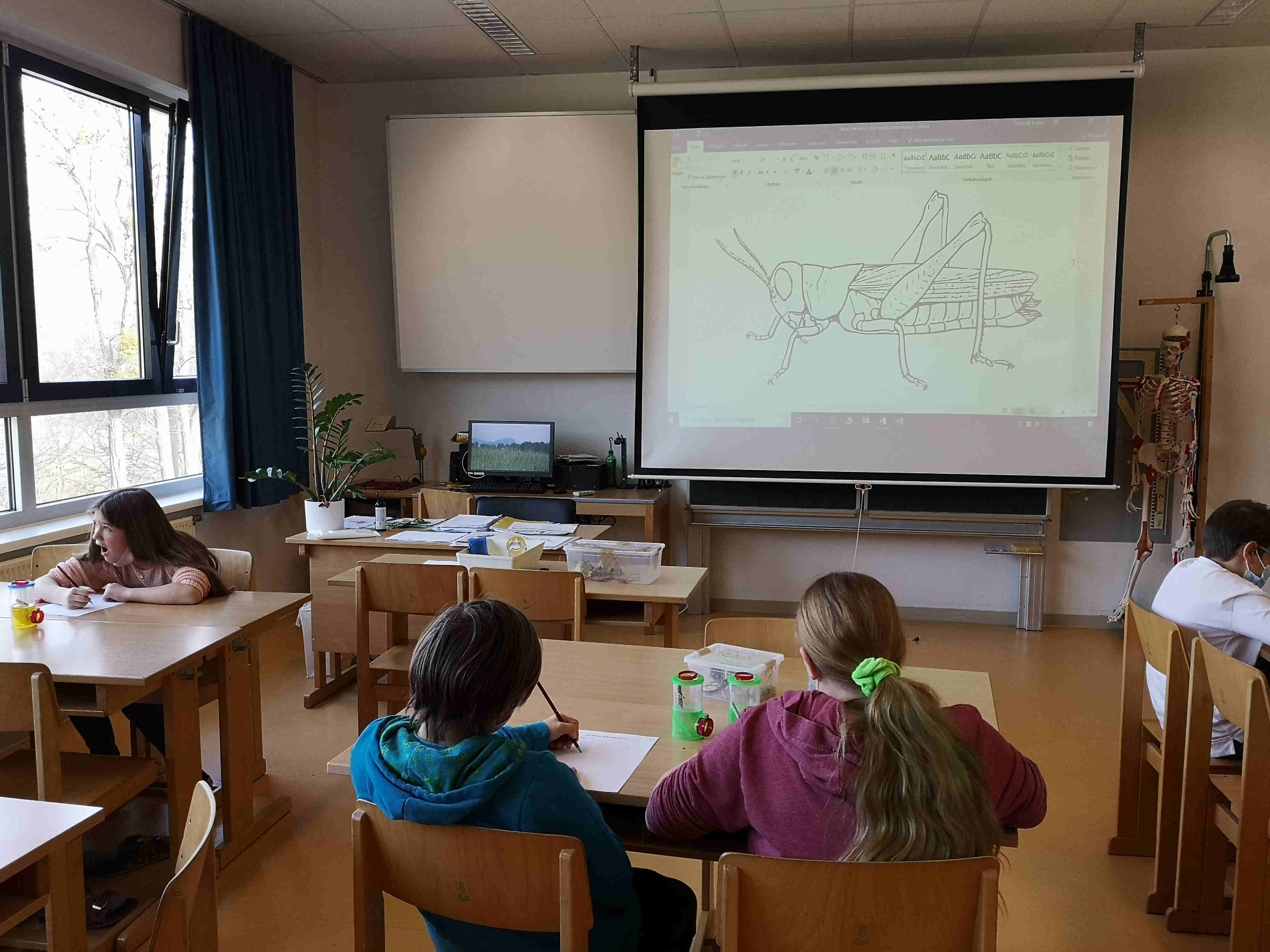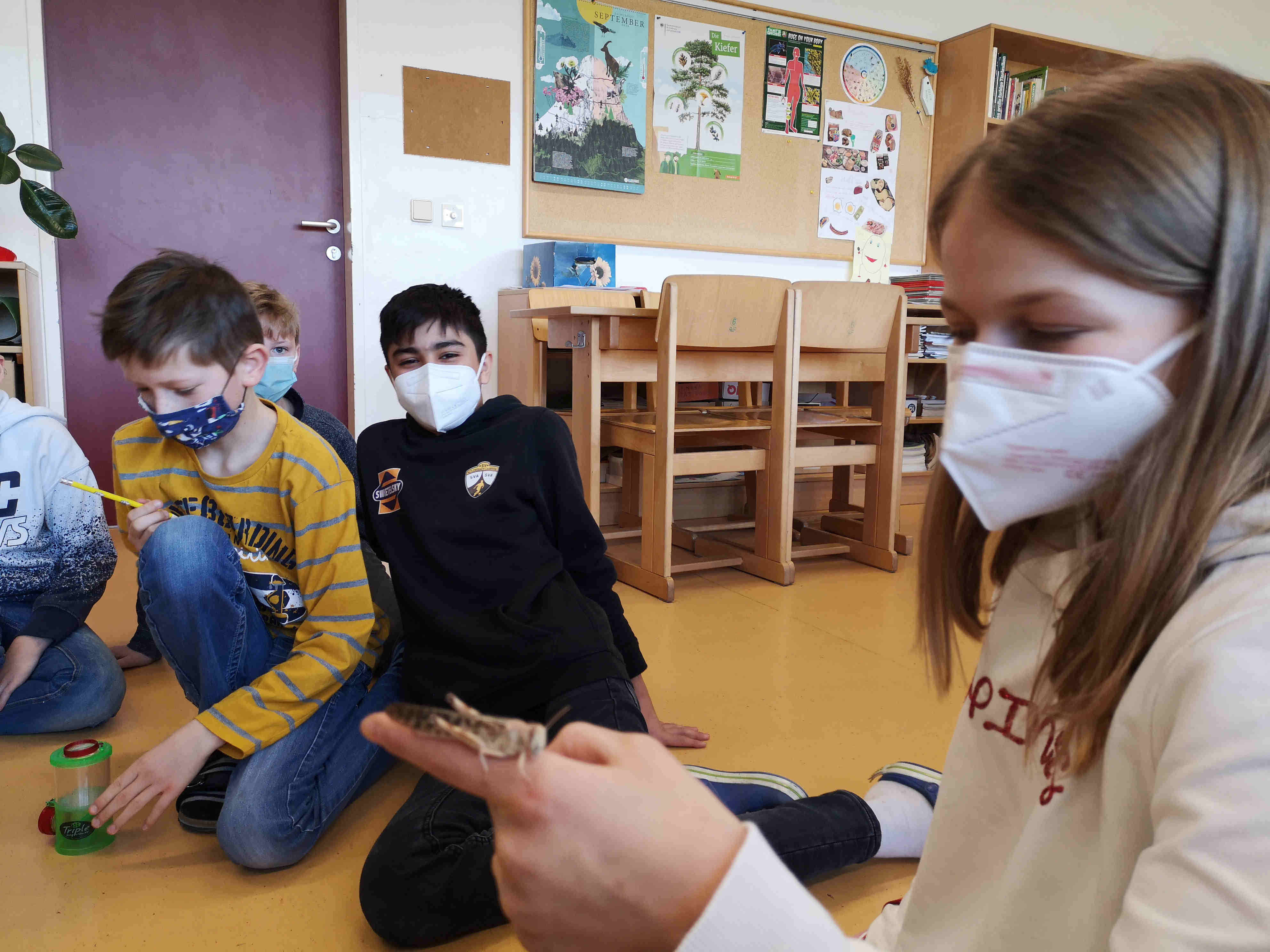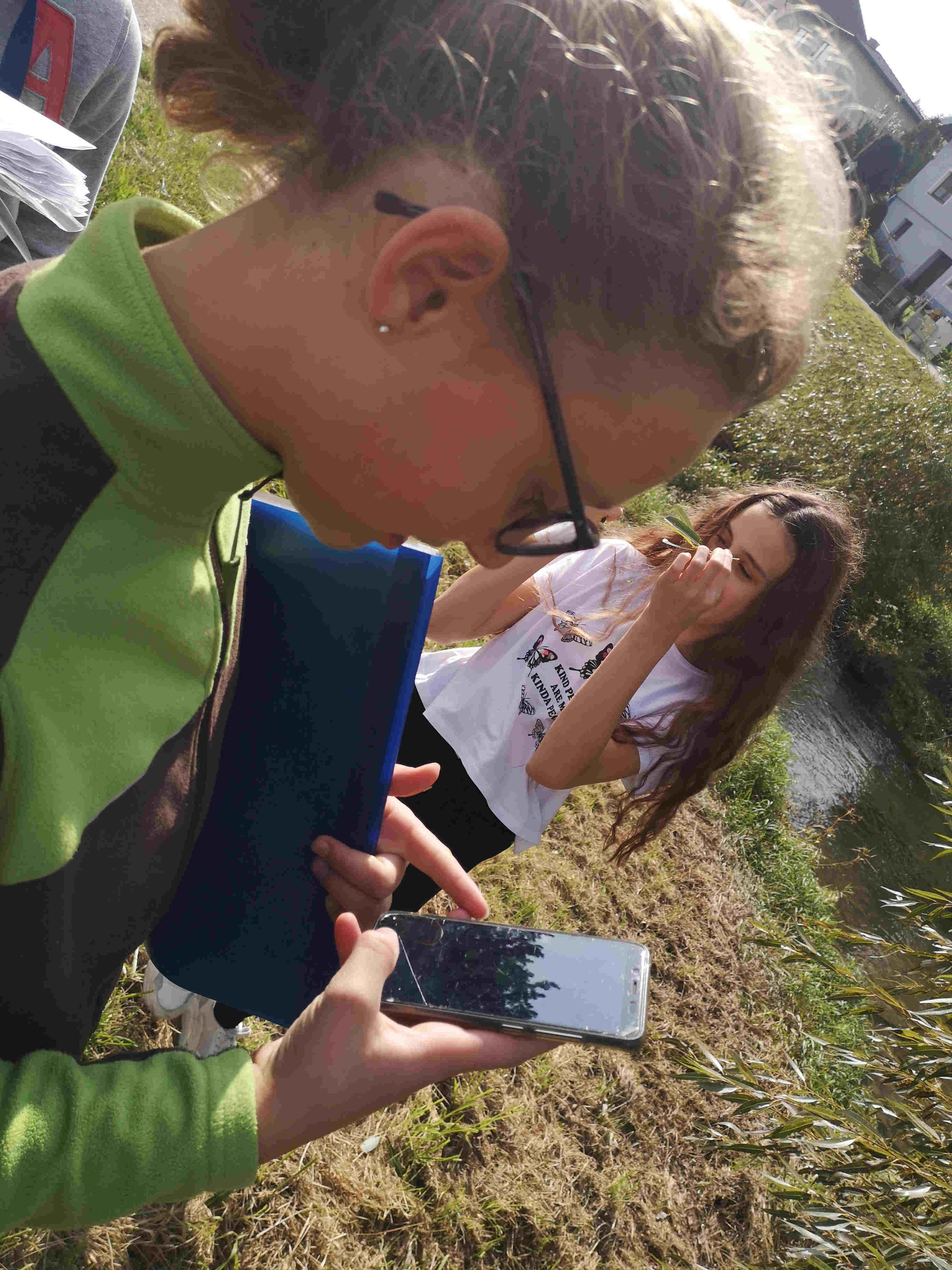 Das schöne Wetter lockte die Schülerinnen und Schüler mit ihrer Lehrerin im Biologieunterricht aus dem Klassenzimmer ins Freie.