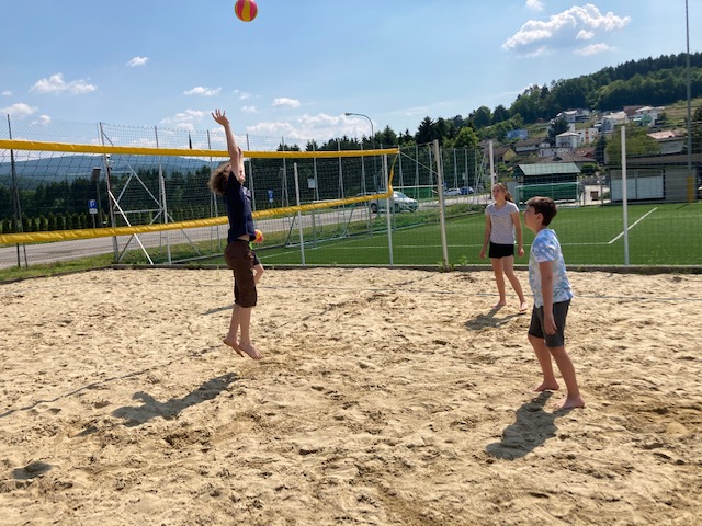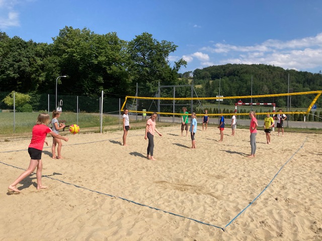 Das schöne Wetter hat es uns auch ermöglicht, den schuleigenen Beach-Volleyballplatz ausgiebig zu nützen – im Sand macht das Spielen gleich doppelt so viel Spaß.