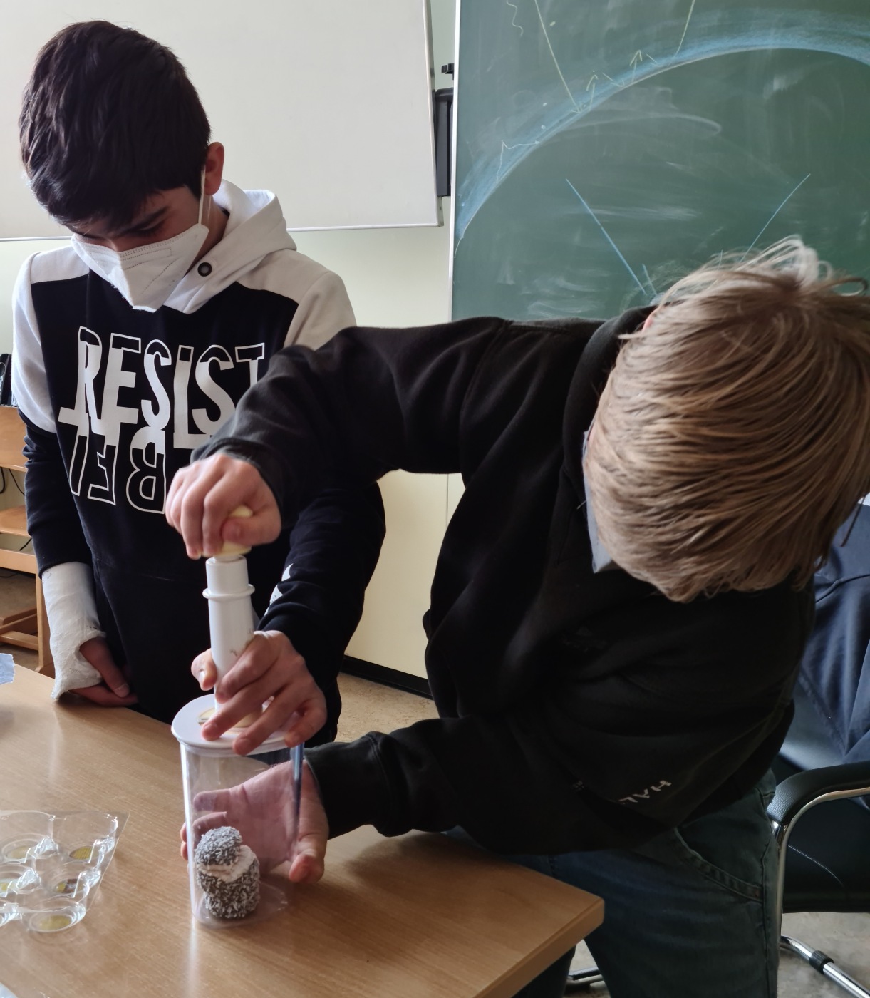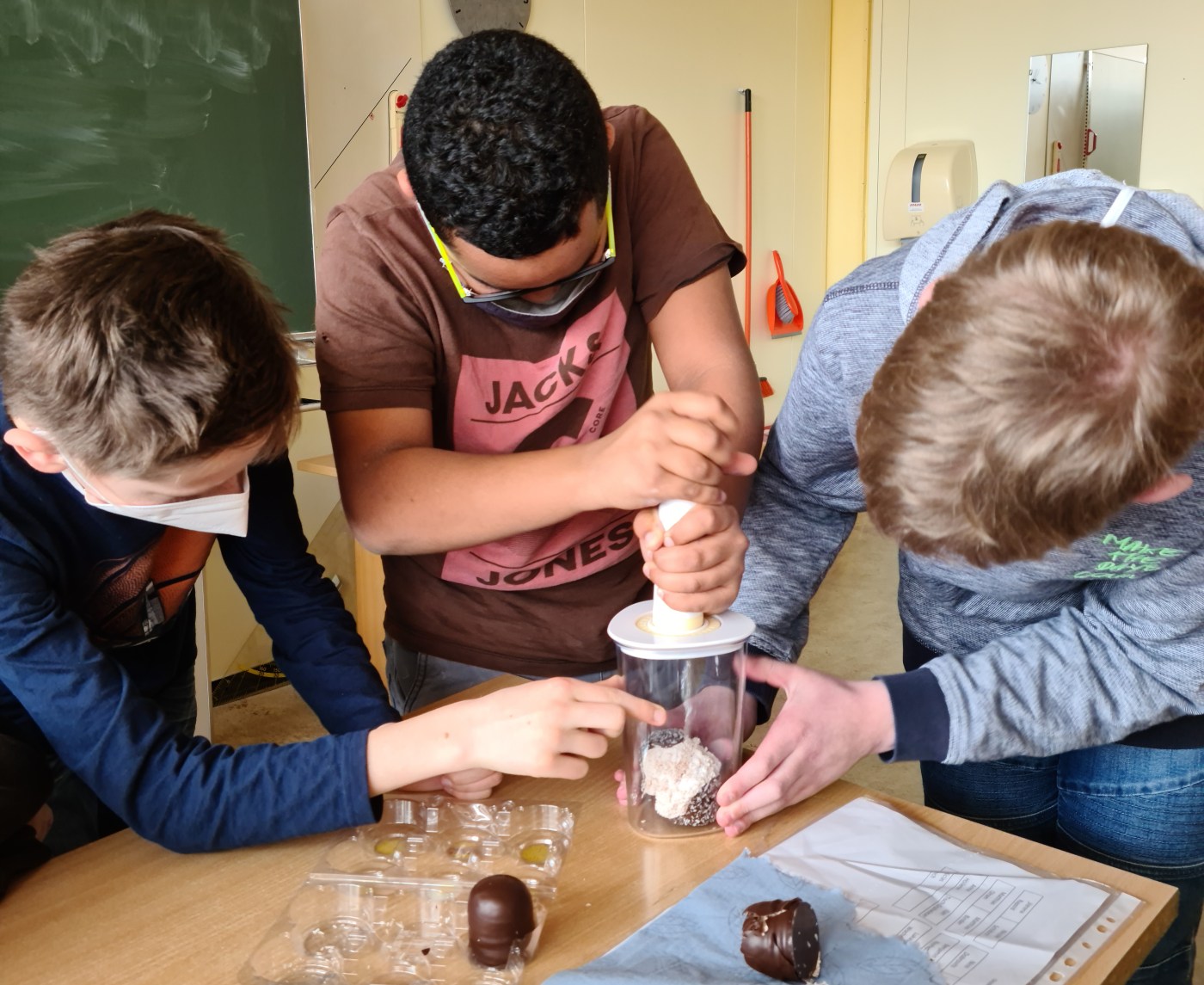 Schülerinnen und Schüler der zweiten Klassen machten in Physik einen anstrengenden aber dafür spannenden und auch wohlschmeckenden Versuch.