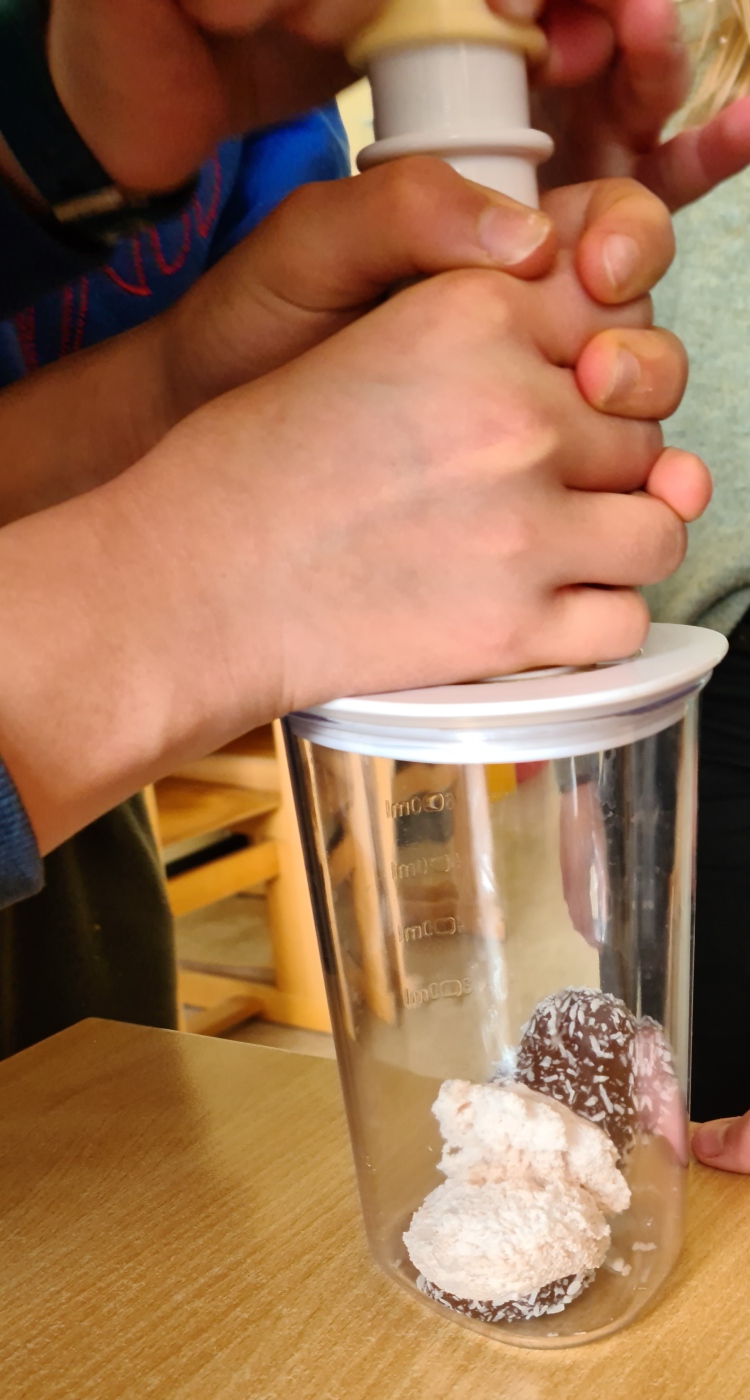 Sie entzogen aus einem Gefäß mittels einer Vakuumpumpe den Luftdruck und beobachteten, wie sich der Inhalt verändert. Natürlich wurde der "Inhalt" anschließend gegessen. Wir wollten ja nichts verschwenden!