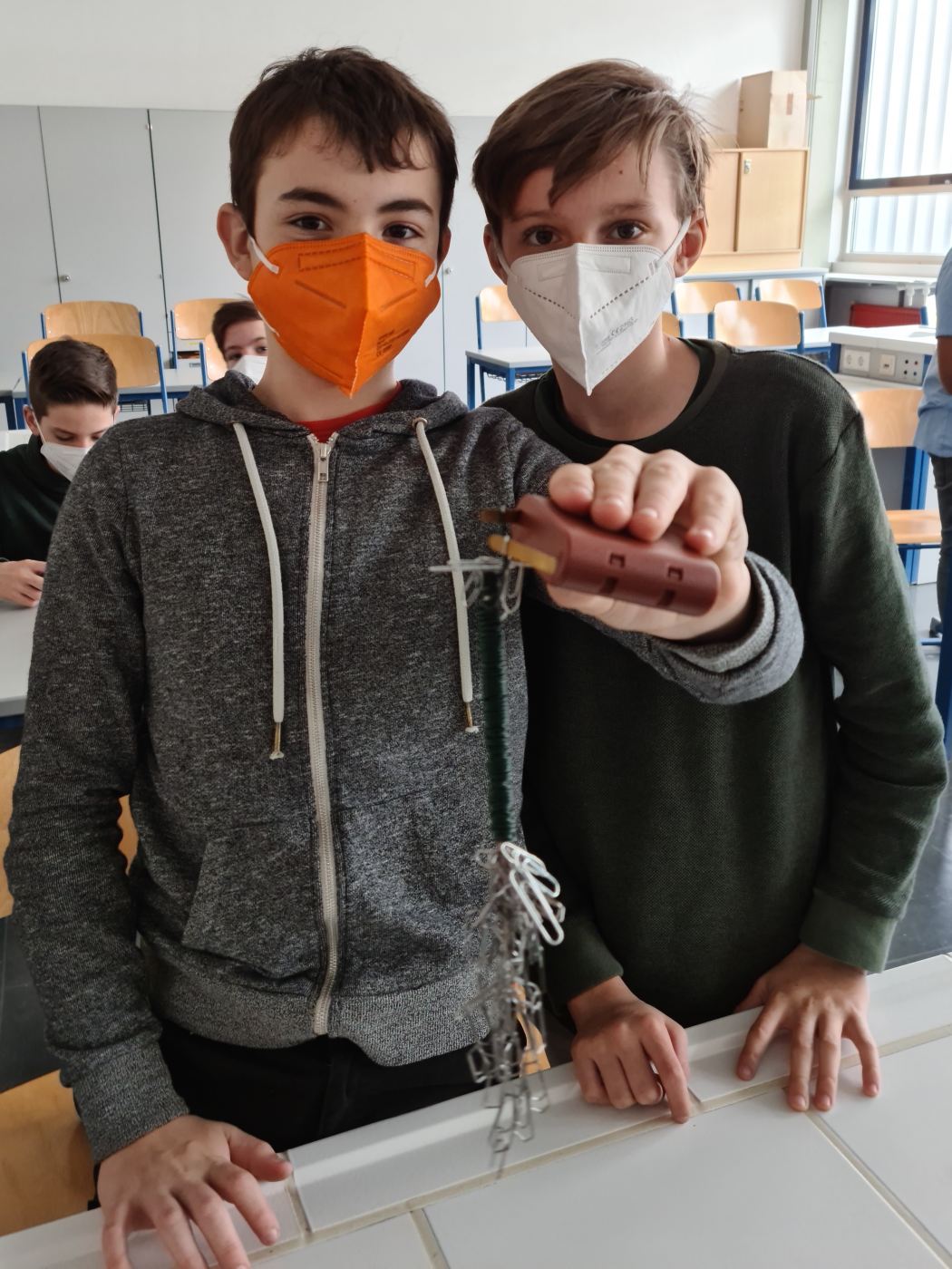 Im Anschluss gab es einen Wettbewerb, wessen Elektromagnet der stärkste geworden ist, also die meisten Büroklammern anziehen kann.