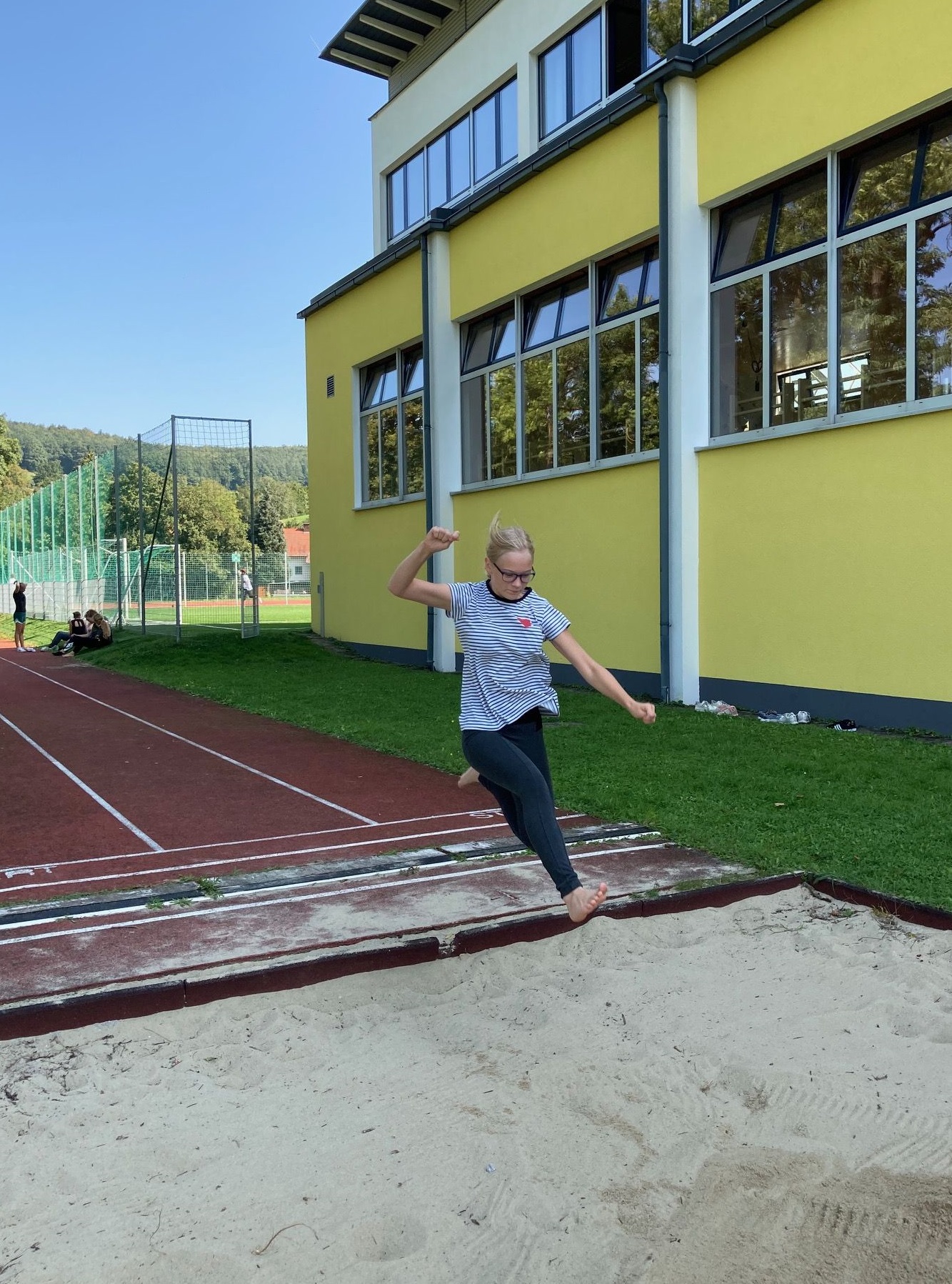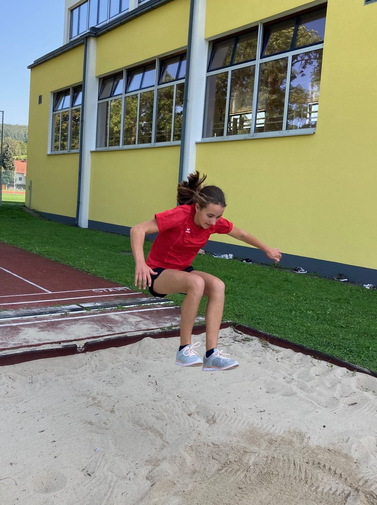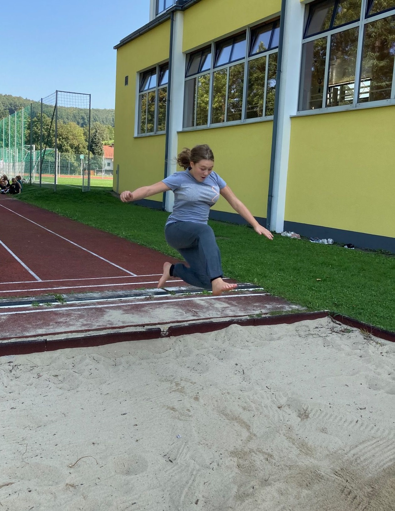 Die Mädchen der vierten Klassen zeigten in der letzten Turnstunde ihre erstaunlichen Sprungfähigkeiten. Nicht nur, dass Sport gesund ist, im Freien macht es auch viel mehr Spaß!
