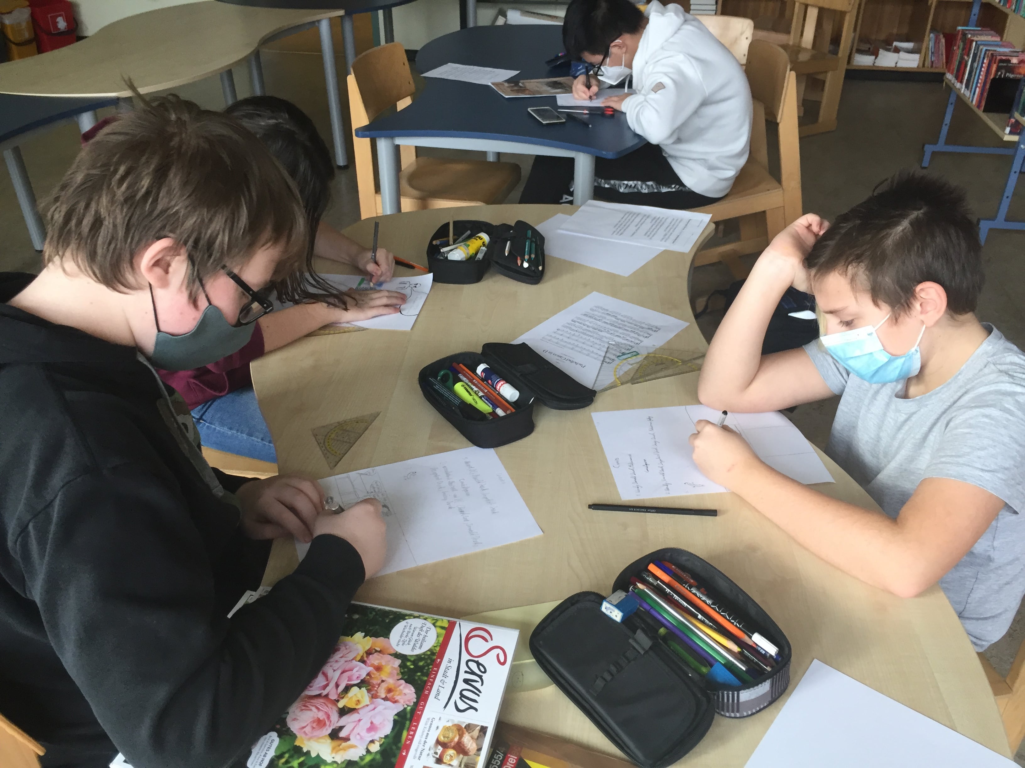 Damit den Kids der dritten Klassen nicht die Decke auf den Kopf fällt, machten sie eine unglaubliche Reise – dies natürlich mit Hilfe ihrer Fantasie und ohne ihr Zimmer dafür verlassen zu müssen! In Biologie recherchierten die Schülerinnen und Schüler zum Thema Erdzeitalter, wie es zu verschiedenen Zeiten auf unserer Erde aussah und welche Pflanzen und Tiere damals lebten. Mit all dem Wissen reisten die Kinder in ihrer Fantasie nicht nur an exotische Orte sondern auch in eine andere Zeit und erlebten mit außergewöhnlichen Tieren spannende Geschichten.