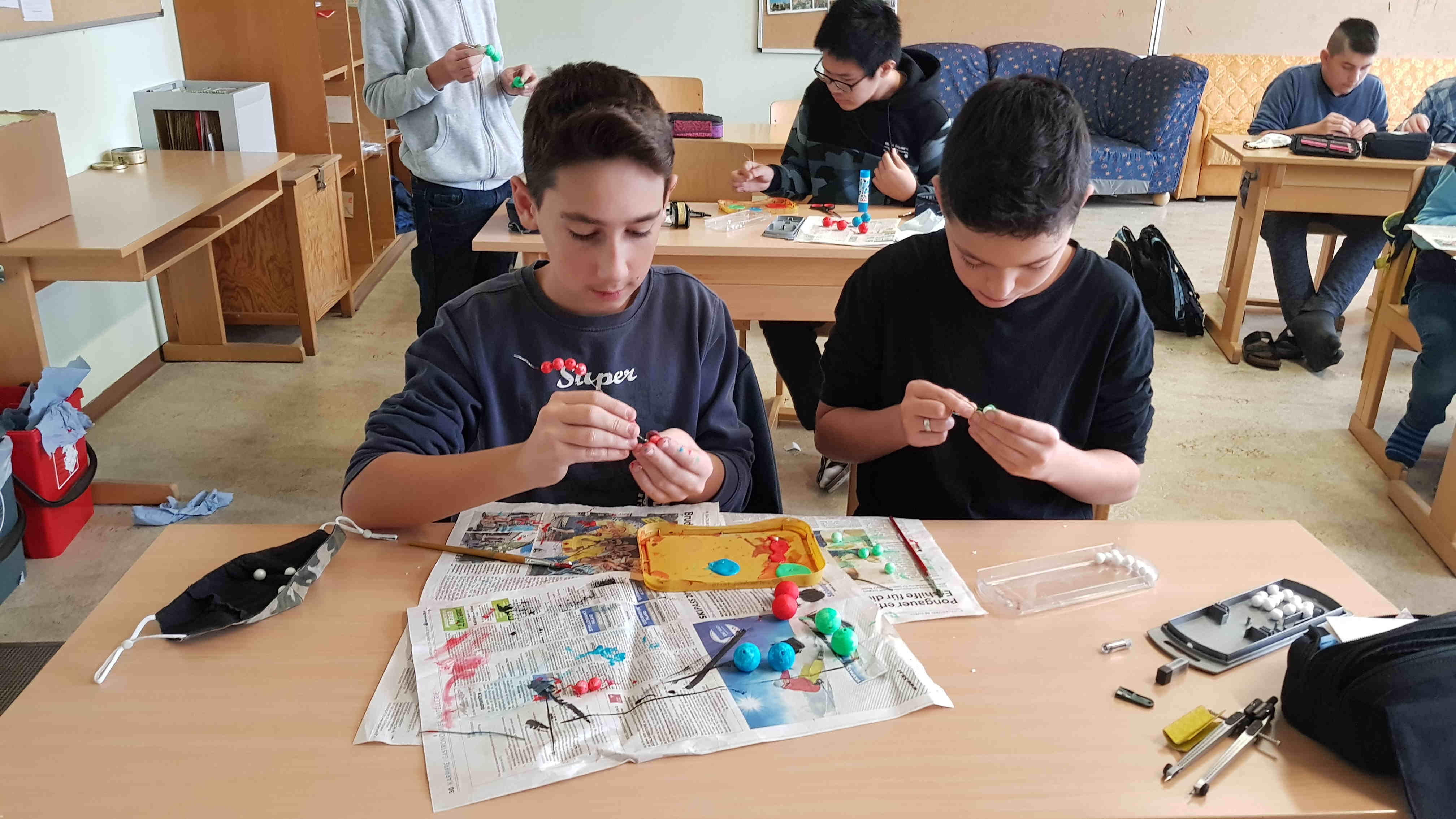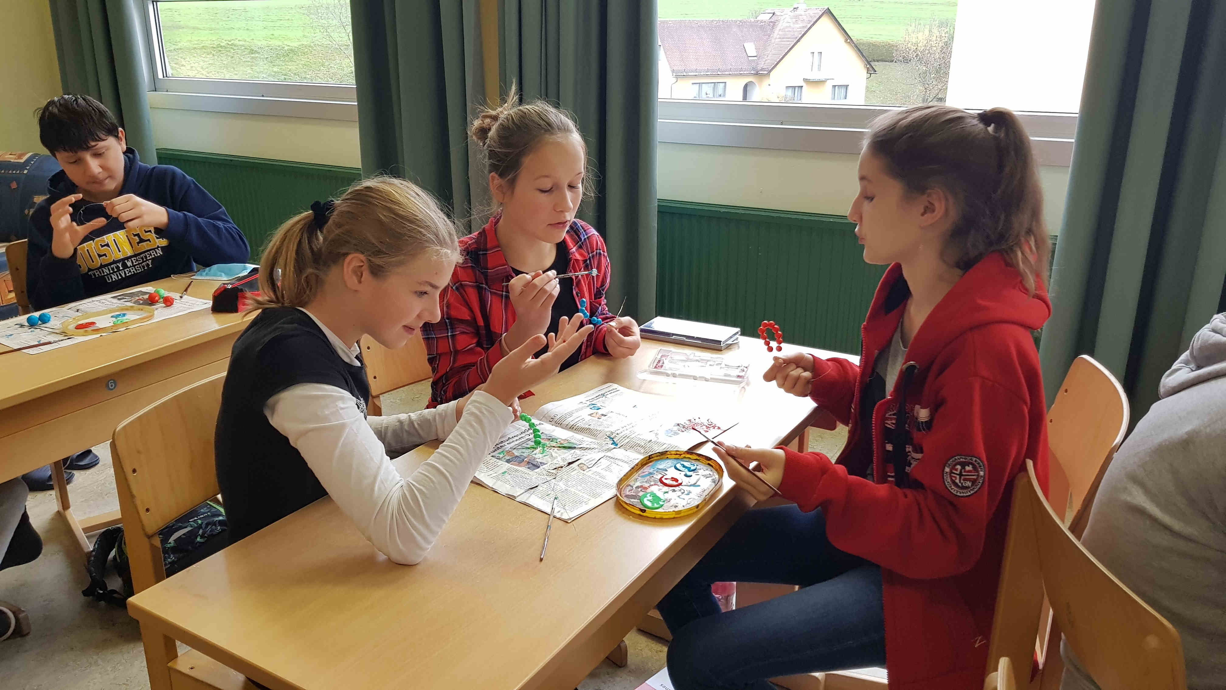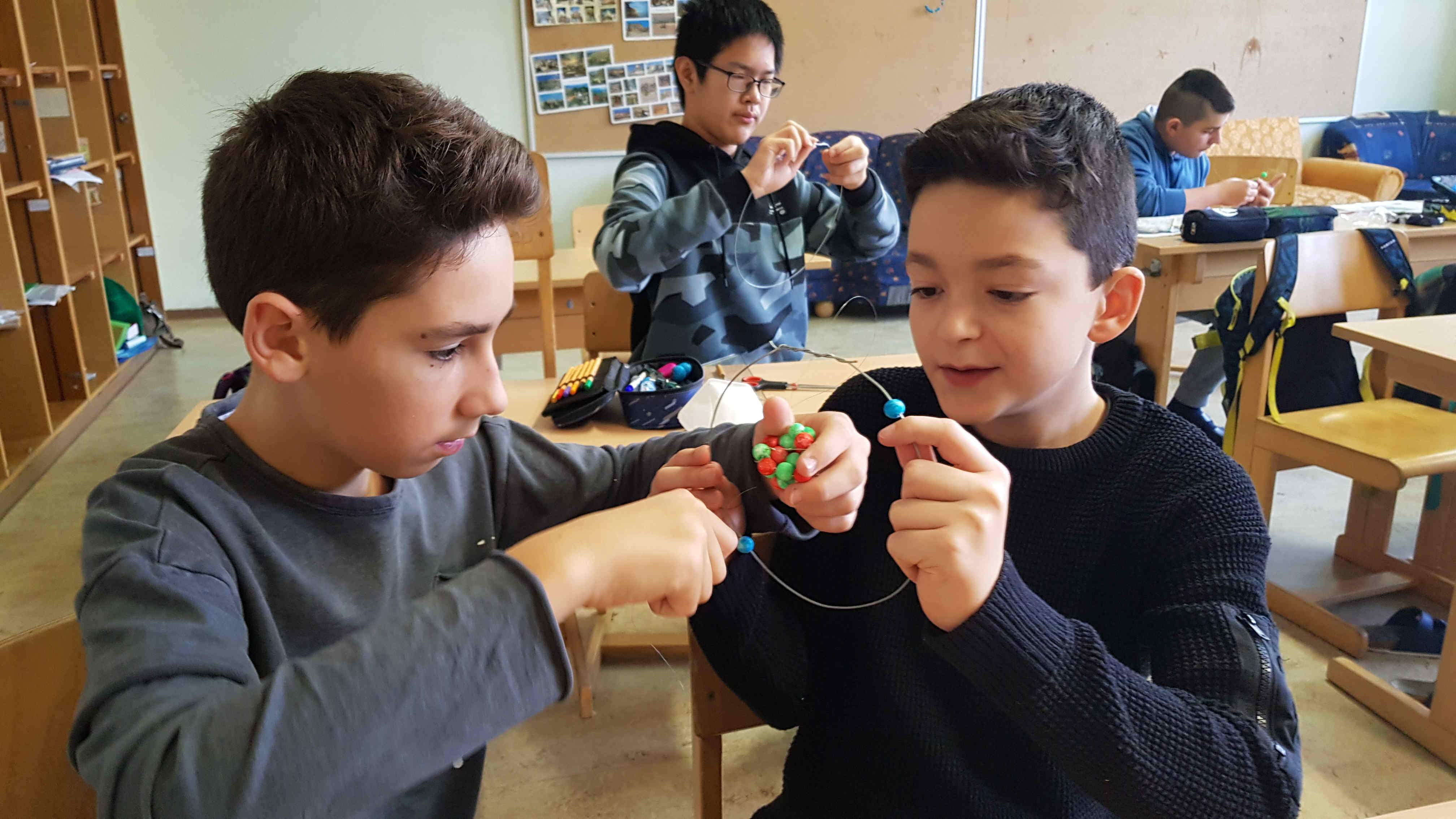Nachdem die Kids erfahren haben, wie ein Atom und die verschiedenen Elemente aufgebaut sind, bauten sie Modelle von Atomen selber - interessant und kreativ zugleich!