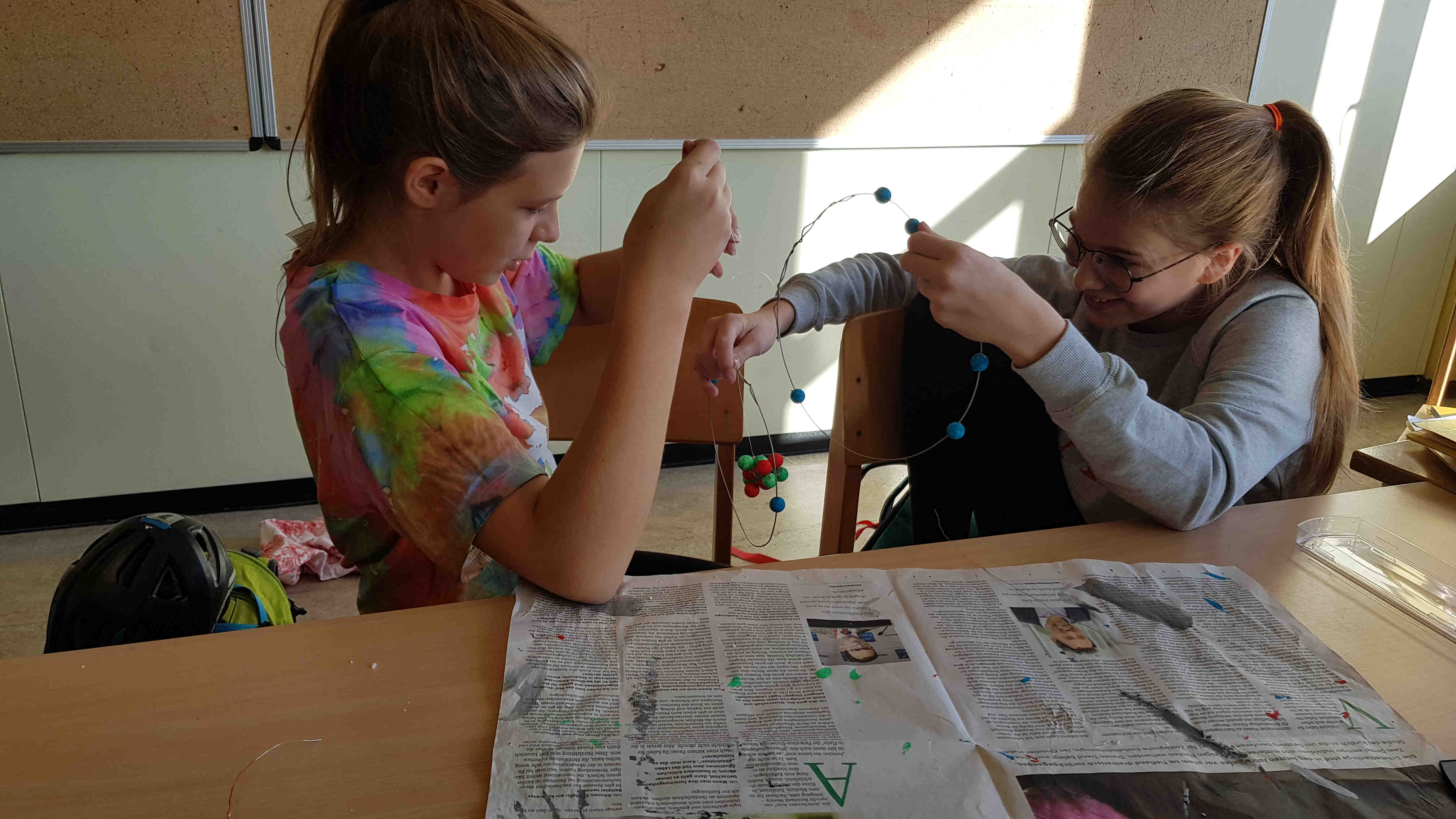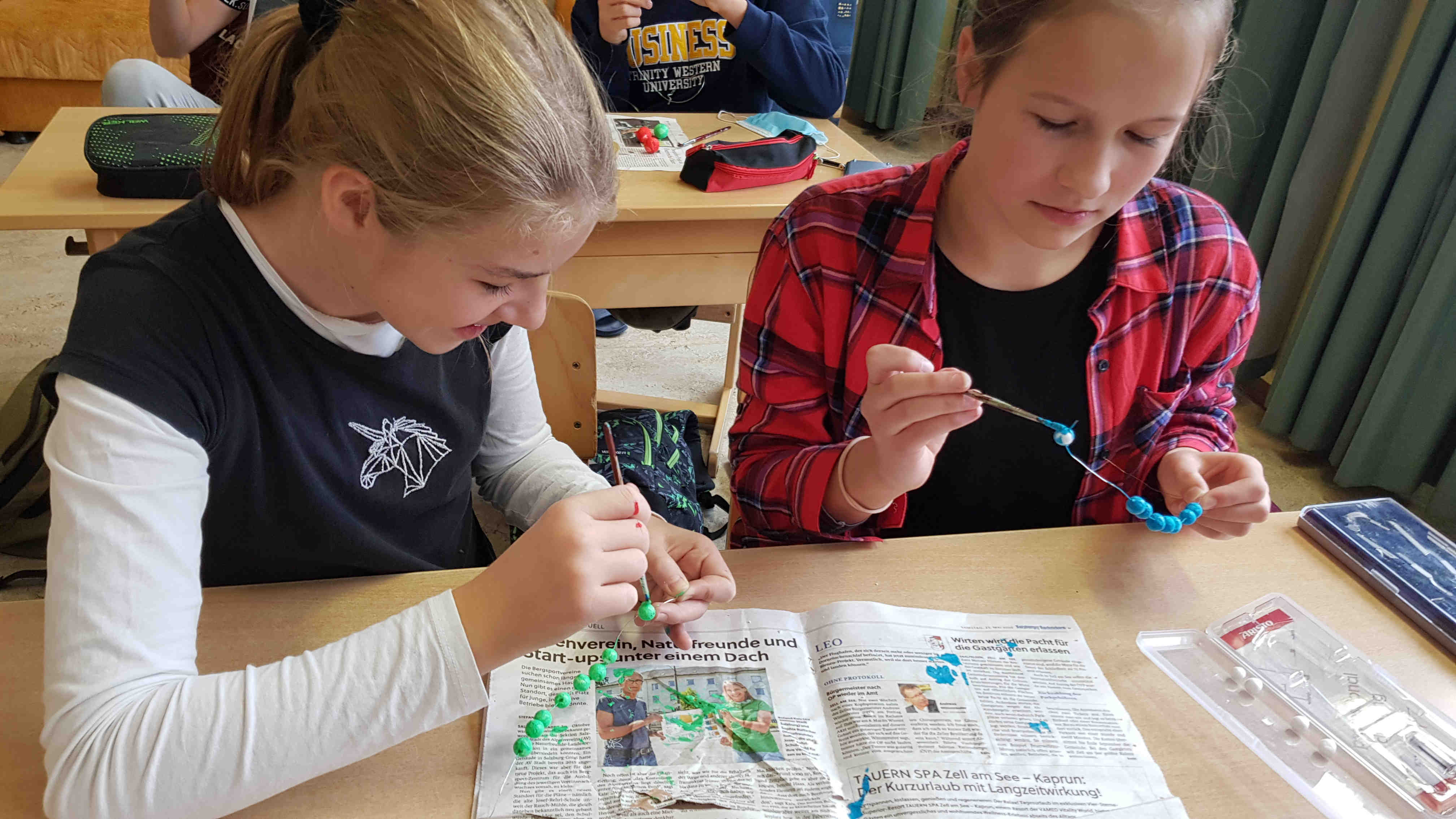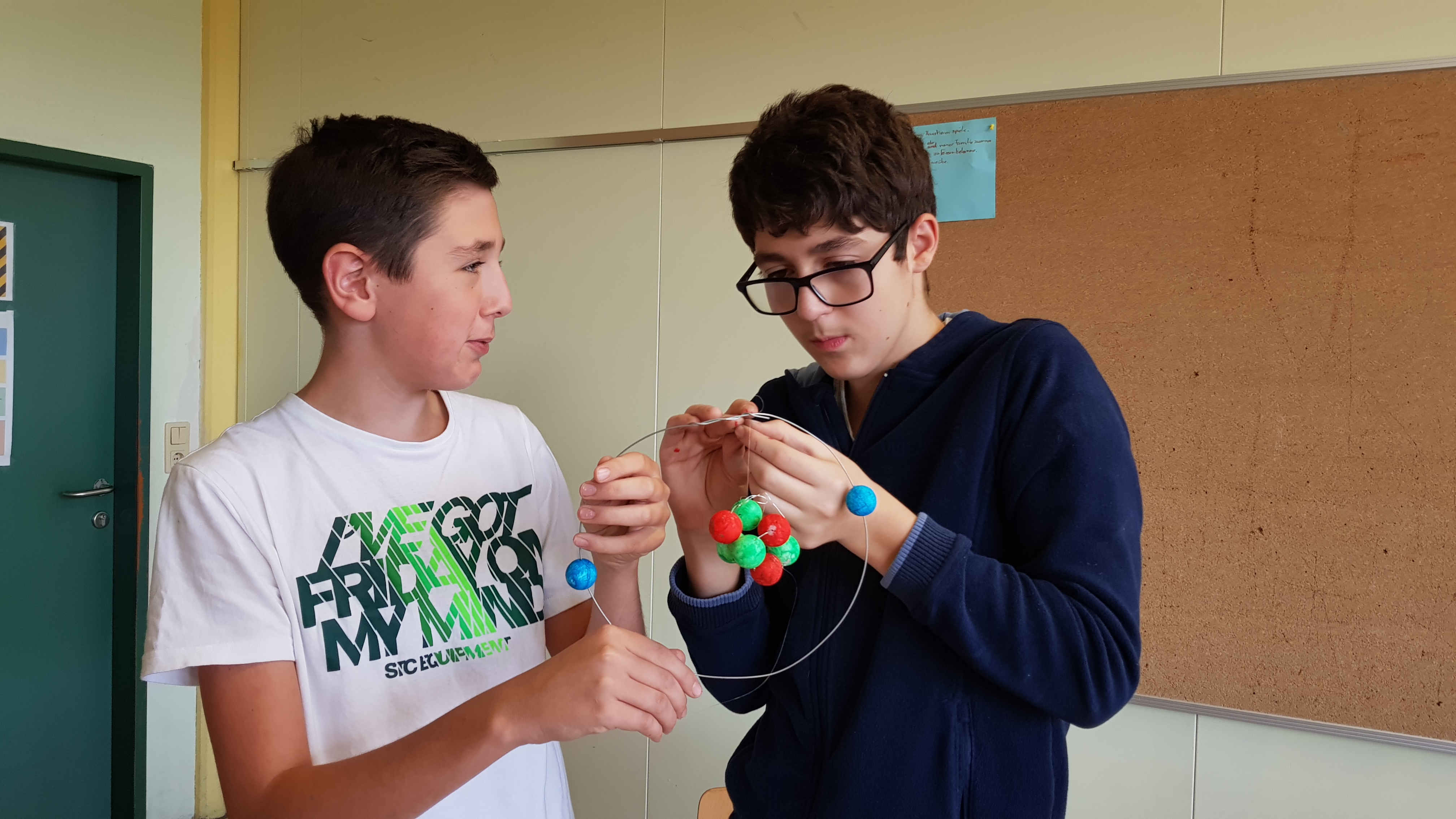 Nachdem die Kids erfahren haben, wie ein Atom und die verschiedenen Elemente aufgebaut sind, bauten sie Modelle von Atomen selber - interessant und kreativ zugleich!