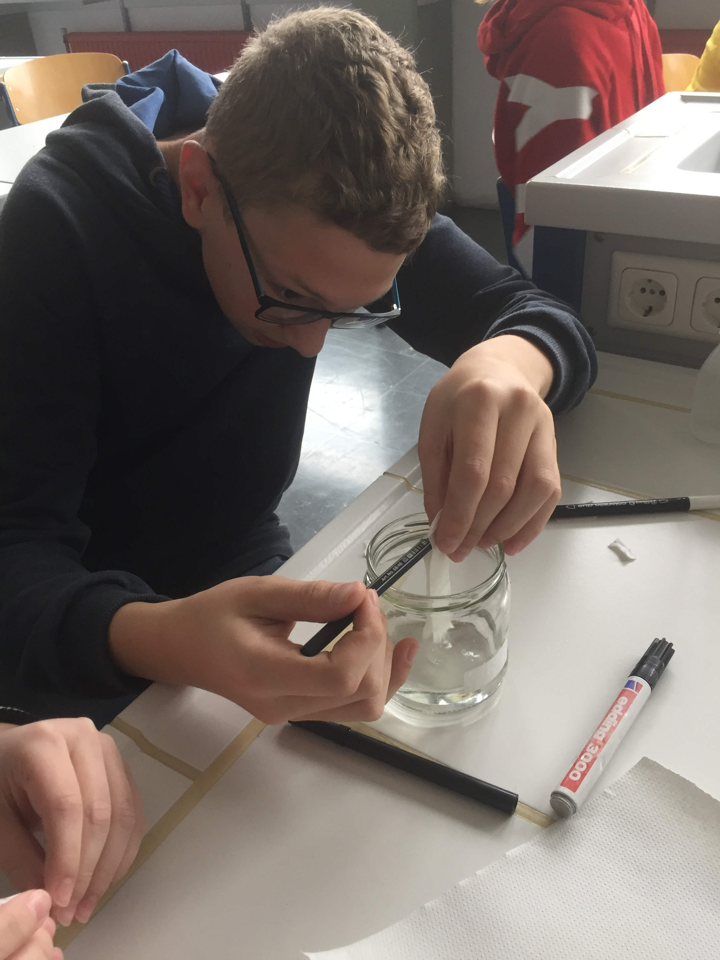 Die Schülerinnen und Schüler der 4. Klassen haben zuletzt in Chemie mit Hilfe der Chromatografie die Farbe Schwarz in ihre Bestandteile aufgetrennt. Wie Zauberei erschienen plötzlich verschiedenste Farben, die vorher nicht zu sehen waren.