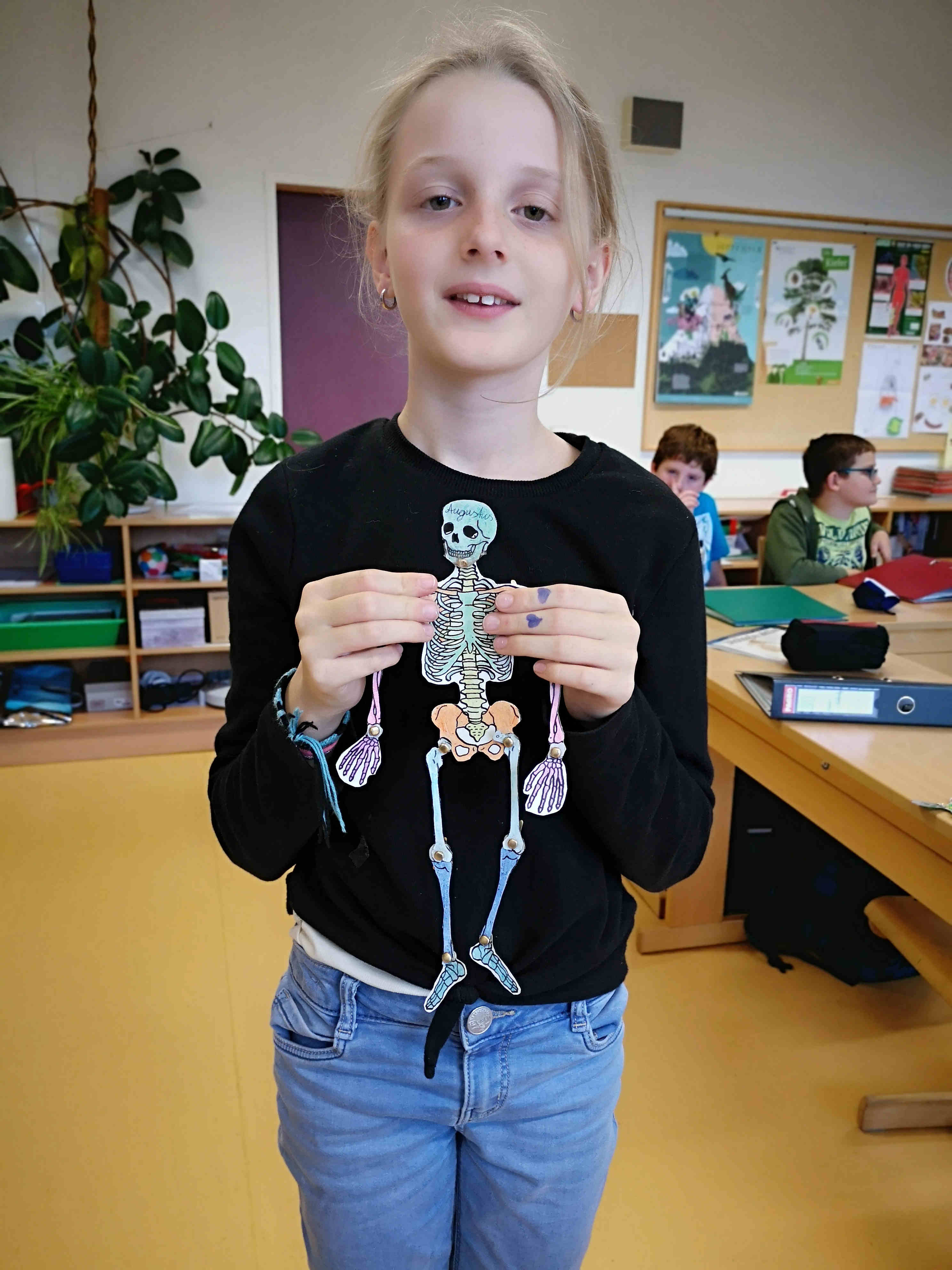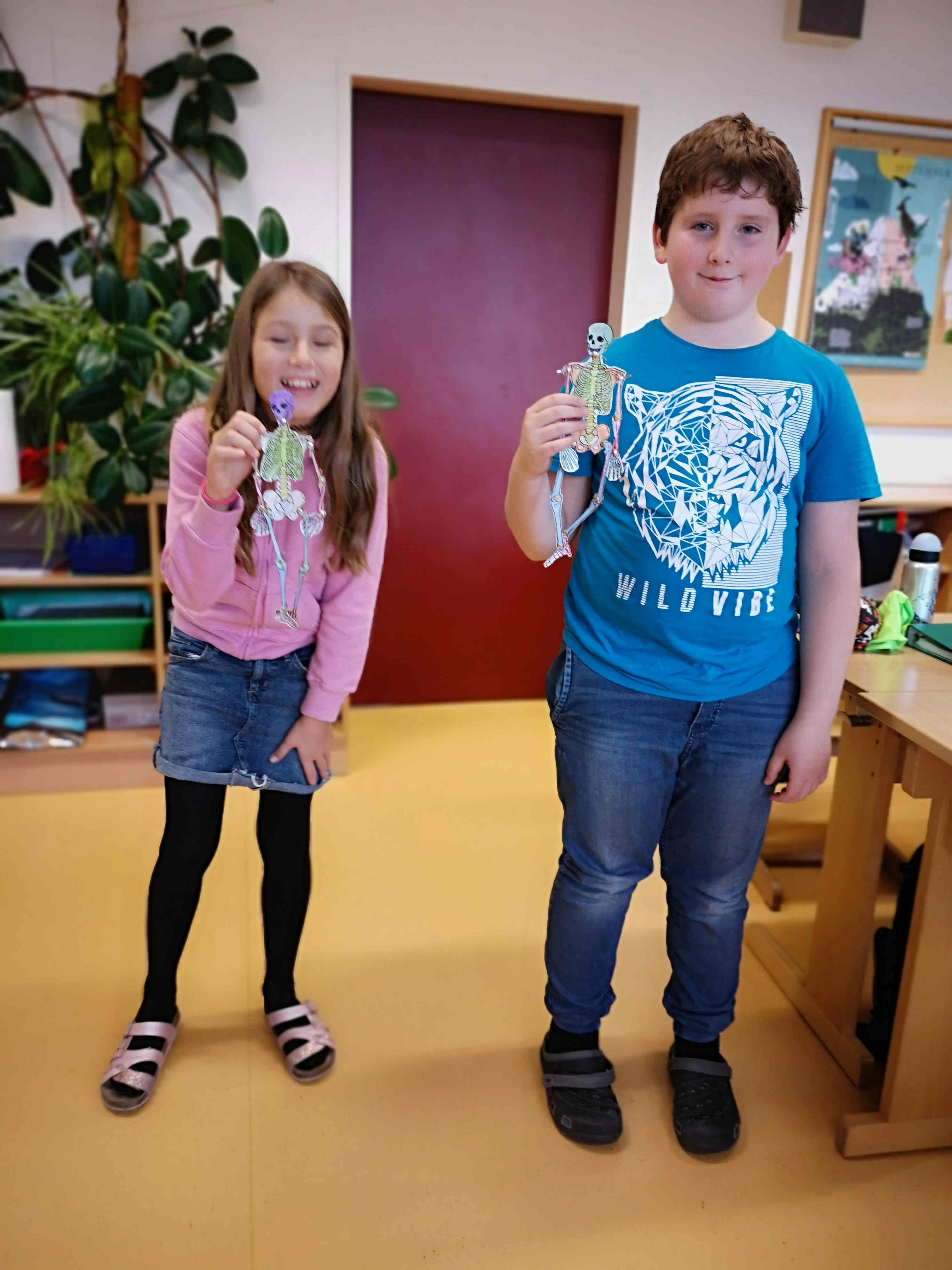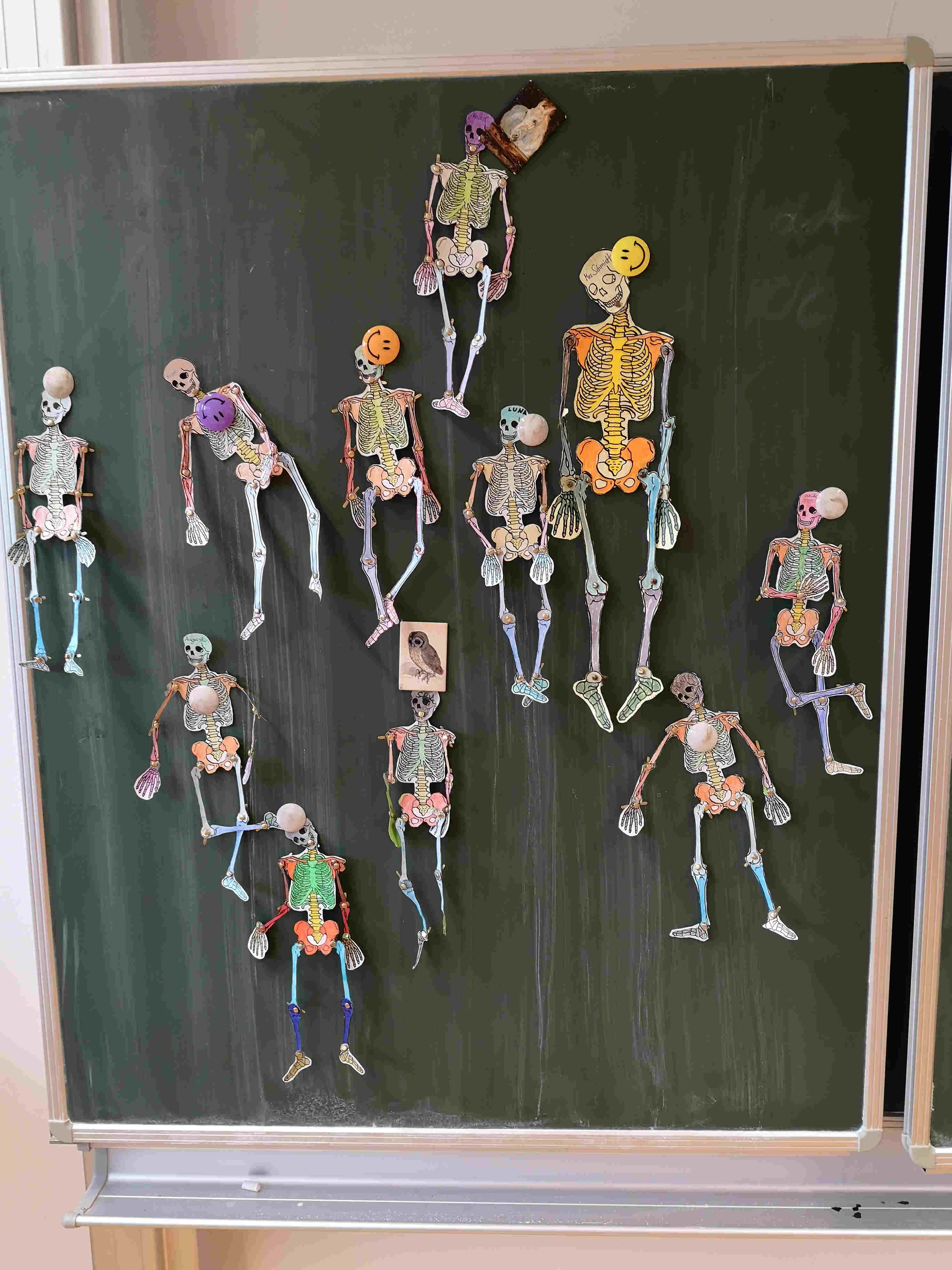 Die Schülerinnen und Schüler der 1. Klasse bastelten im Biologieunterricht passend vor Halloween Skelette. Dies nicht um andere zu gruseln, sondern um mehr über den eigenen Körperbau zu lernen.