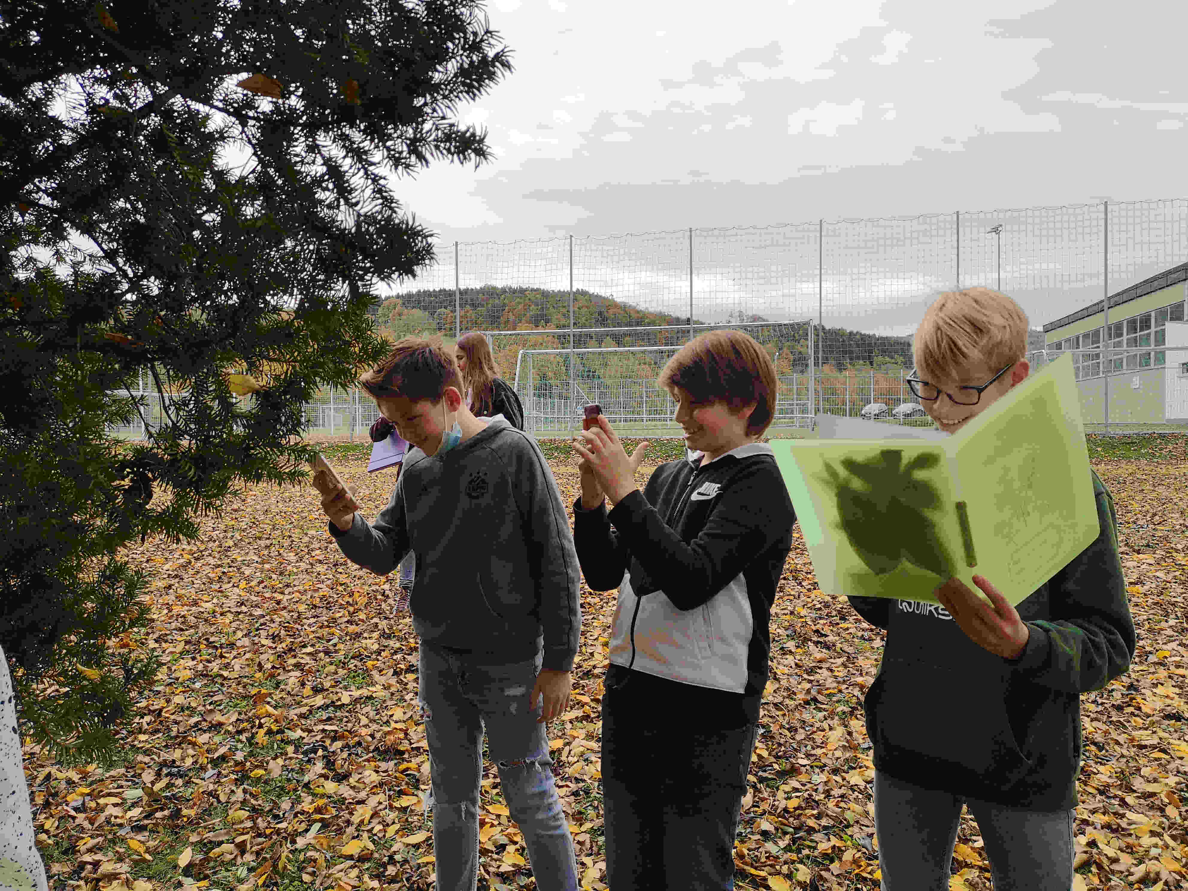 Die Schülerinnen und Schüler der 2. Klassen haben in den letzten Wochen als Hausaufgabe Blätter gesammelt, getrocknet und die Baumart bestimmt. Zum Abschluss gingen die Kids im Biologie-Unterricht bei schönem Wetter hinaus und bestimmten mit Hilfe einer Handy-App die Bäume und Sträucher in der Umgebung.