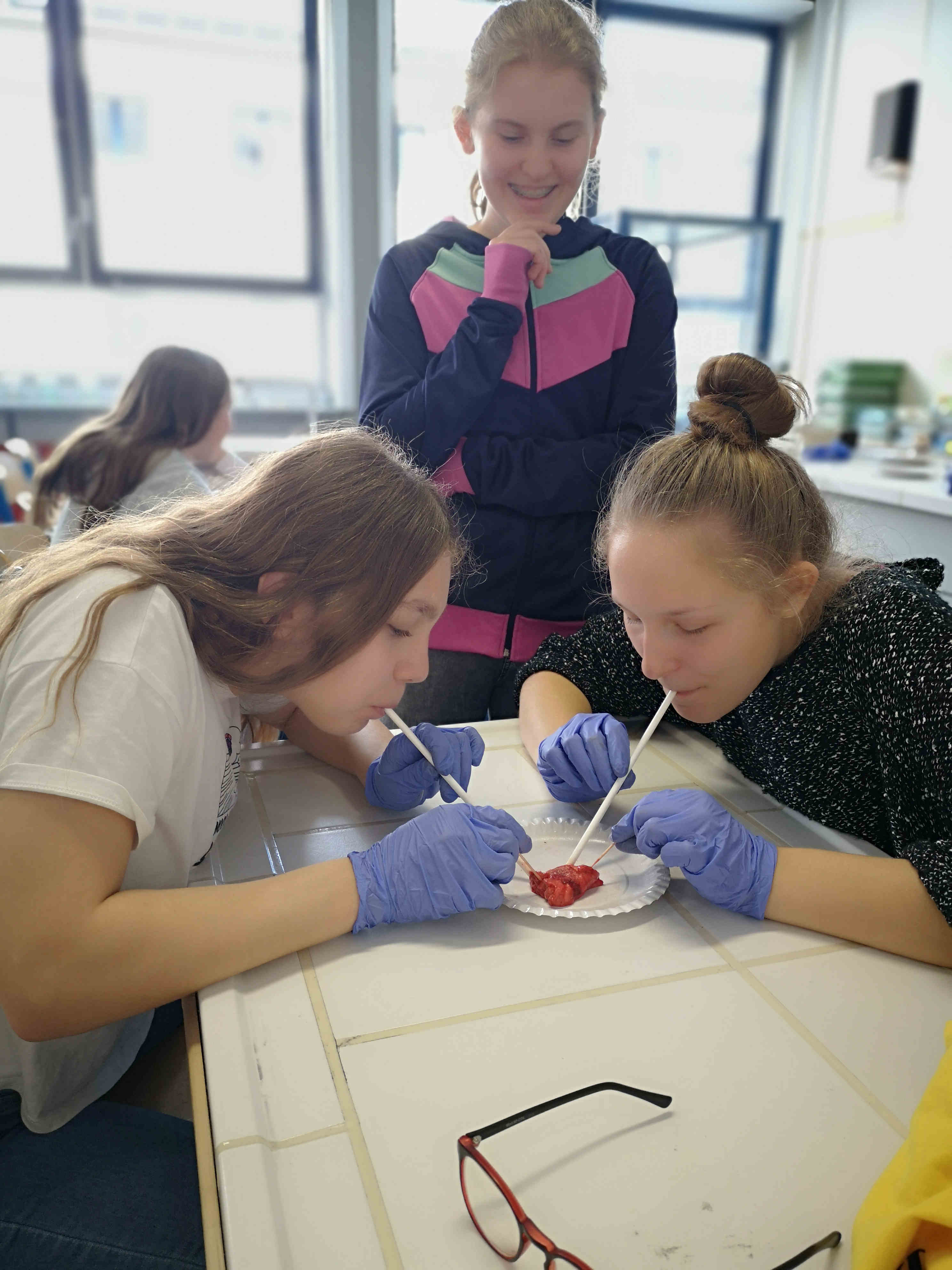 Die Kids der ehemaligen 4. Klassen haben in einer der letzten Biologiestunden vor Schulschluss eine Schweine-Lunge seziert. Bei diesem spannenden Unterricht haben die Kinder viel gelernt, an das sie sich noch lange nach der Schule erinnern werden.