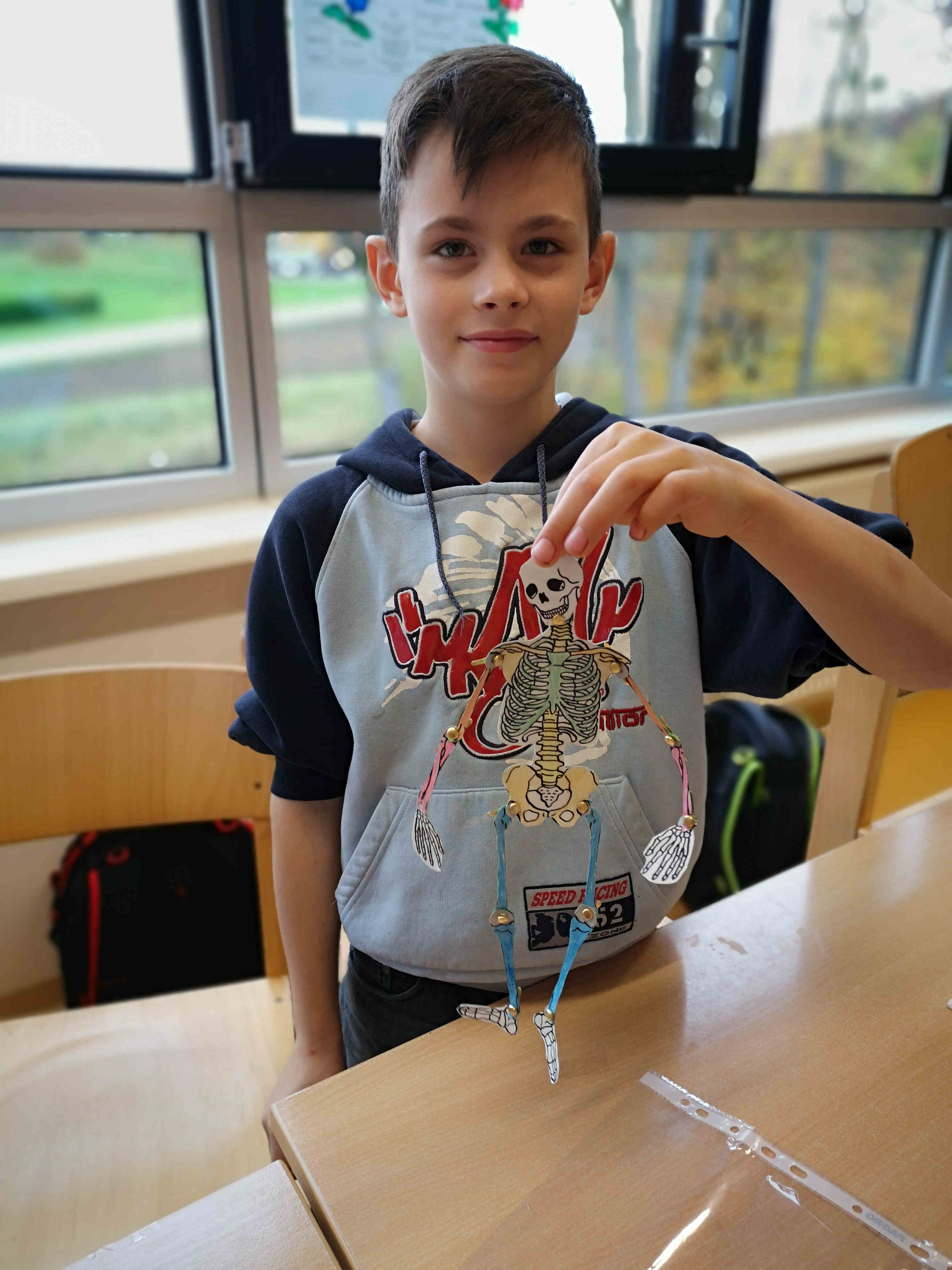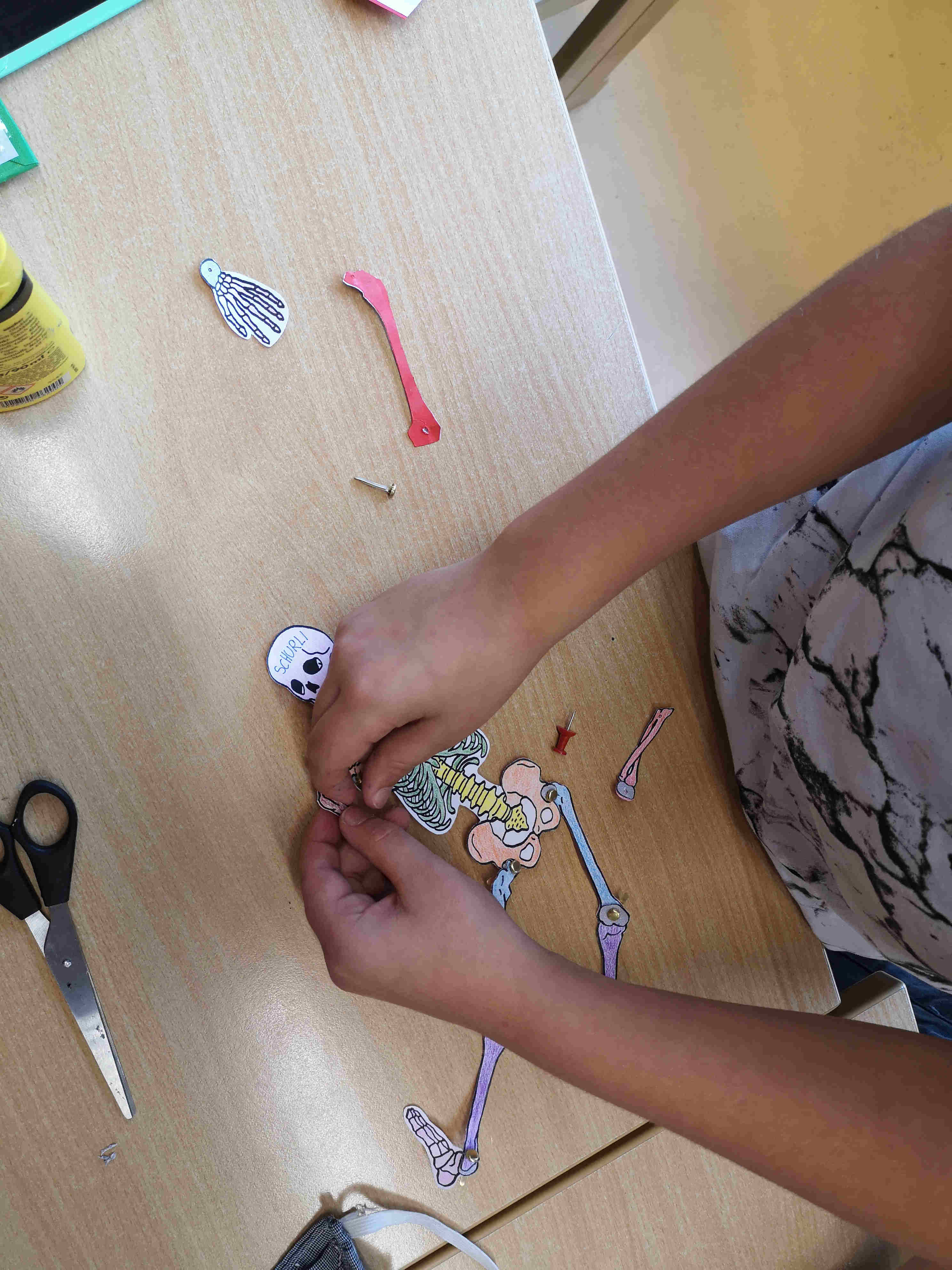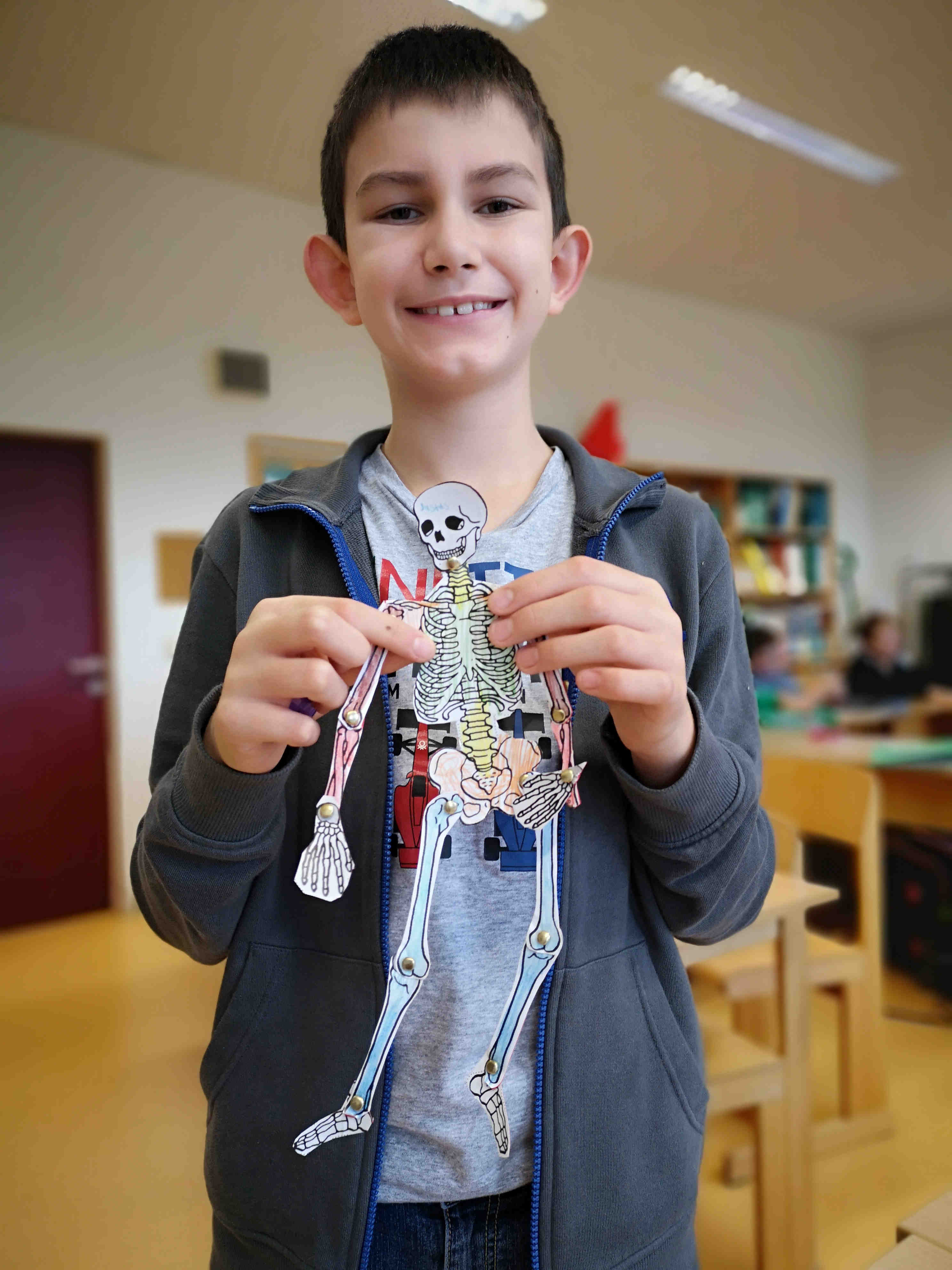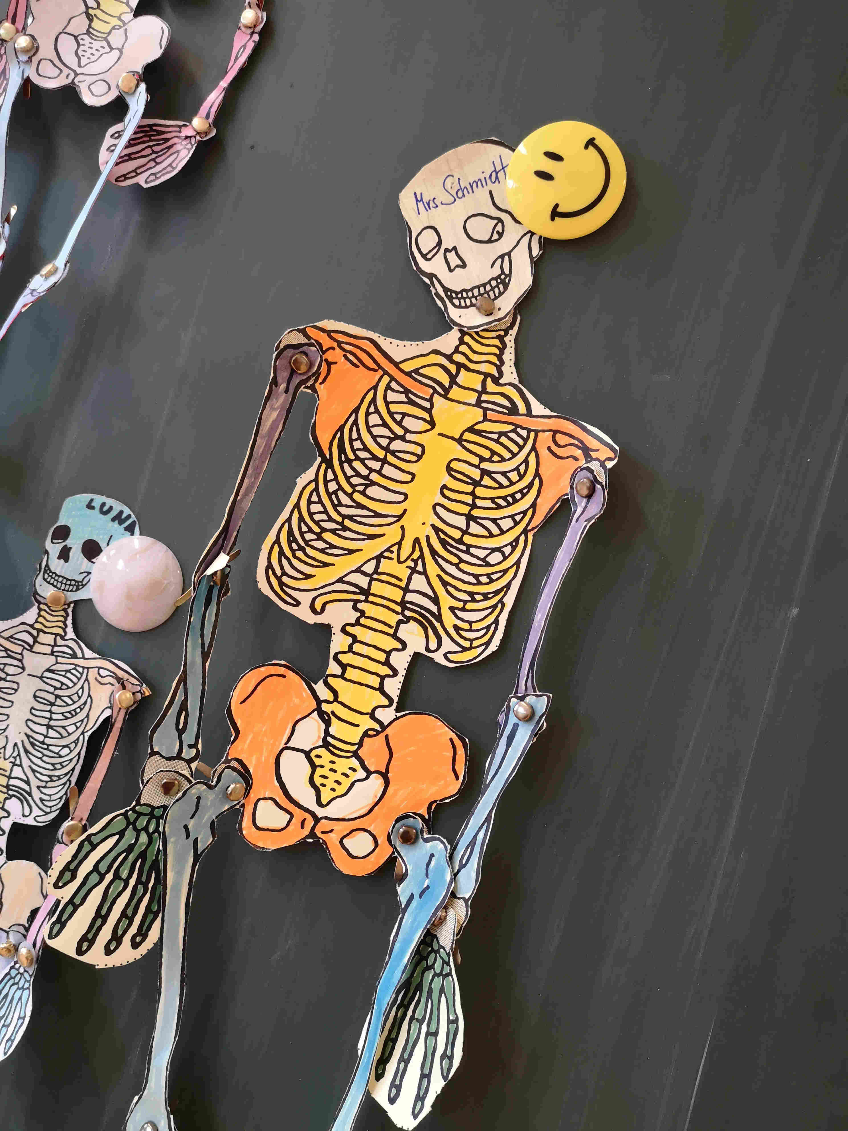 Die Schülerinnen und Schüler der 1. Klasse bastelten im Biologieunterricht passend vor Halloween Skelette. Dies nicht um andere zu gruseln, sondern um mehr über den eigenen Körperbau zu lernen.