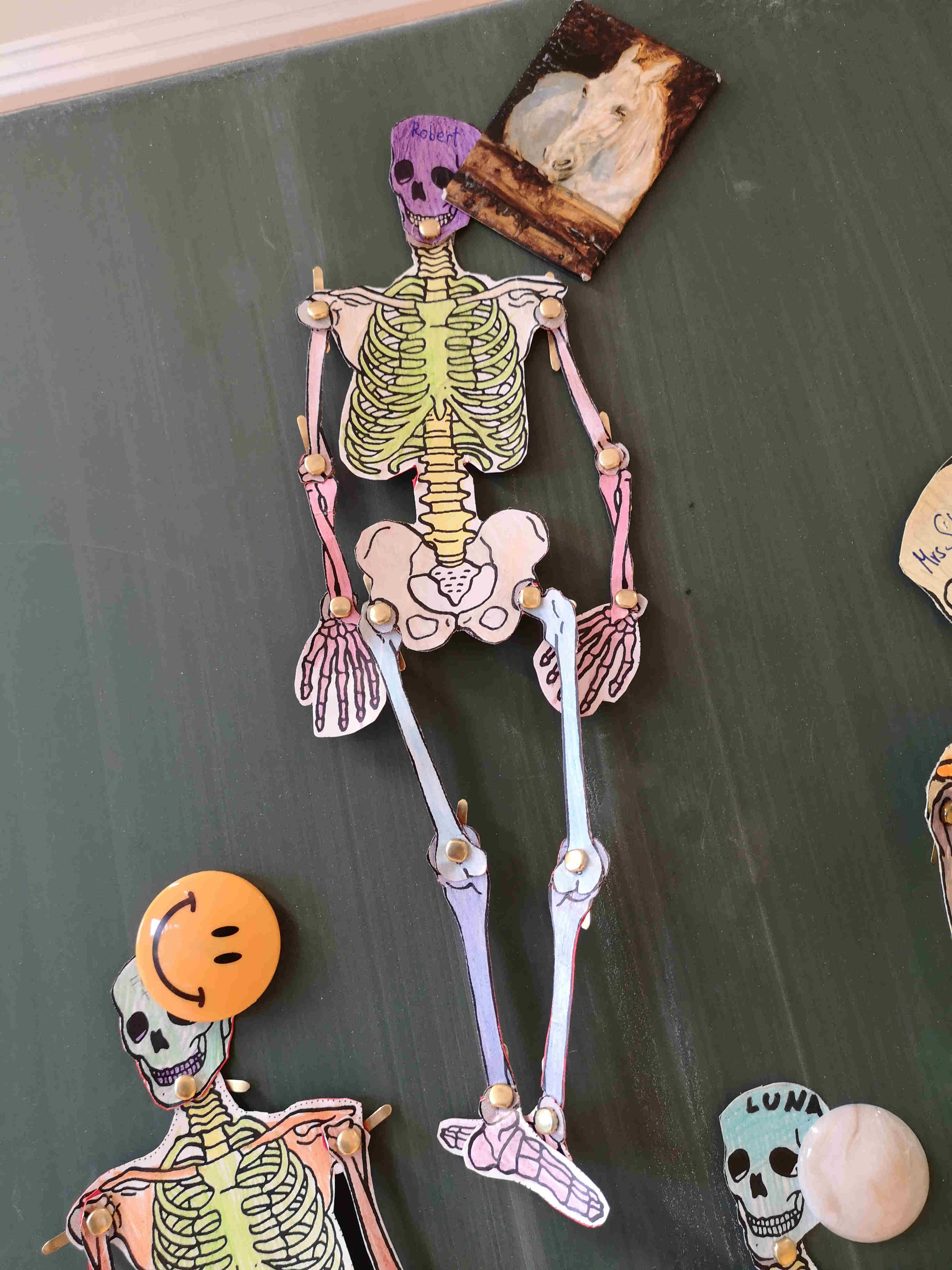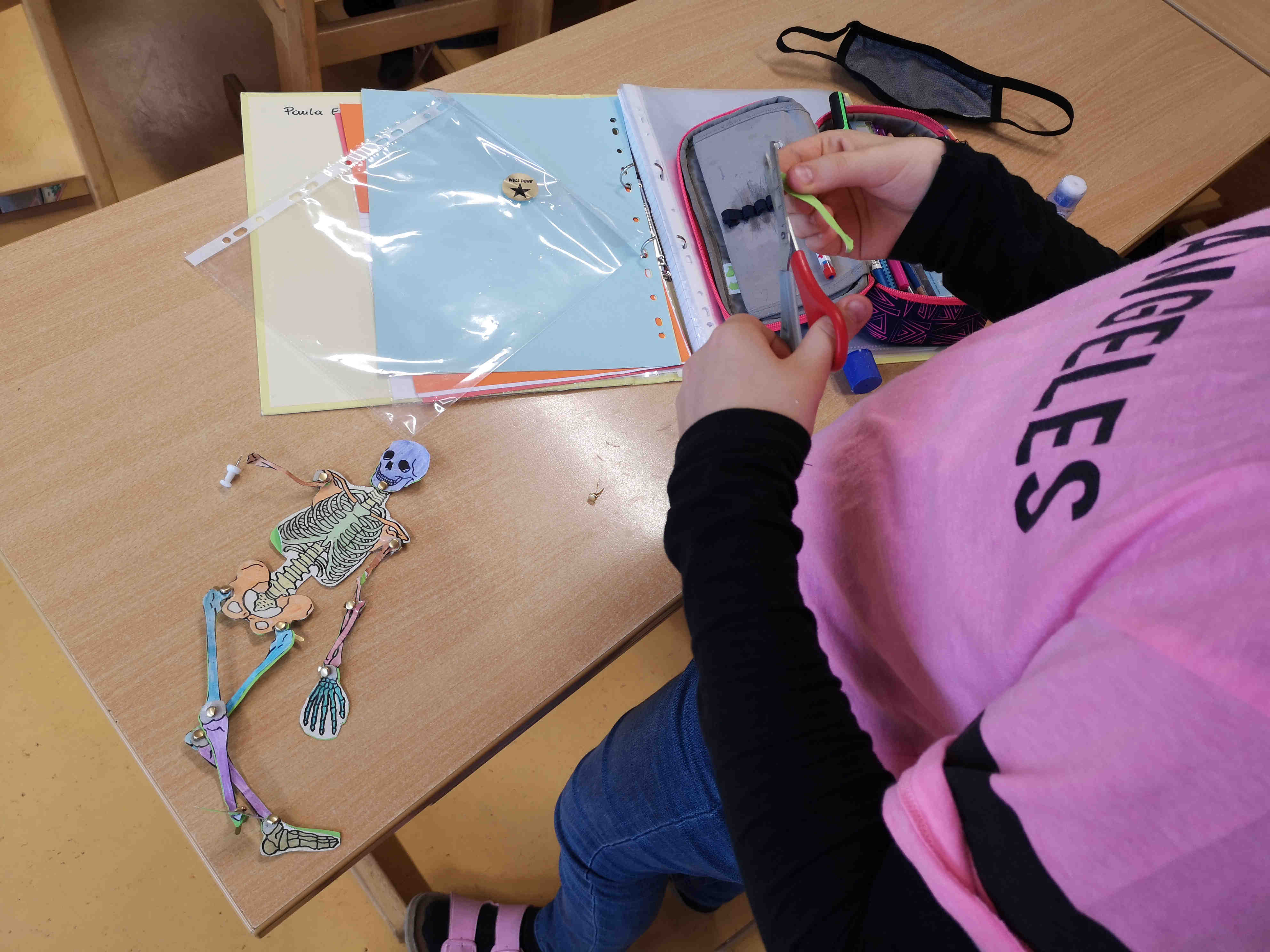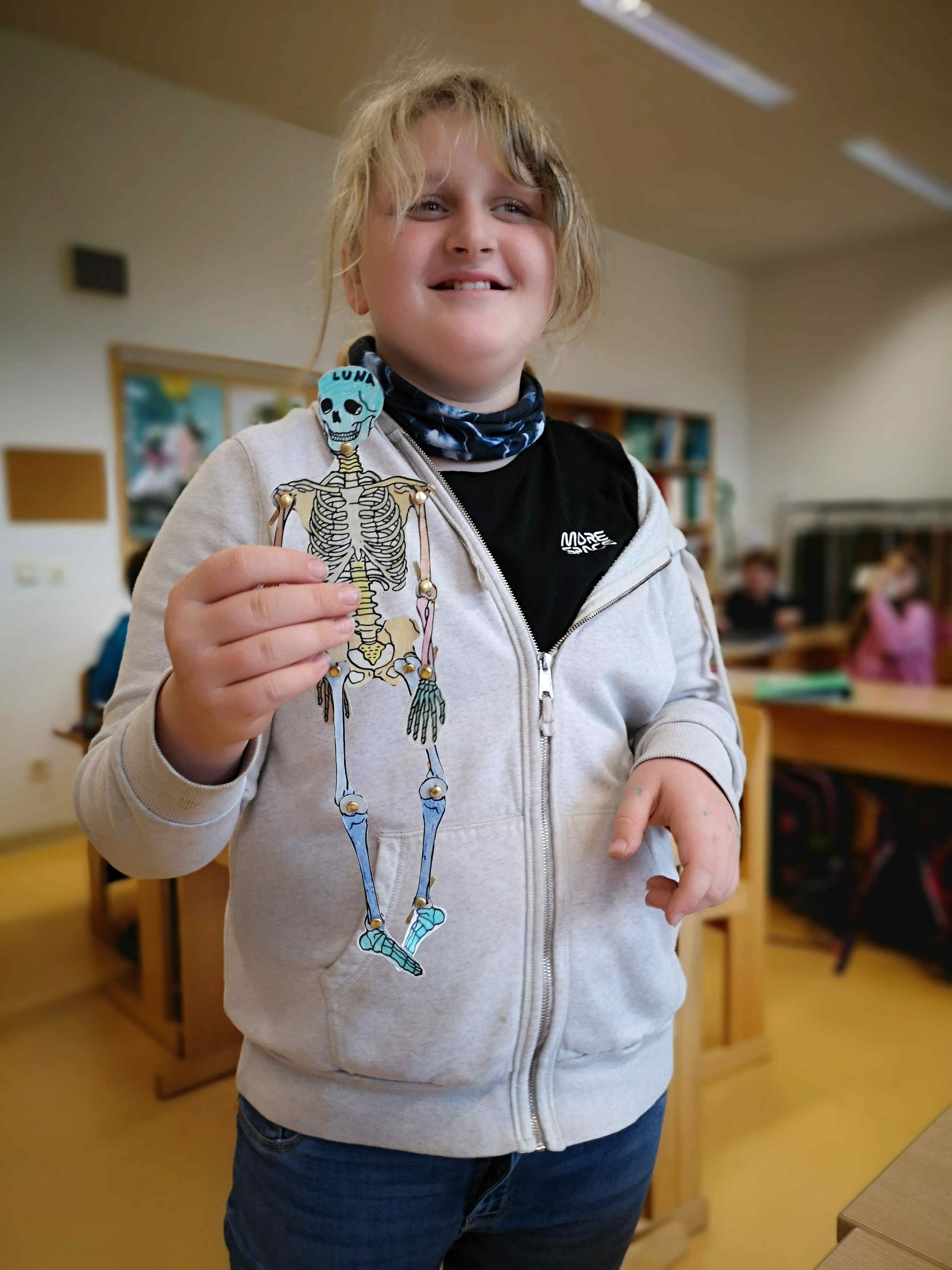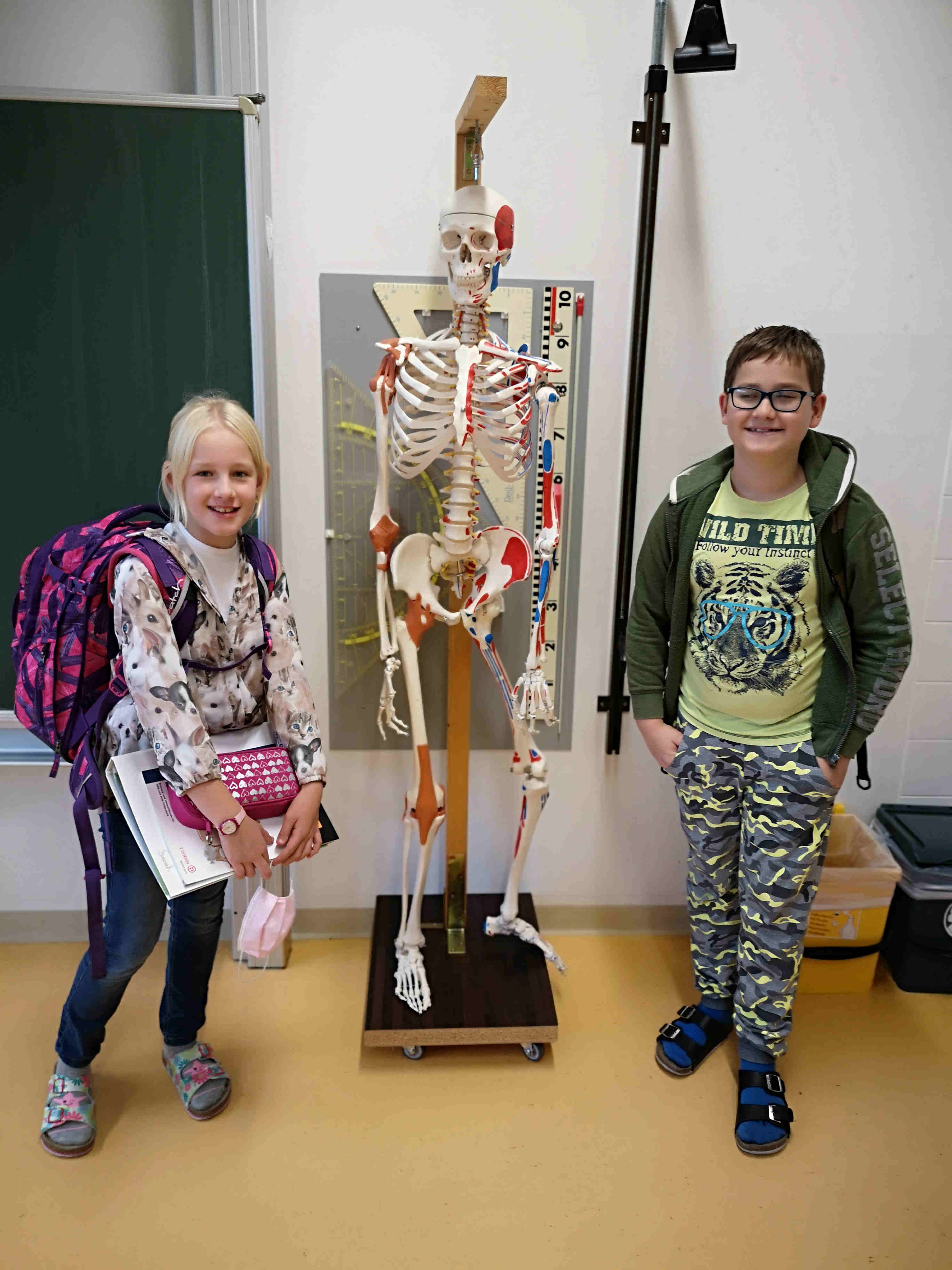 Die Schülerinnen und Schüler der 1. Klasse bastelten im Biologieunterricht passend vor Halloween Skelette. Dies nicht um andere zu gruseln, sondern um mehr über den eigenen Körperbau zu lernen.