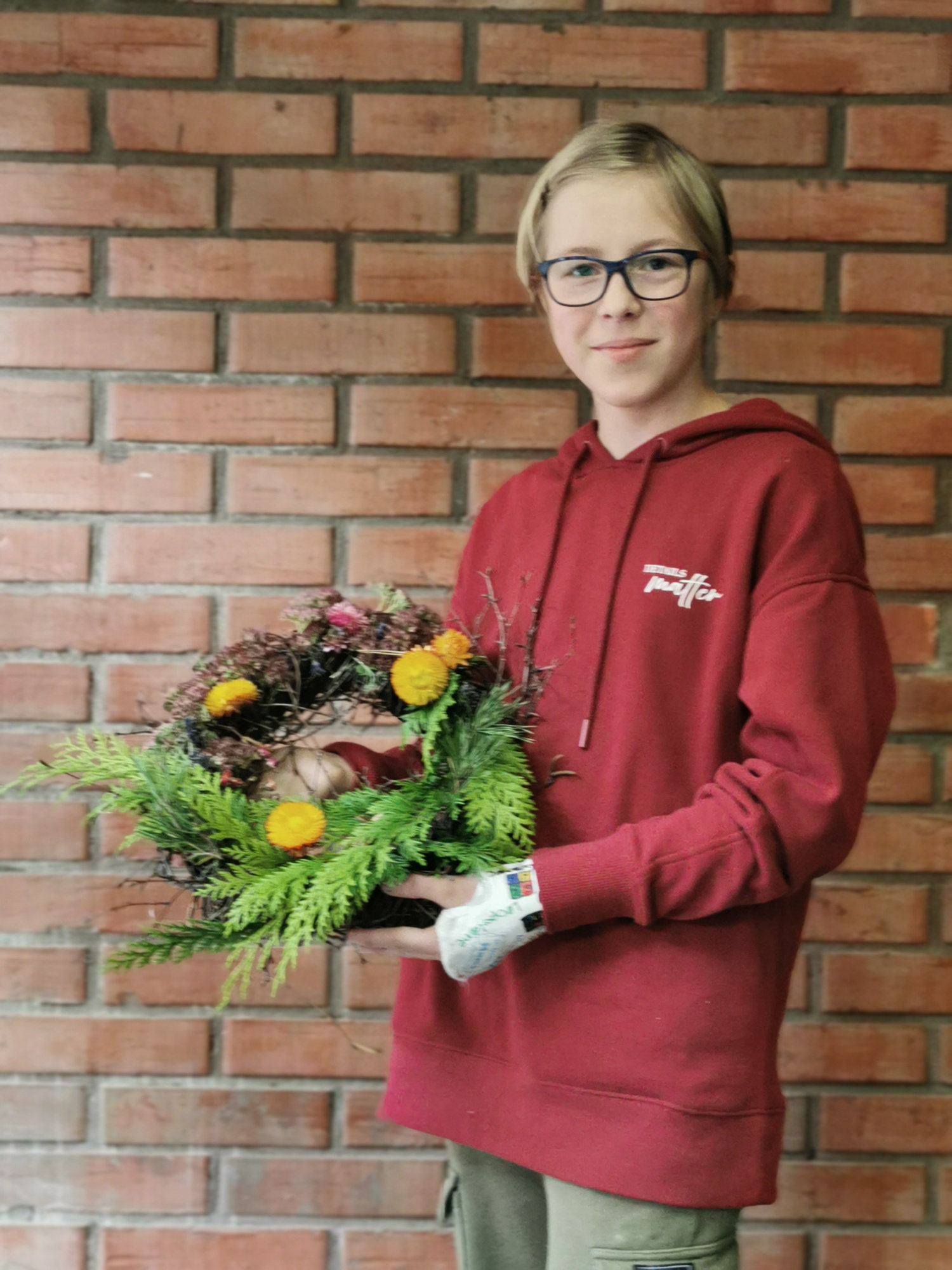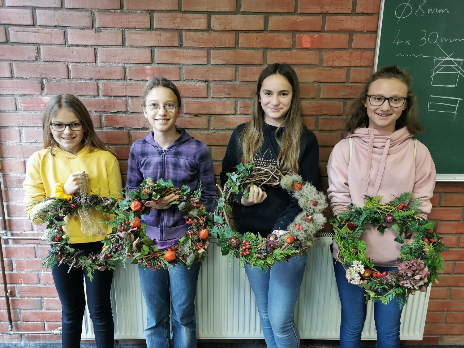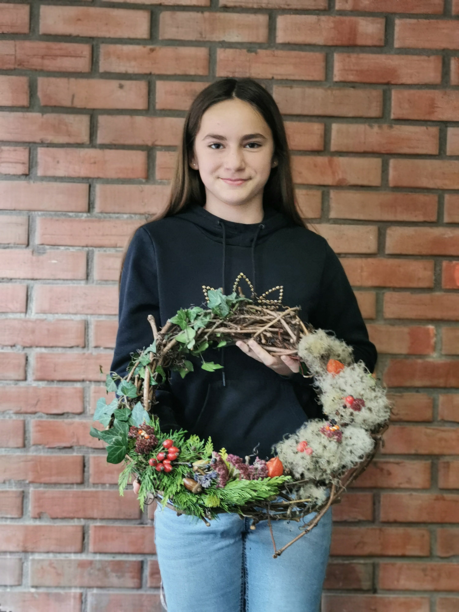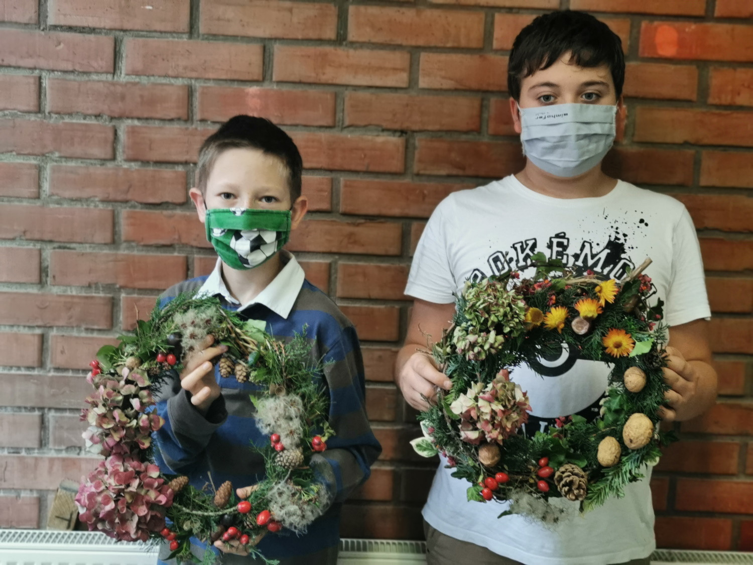 Dabei wurden von den Kids selbsterstellte Dialoge kreativ im Schattenspiel in Szene gesetzt, aus gesammelten Naturmaterialien schöne Türkränze gebunden und in einem WORD-Dokument ihr Wissen über die „Stockwerke des Waldes“ zusammengefasst. Am Freitag wurde bei schönstem Herbstwetter eine Wanderung zum Trainster Hochkreuz gemacht.
