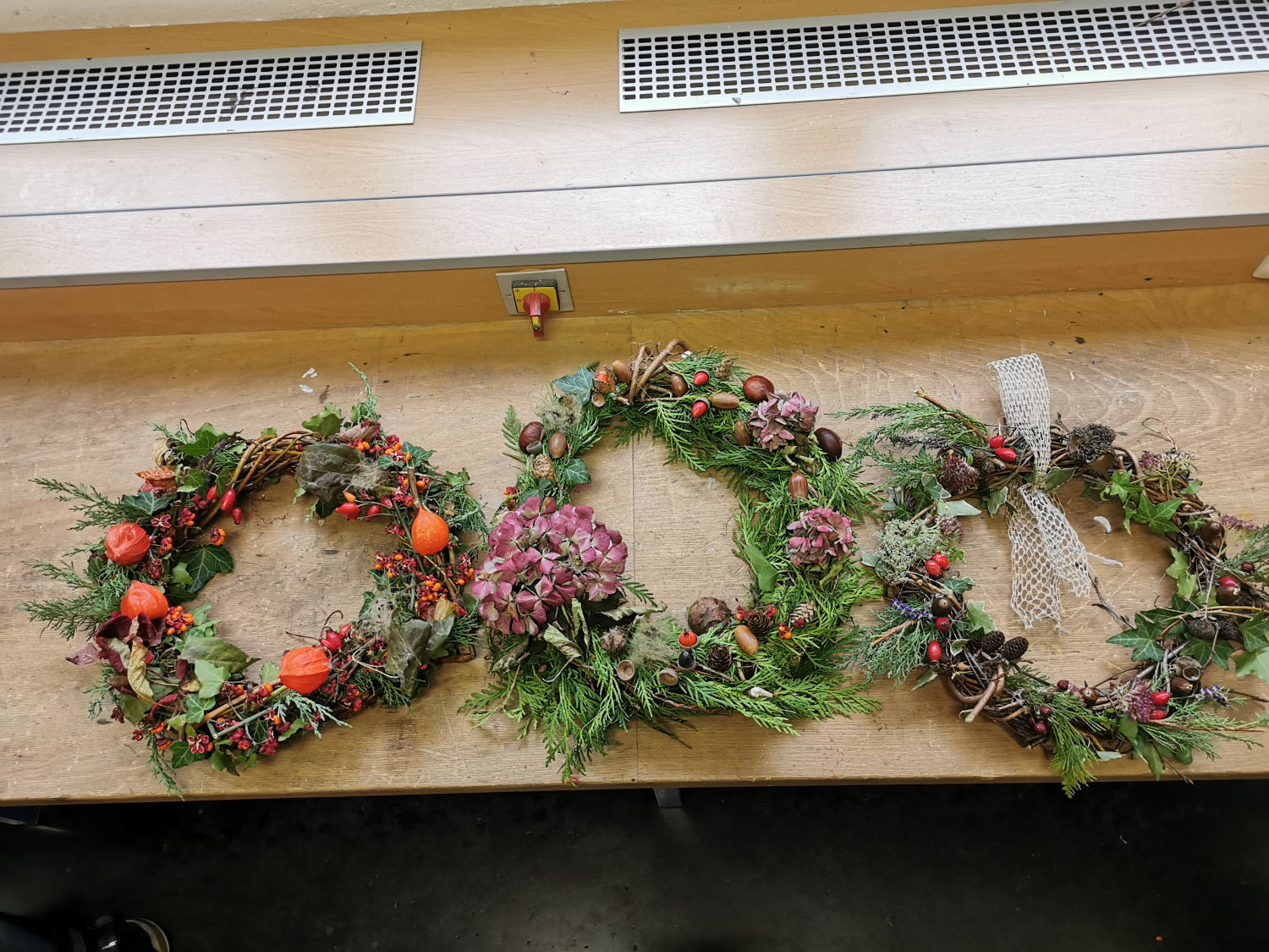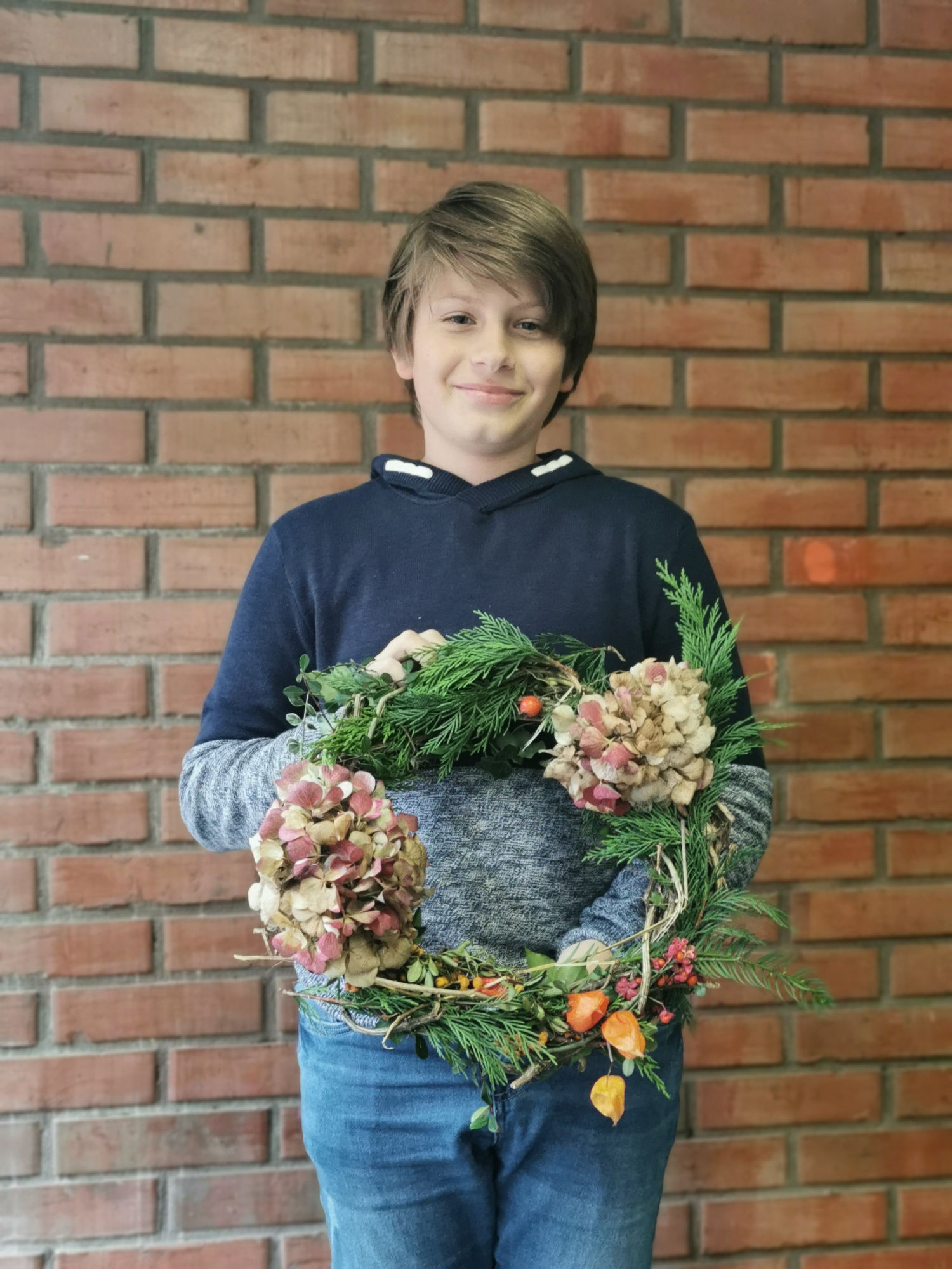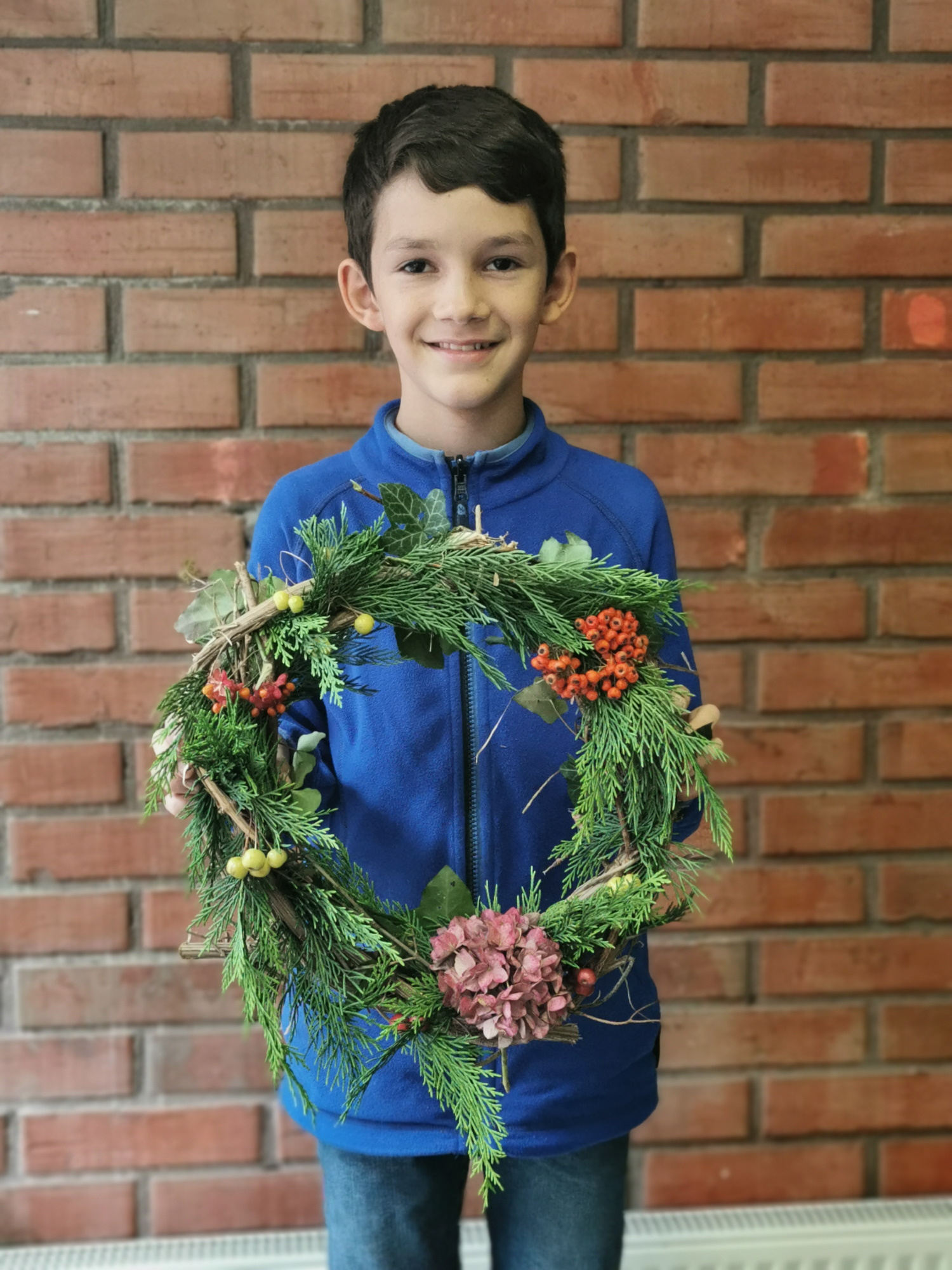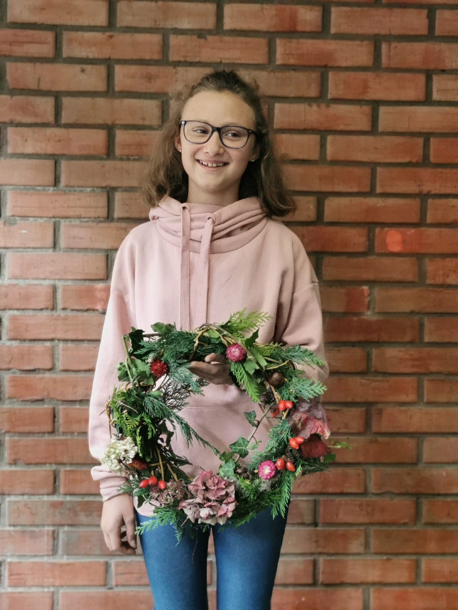 Dabei wurden von den Kids selbsterstellte Dialoge kreativ im Schattenspiel in Szene gesetzt, aus gesammelten Naturmaterialien schöne Türkränze gebunden und in einem WORD-Dokument ihr Wissen über die „Stockwerke des Waldes“ zusammengefasst. Am Freitag wurde bei schönstem Herbstwetter eine Wanderung zum Trainster Hochkreuz gemacht.