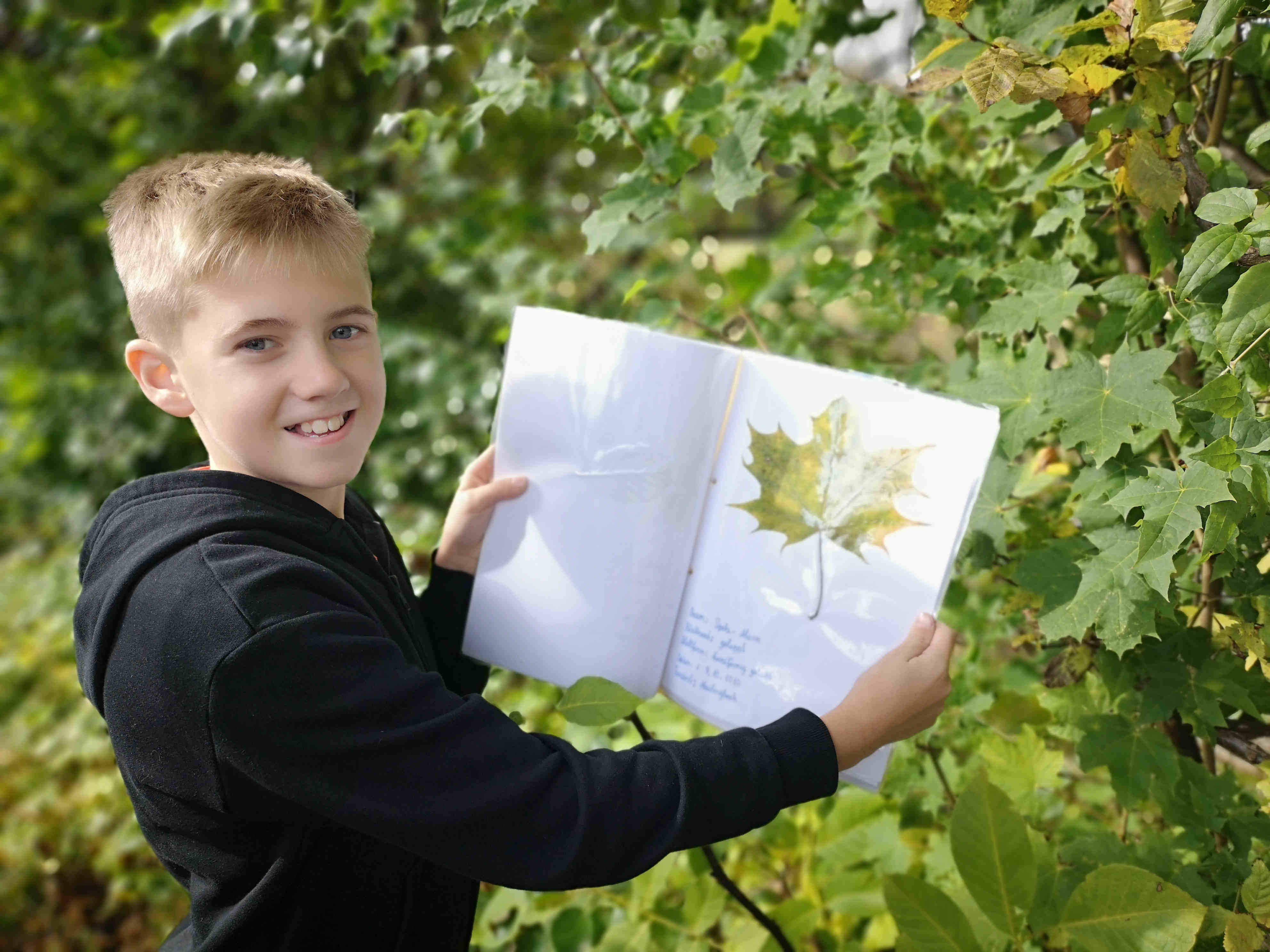 Die Schülerinnen und Schüler der 2. Klassen haben in den letzten Wochen als Hausaufgabe Blätter gesammelt, getrocknet und die Baumart bestimmt. Zum Abschluss gingen die Kids im Biologie-Unterricht bei schönem Wetter hinaus und bestimmten mit Hilfe einer Handy-App die Bäume und Sträucher in der Umgebung.