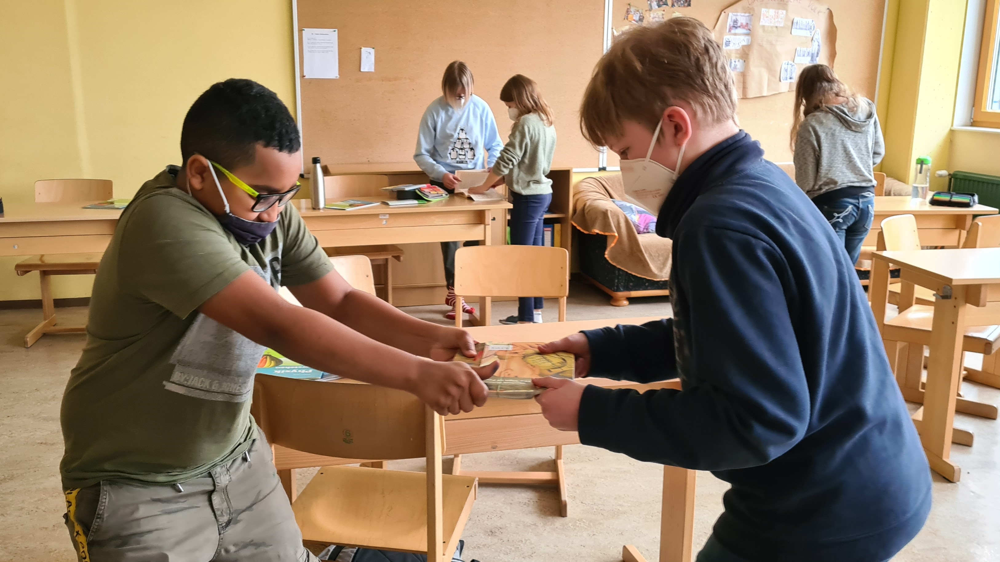 Die Schülerinnen und Schüler der 2. Klassen nutzen in einer Physikstunde Bücher einmal ganz anders!