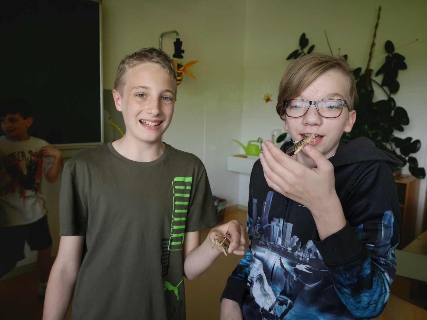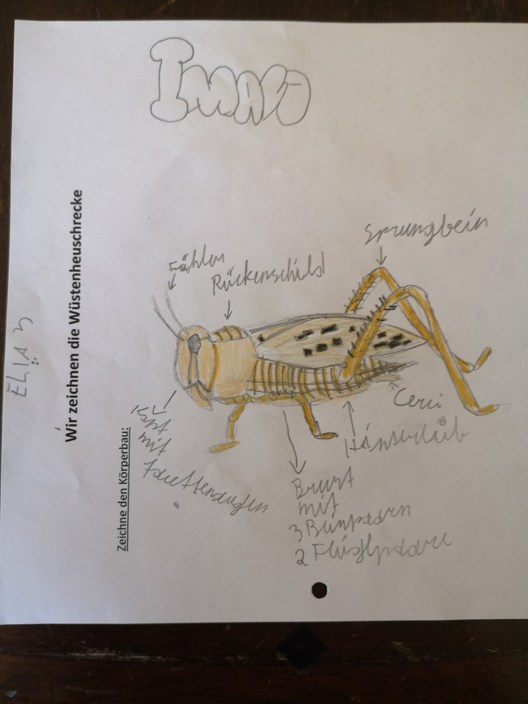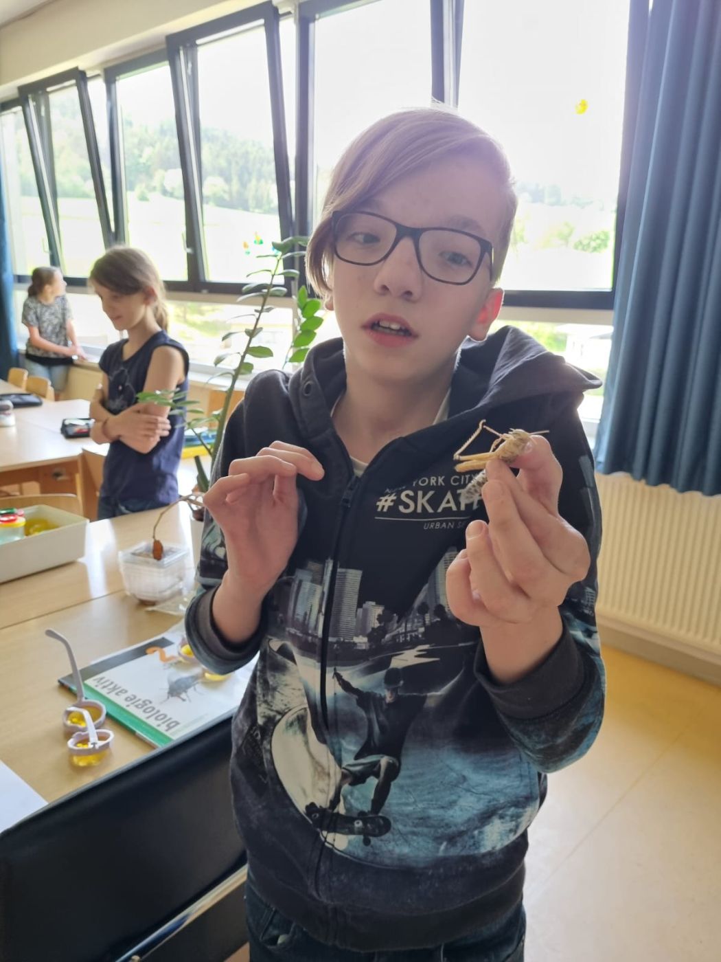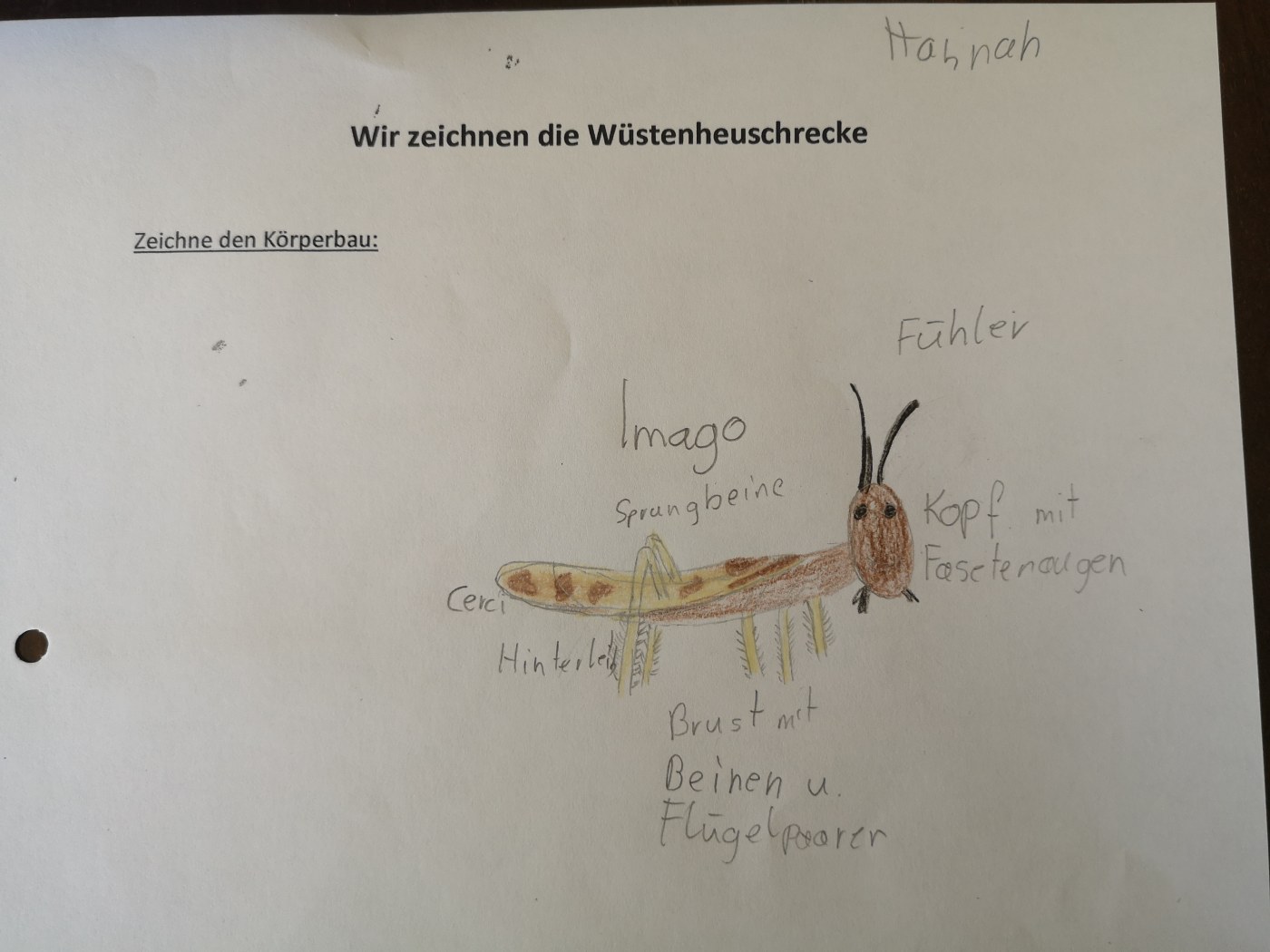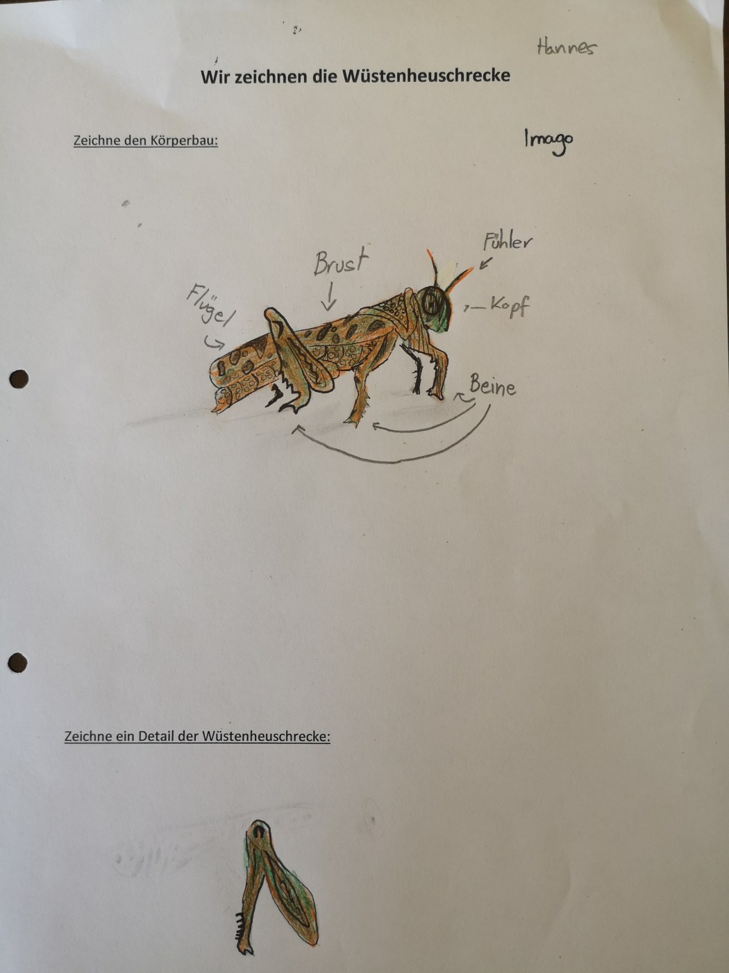 Sie Schülerinnen und Schüler der 2a konnten in ihrer letzten Biologiestunde die "Sprungmeister der Natur" genauer kennen lernen. Jede Schülerin und jeder Schüler durfte eine Wüstenheuschrecke genau studieren.