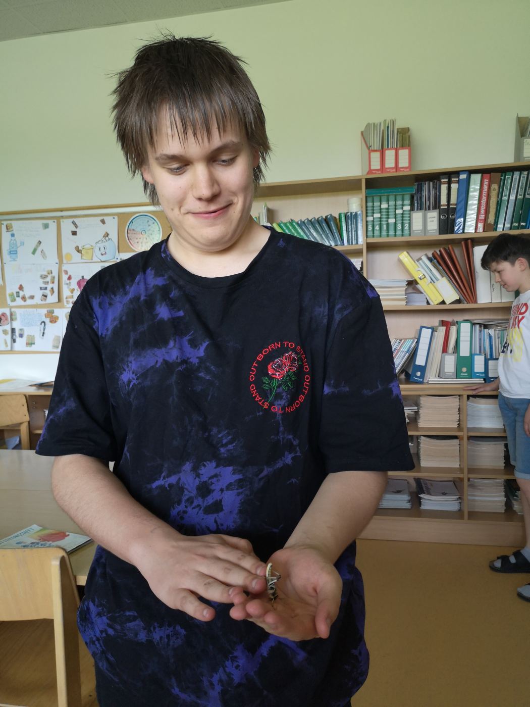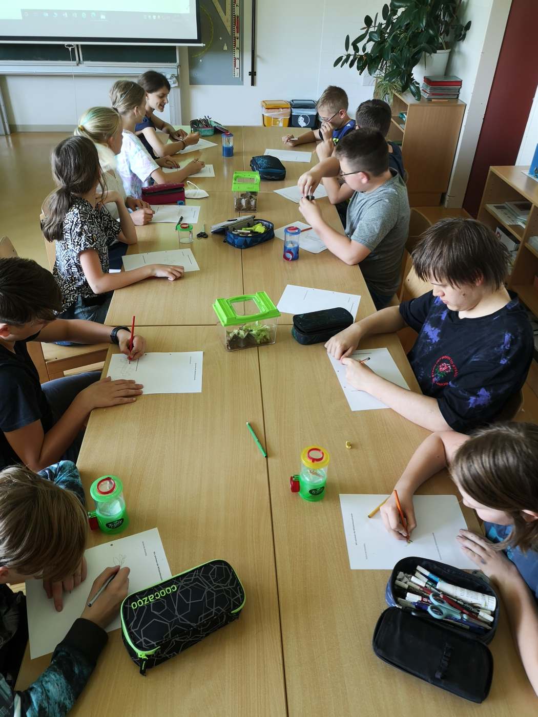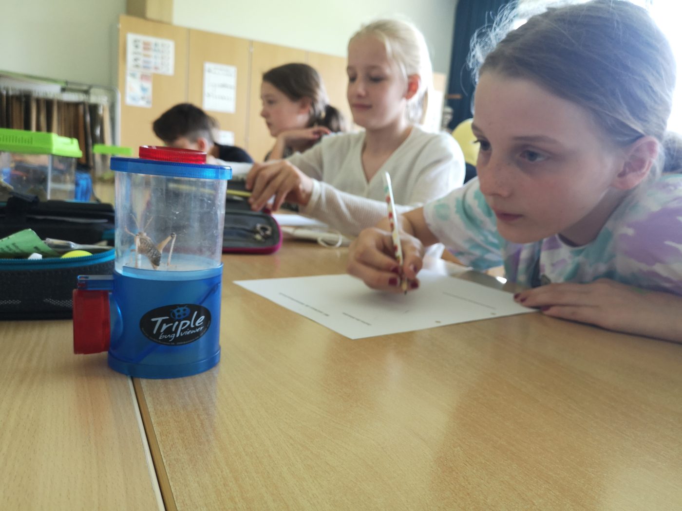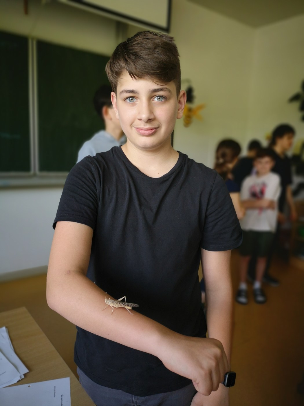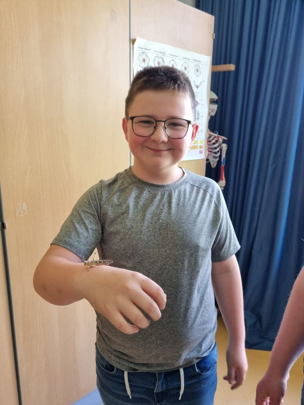 Sie Schülerinnen und Schüler der 2a konnten in ihrer letzten Biologiestunde die "Sprungmeister der Natur" genauer kennen lernen. Jede Schülerin und jeder Schüler durfte eine Wüstenheuschrecke genau studieren.