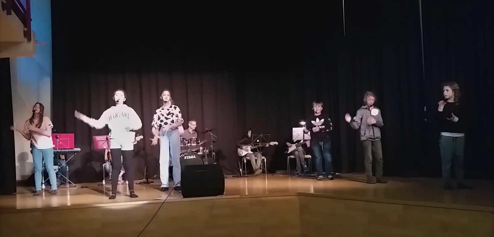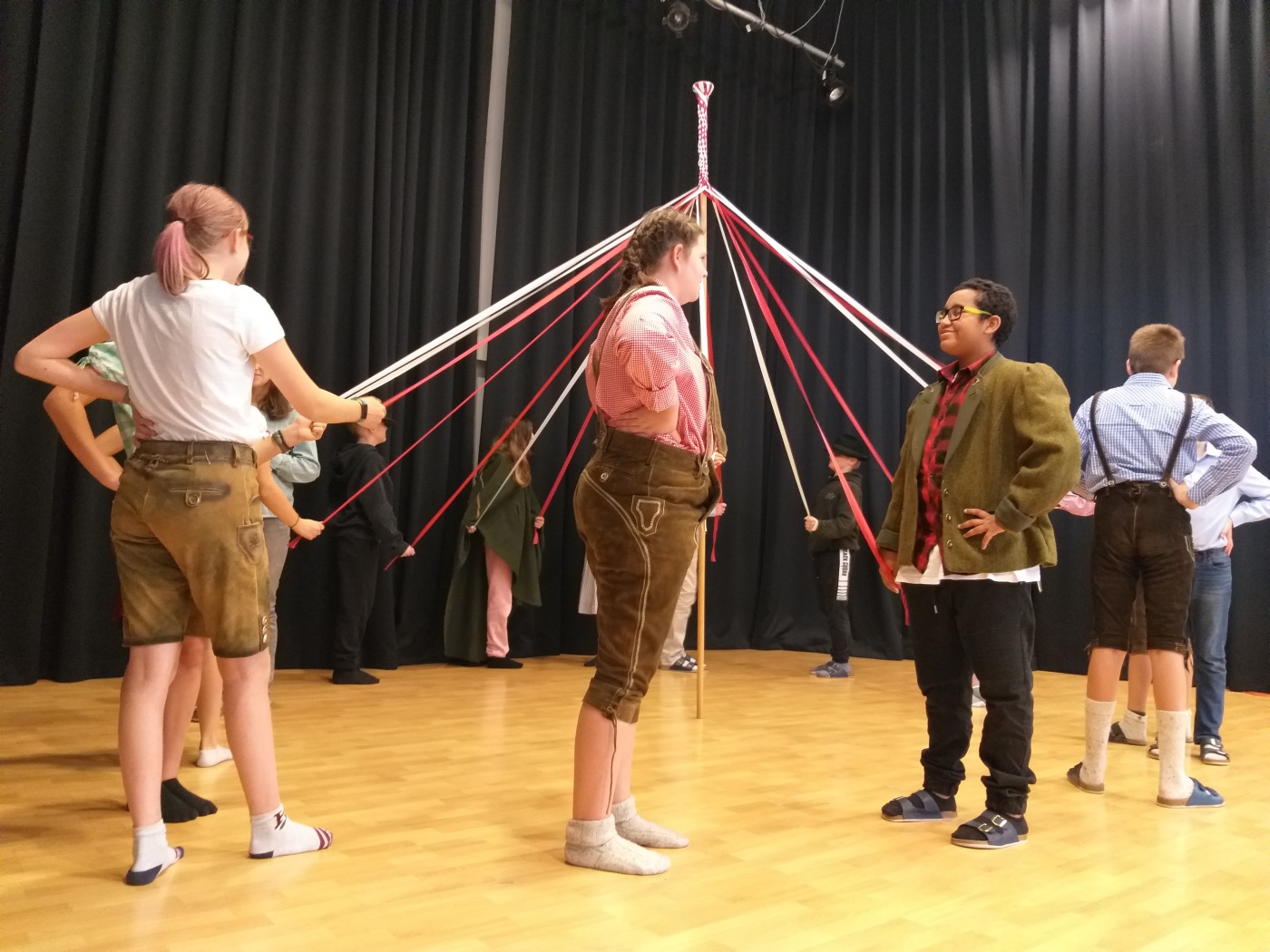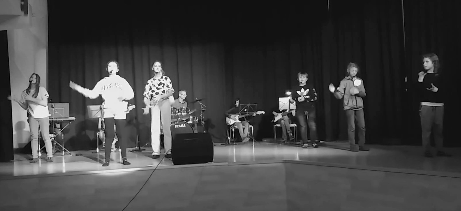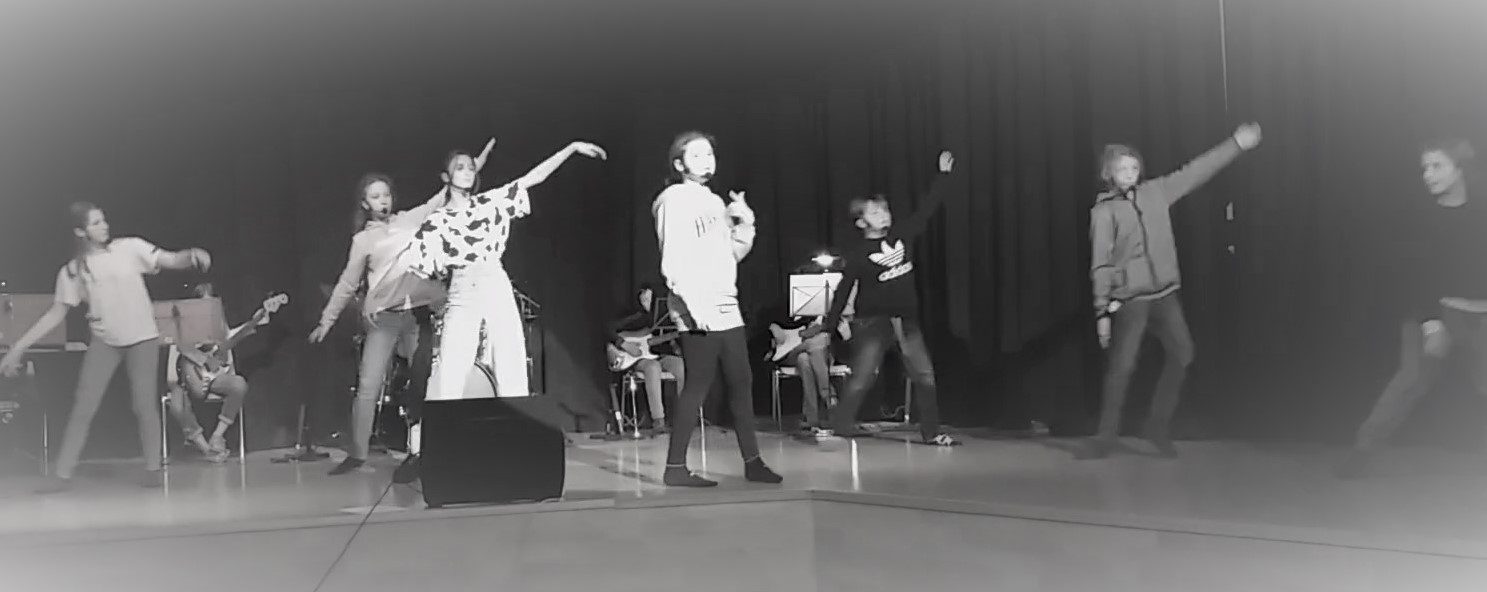 Der Musical-Cast von unserem Darstellenden Spiel hat sich mit der Schulband auf unsere Bühne begeben, um gemeinsam mit Live-Musik, Tanz und Gesang zu proben.