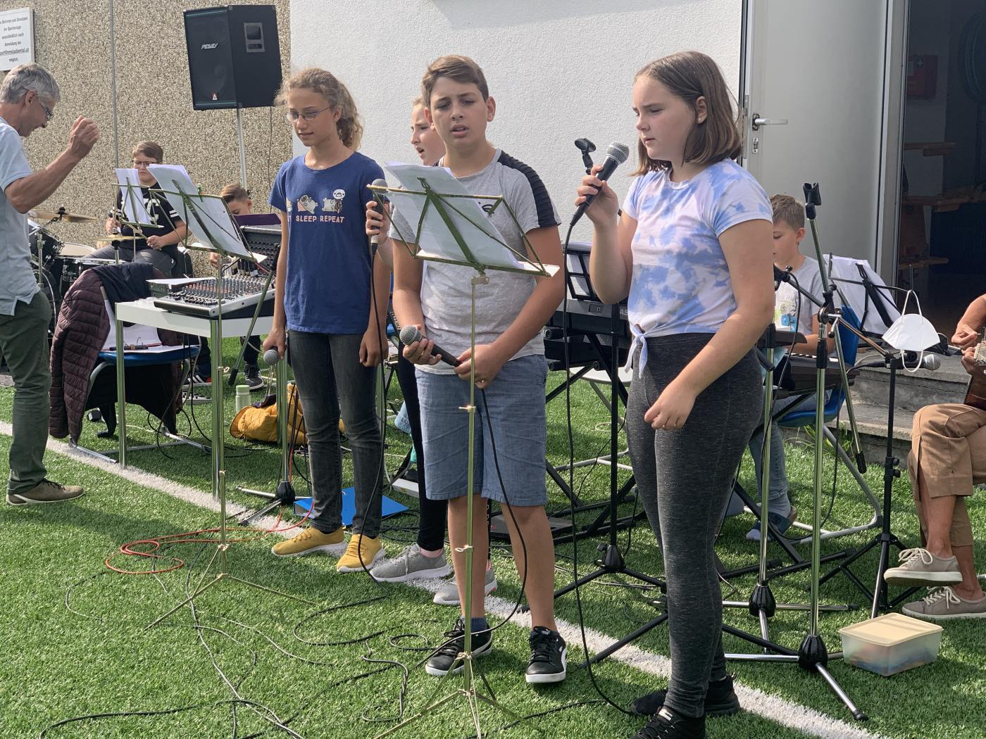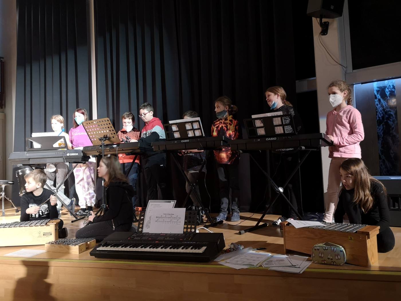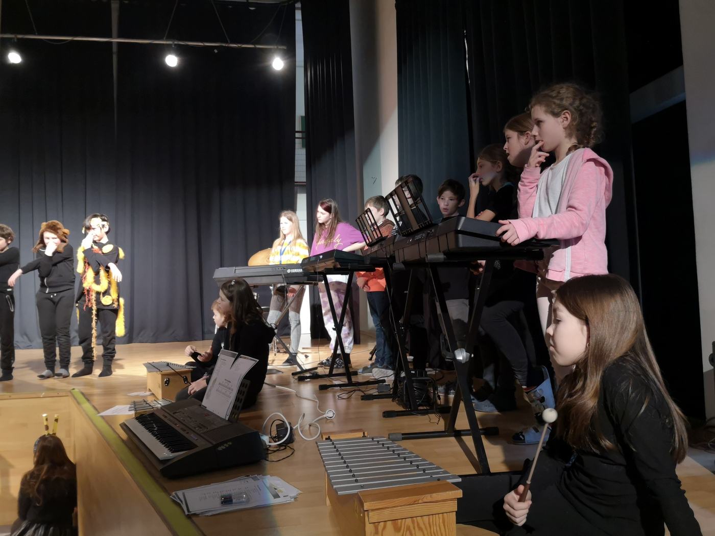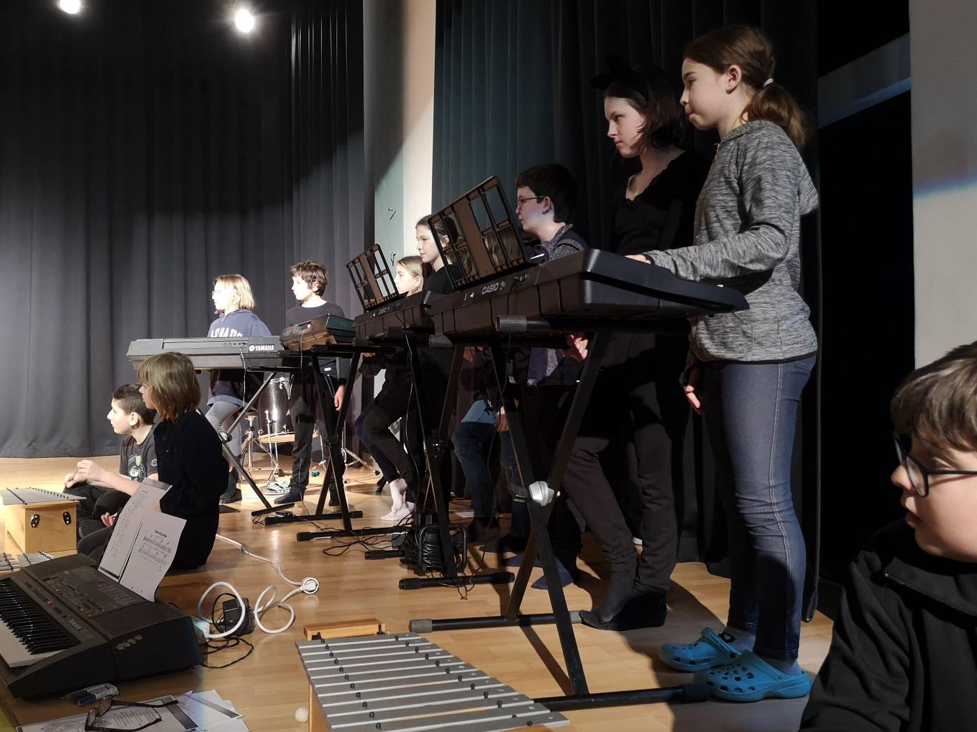 Der Musical-Cast von unserem Darstellenden Spiel hat sich mit der Schulband auf unsere Bühne begeben, um gemeinsam mit Live-Musik, Tanz und Gesang zu proben.