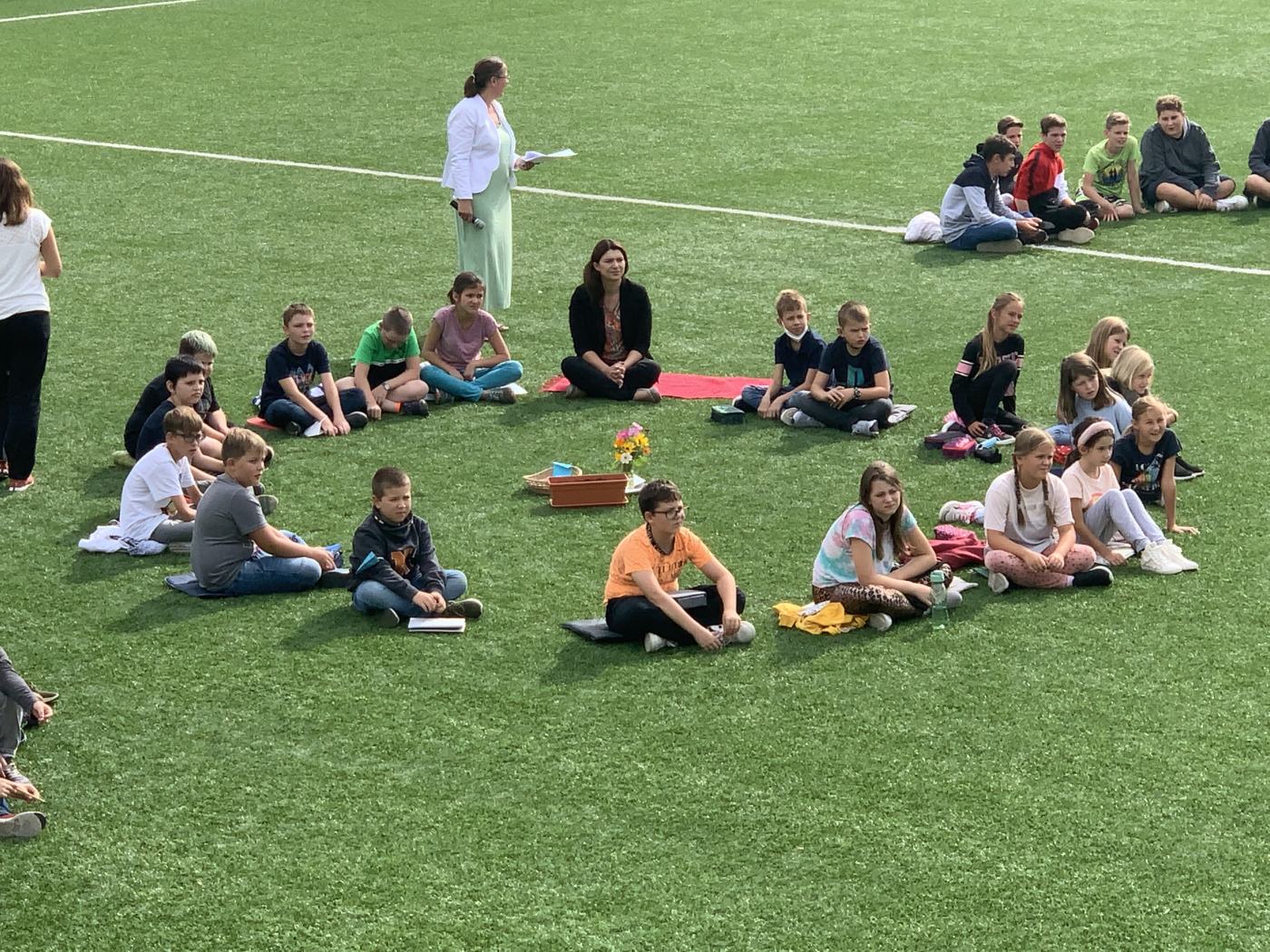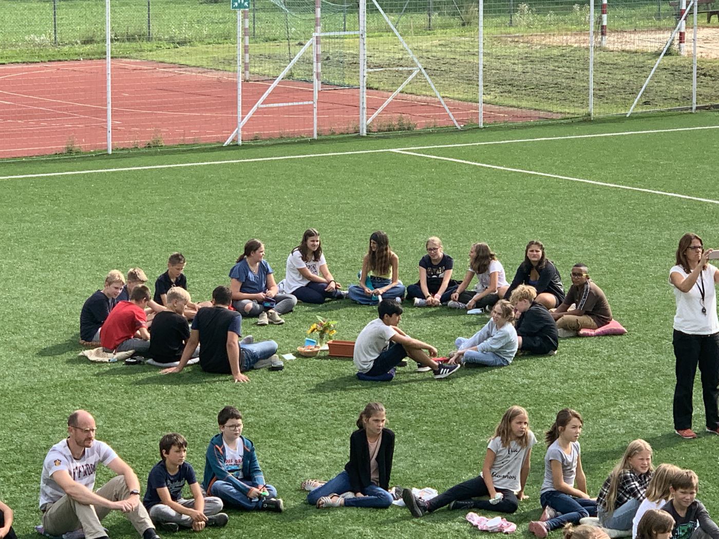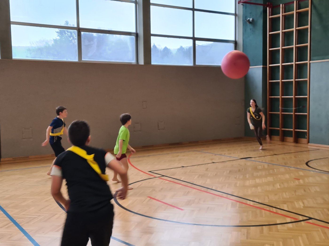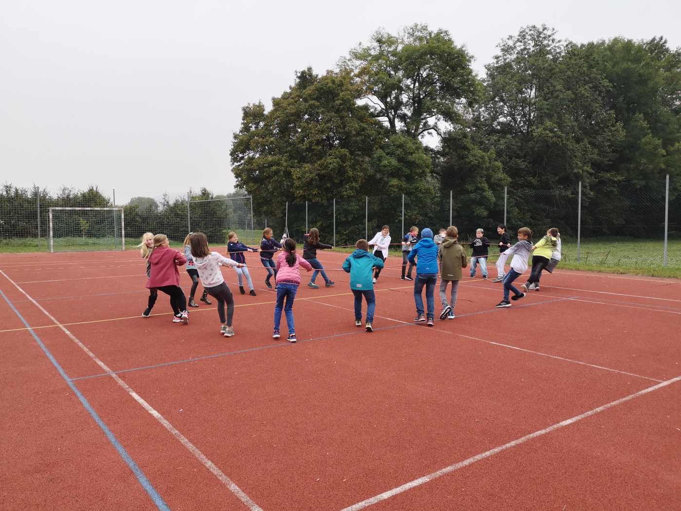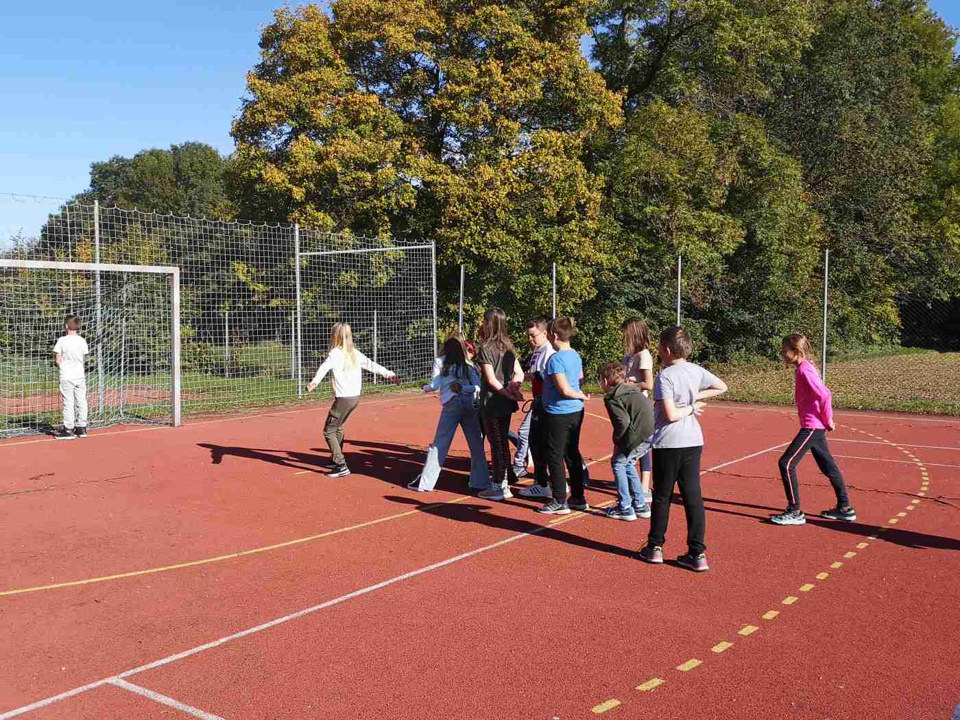 Die Schülerinnen und Schüler der 4a sind am Tag des Sportes dem Ball hinterher gelaufen.